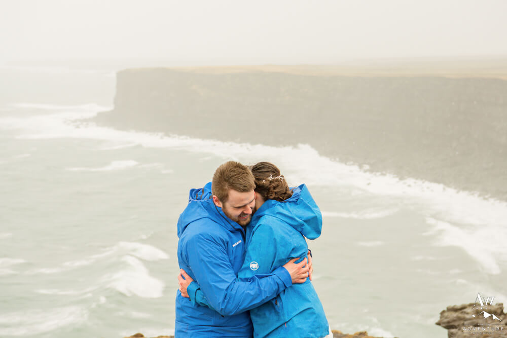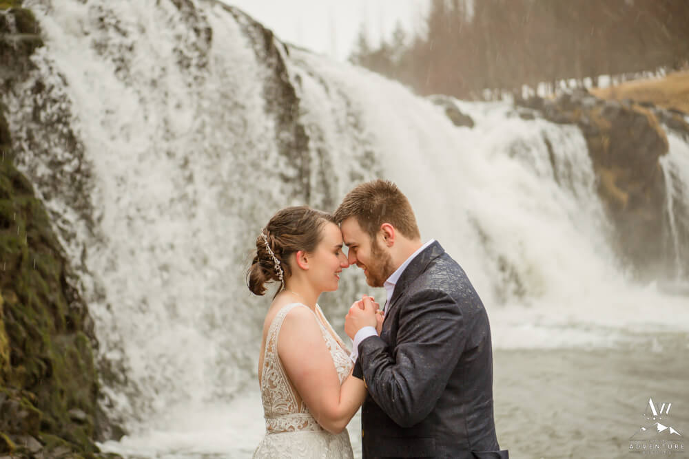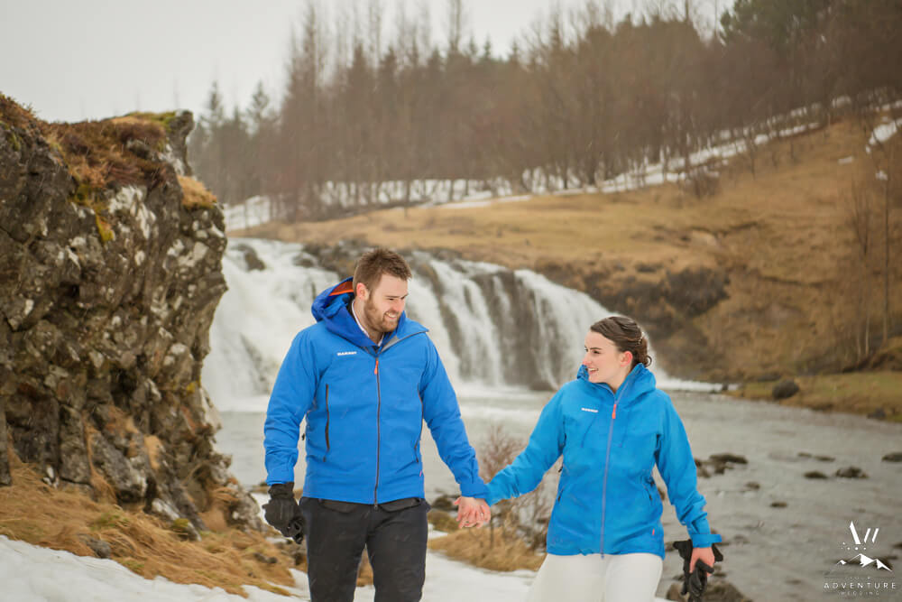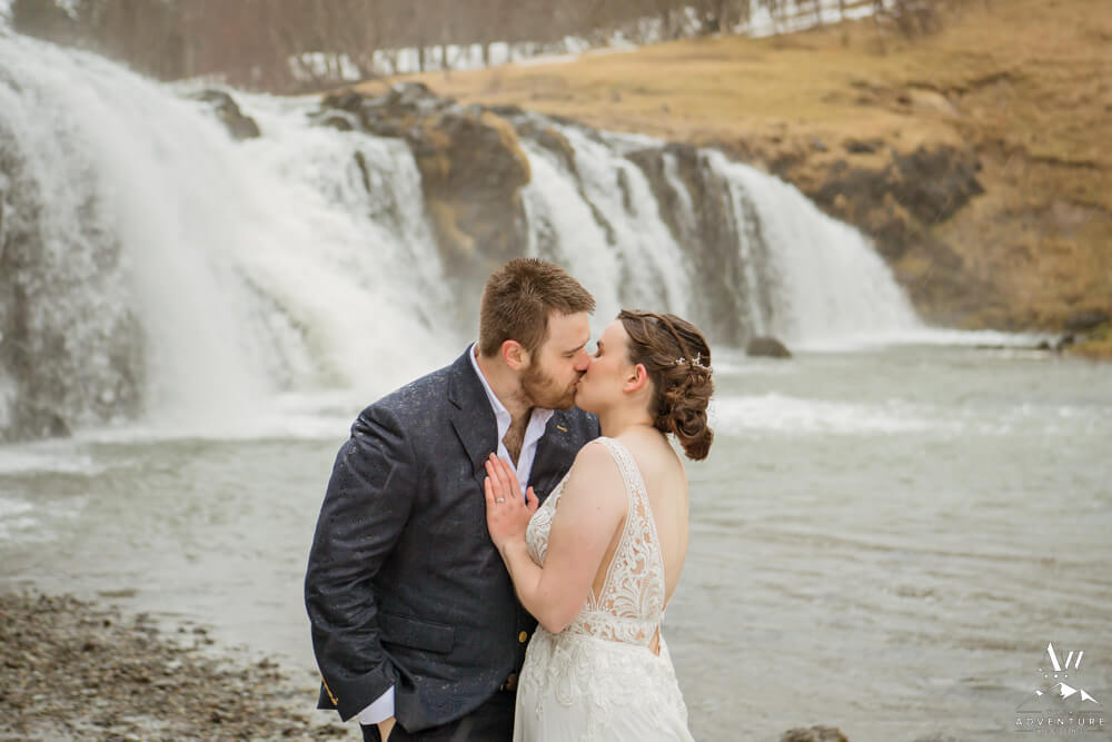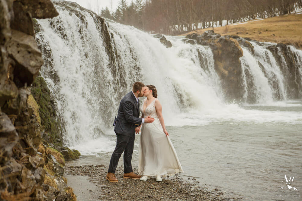 Many river waterfalls in Iceland have the elevation and texture to be waterfalls. And let’s be honest any size waterfall when you haven’t experienced one that day is stunning sometimes! During their March wedding adventure, Marie, Steven, and their guests reveled in it’s beauty despite the heavy rains and wind!