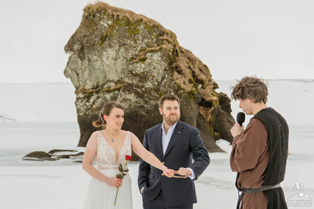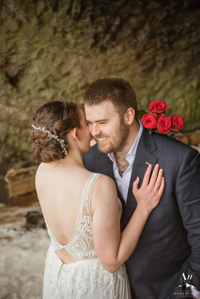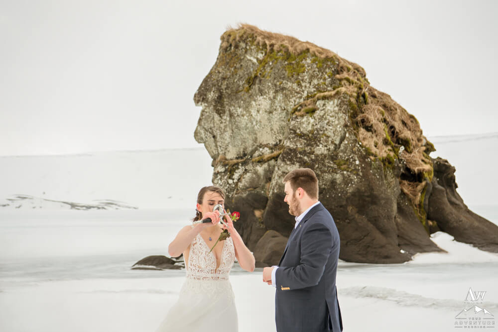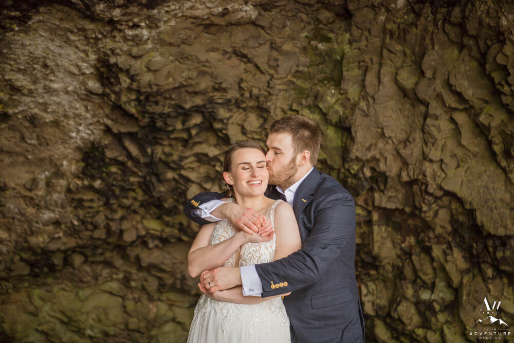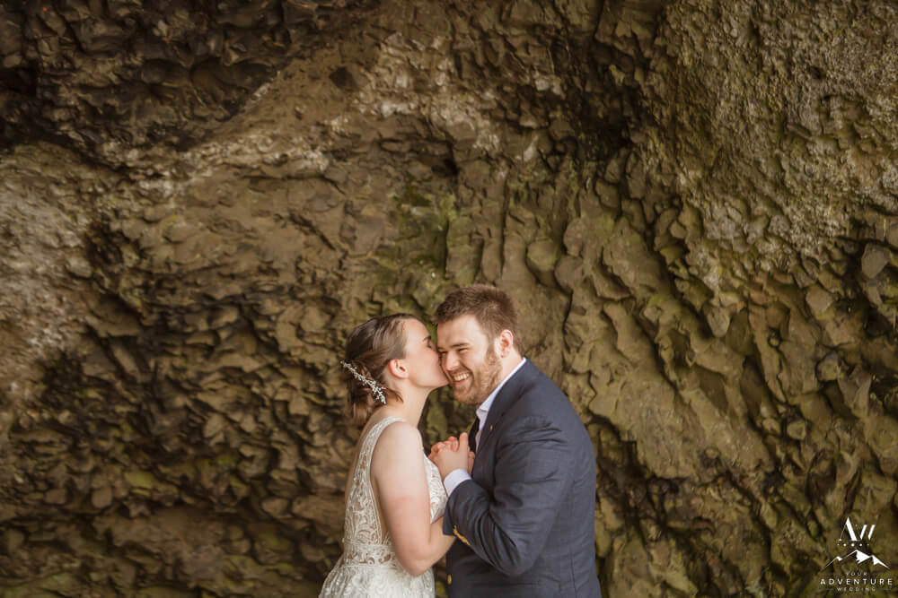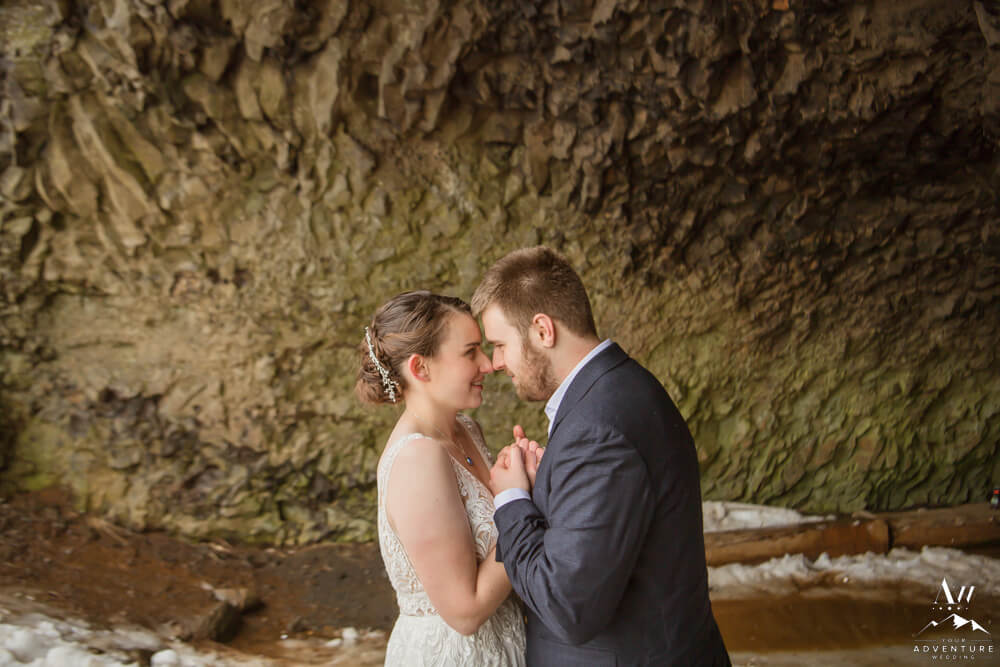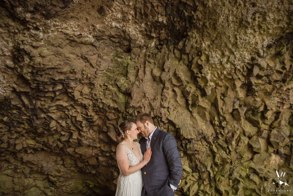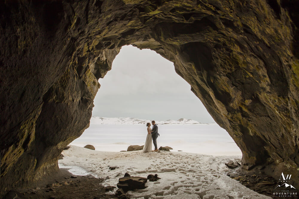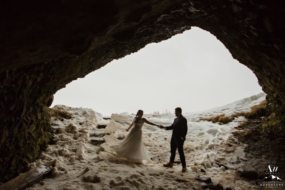 The weather in Iceland sometimes forces you indoors for a break. But what could that mean? A natural cave can be a perfect place to seek refuge during a March wedding in Iceland!
