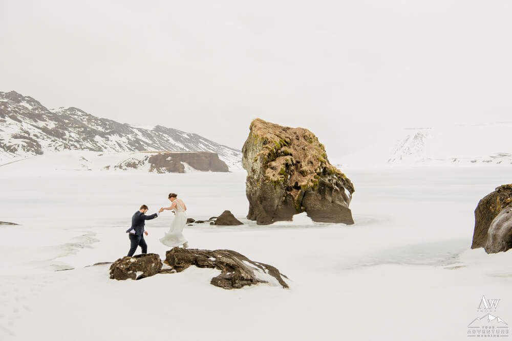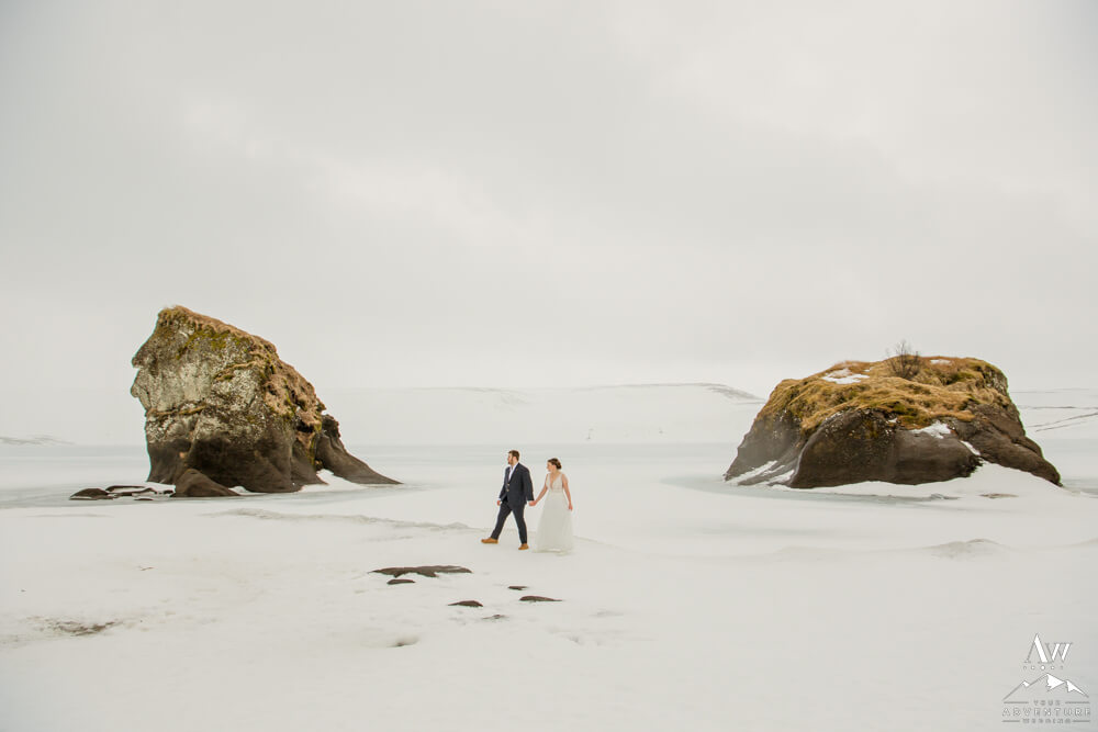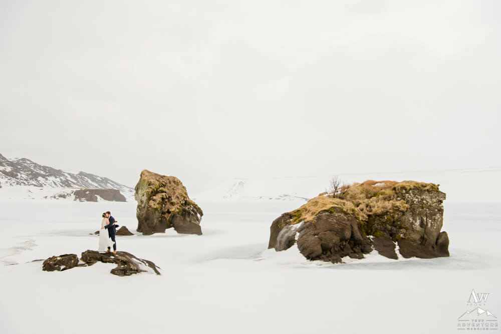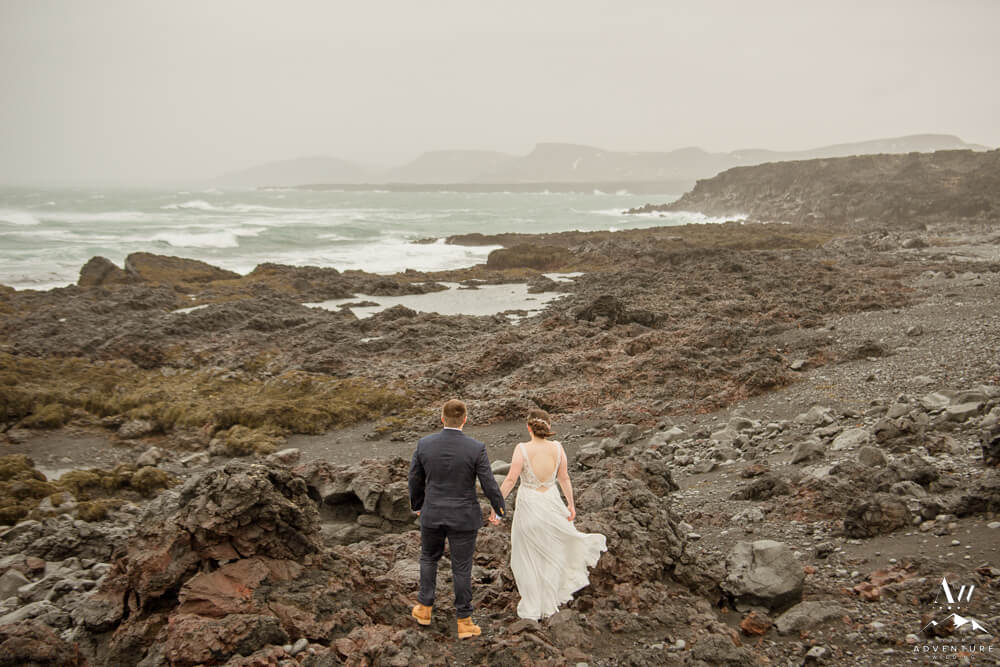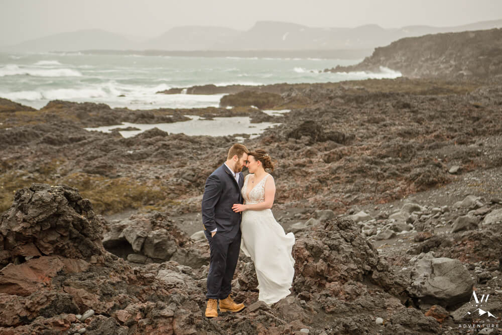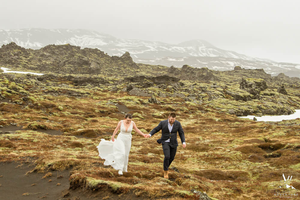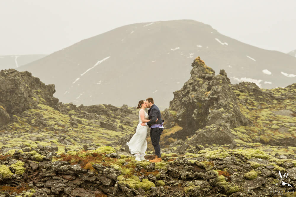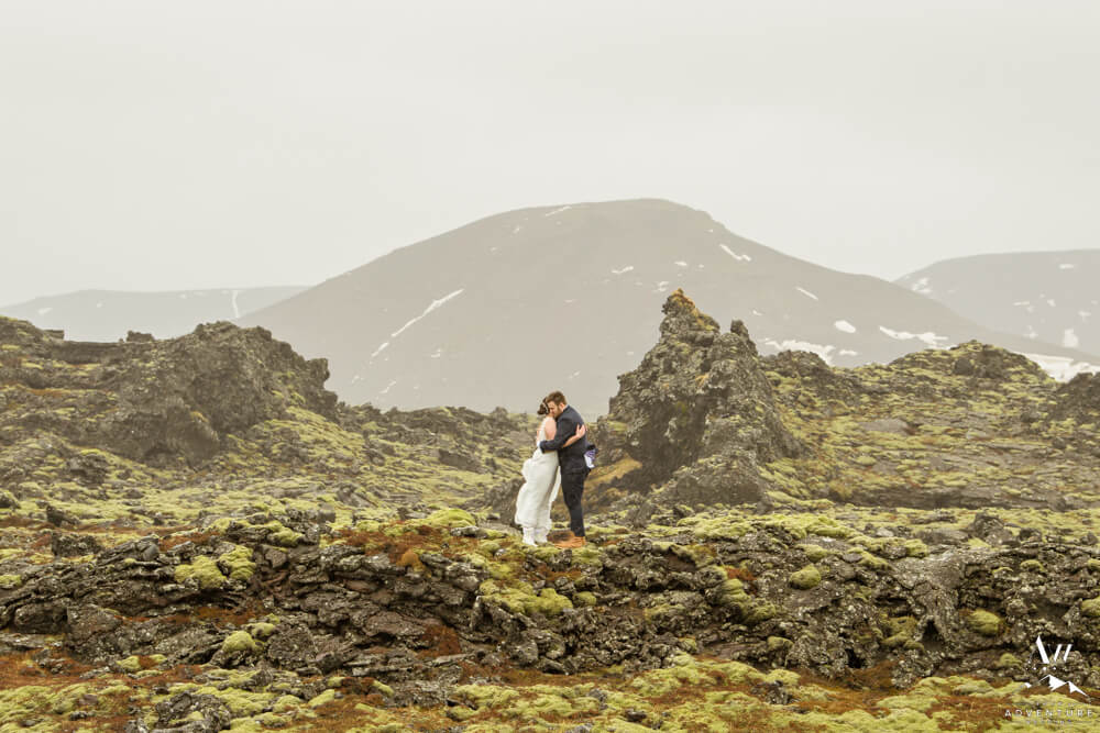 There are so many natural elements that’s scream Iceland. However, the fan favorite might be moss. Many folks find themselves speechless over the texture and color no matter the time of year. For example, next on their March wedding schedule was a clifftop. However, upon arriving to the cliffs, there were dangerous gale force winds which made their stay short. Meanwhile, on the way out there was a freaking stunning lava field the newlyweds were excited to explore!