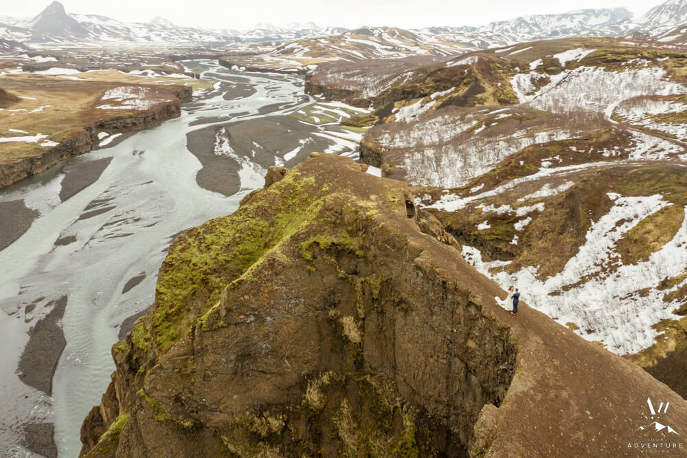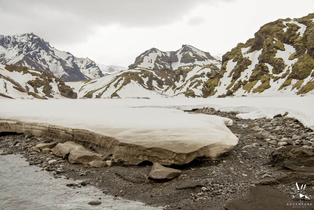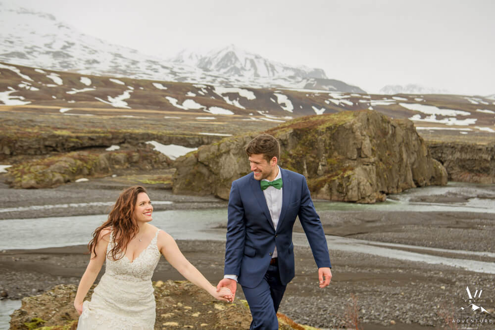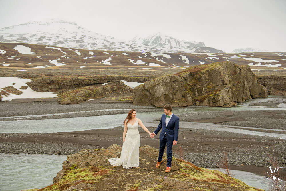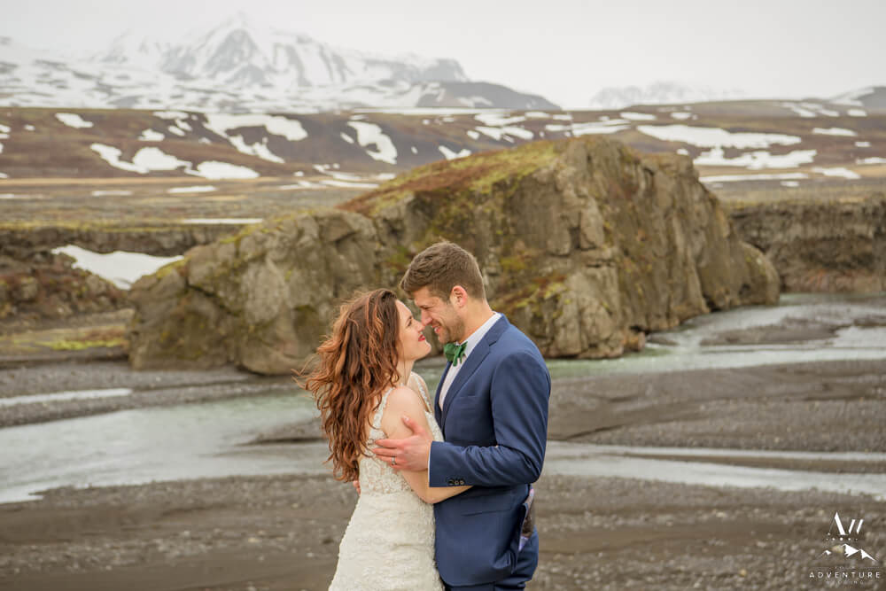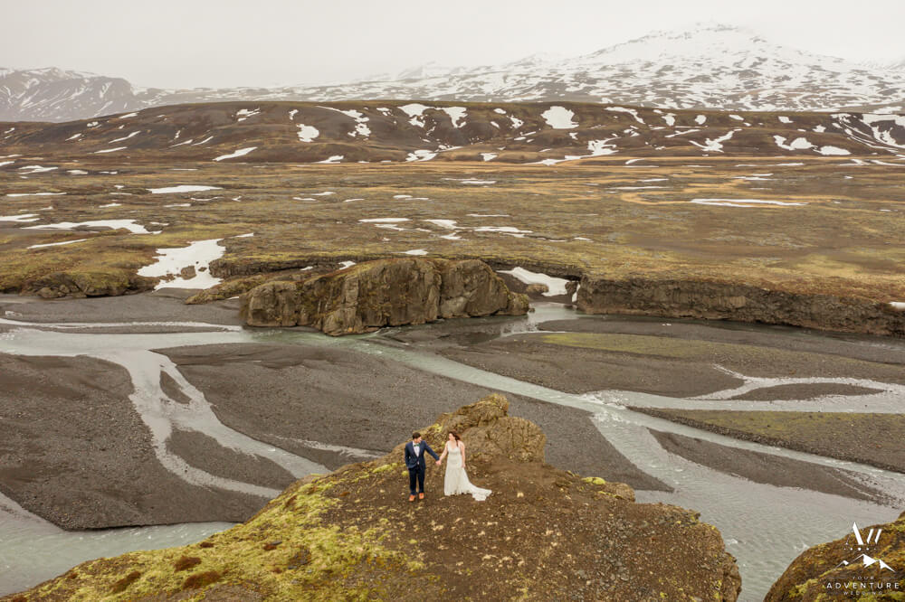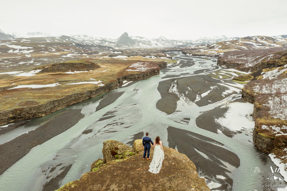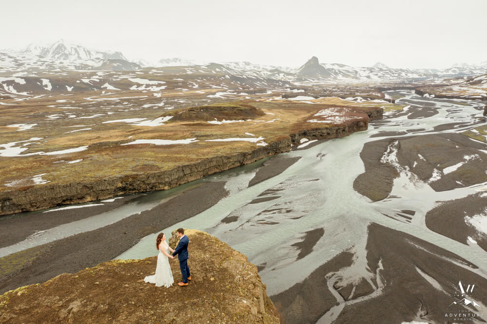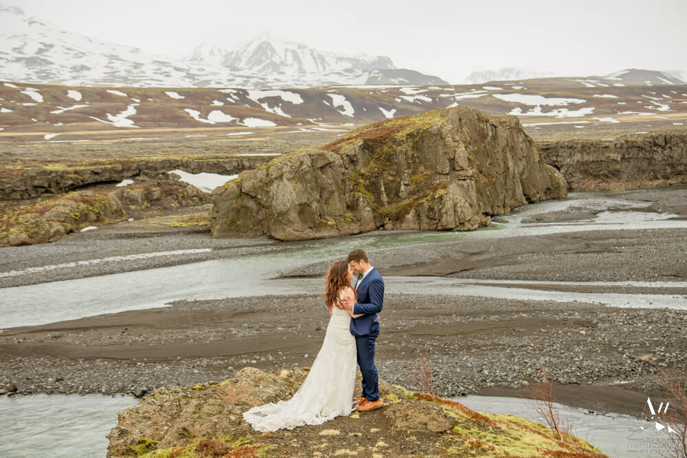 In fact, the plan was to head into a very tricky glacier outlet area few have ever been that is currently home to an incredible ice cave. However, days before our arrival (and after we scouted) there was an avalanche which covered the ice cave opening which made the area extremely unstable. Therefore, we “plan b’d” to some wonderful alternative Iceland wedding locations! To illustrate, the views into the highlands were picturesque with all of the snow that stuck around!