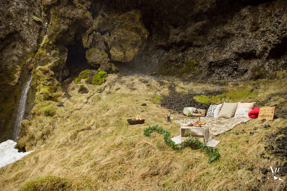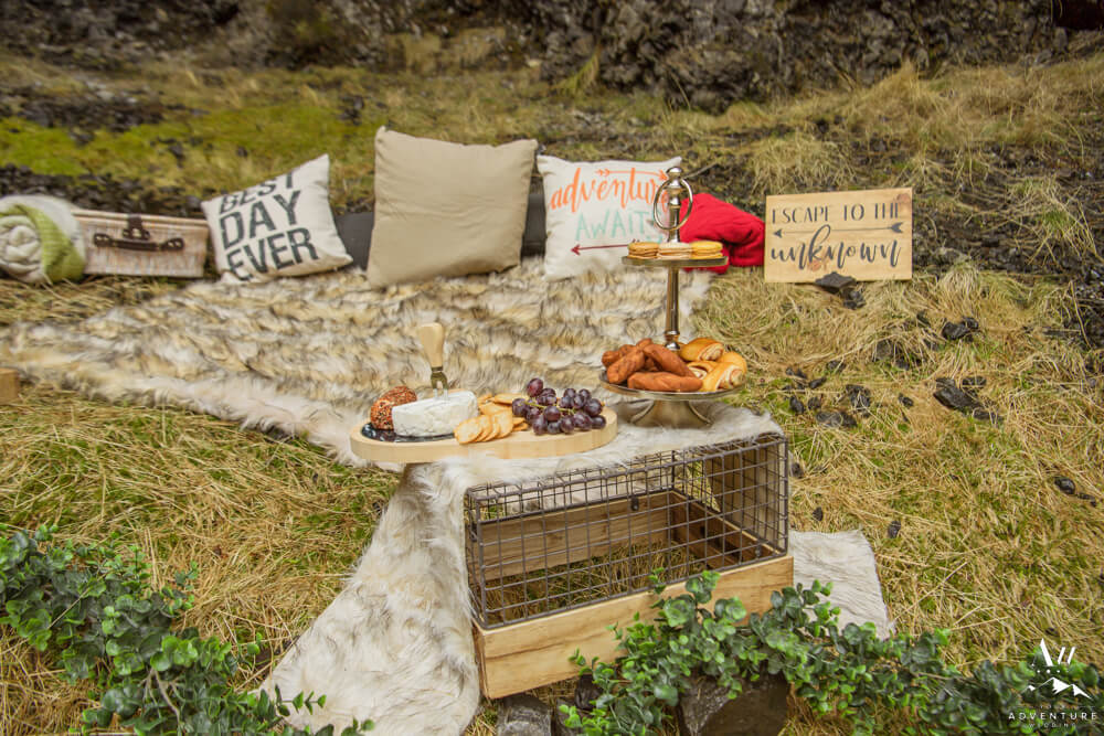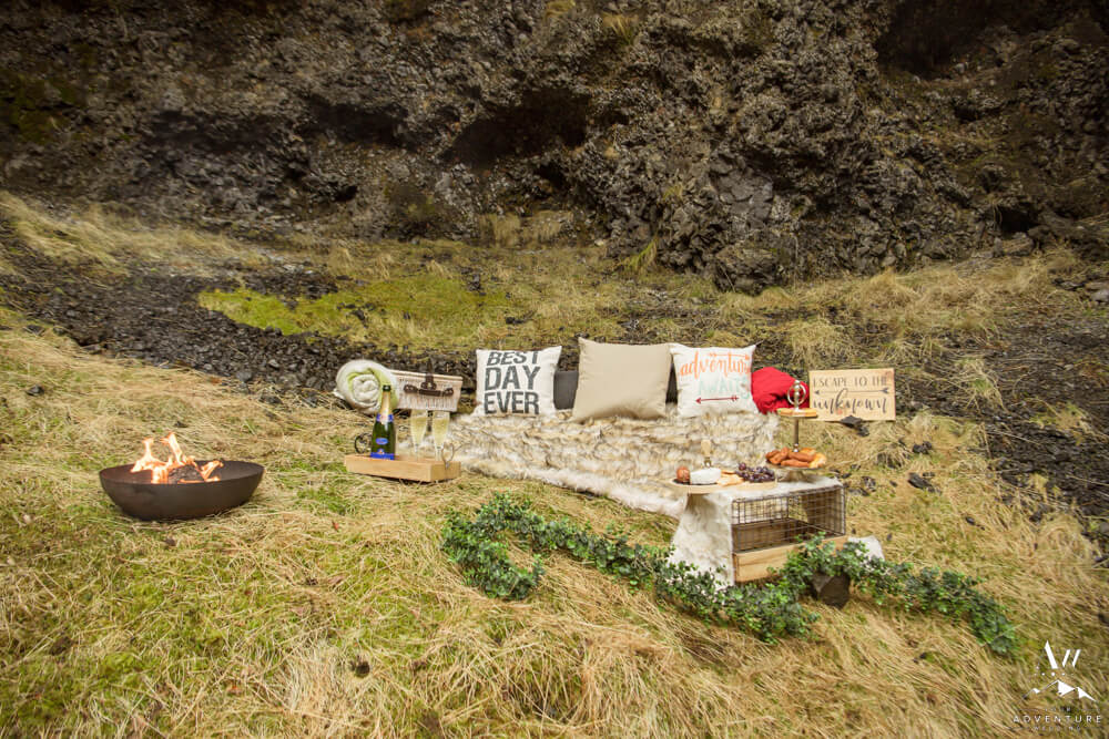 Further, lots of romantically styled details also followed like a firepit, basket, blankets, and pillows! Who wouldn’t want this posh display waiting for them after a hike?! #dreamcometrue! And truly a perfect way to kick off their Iceland honeymoon!