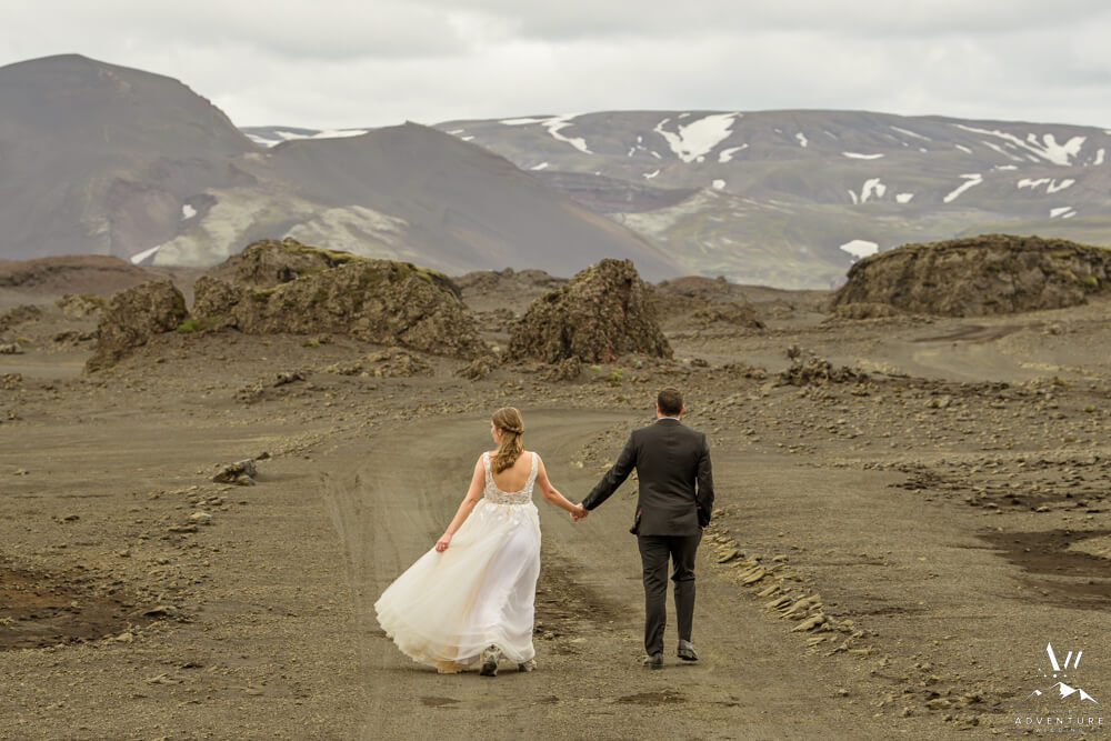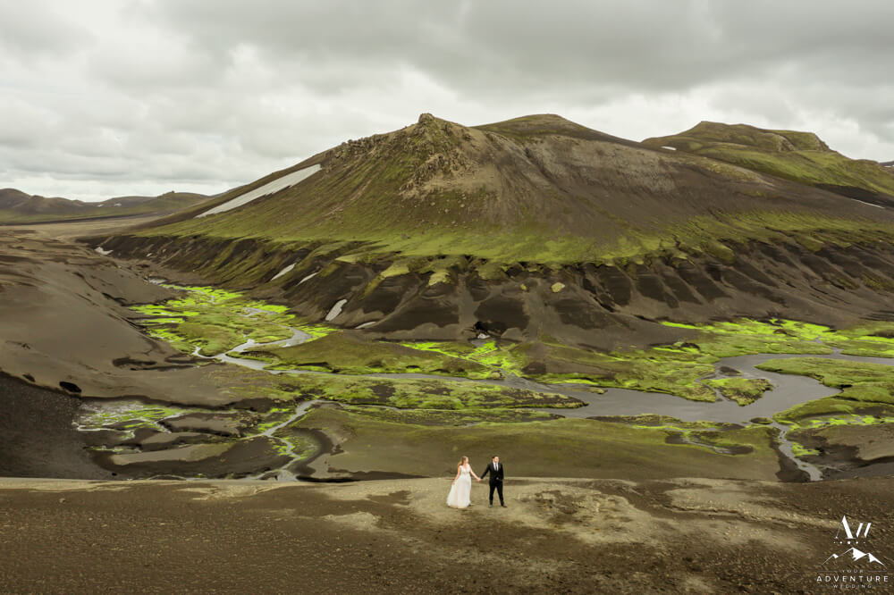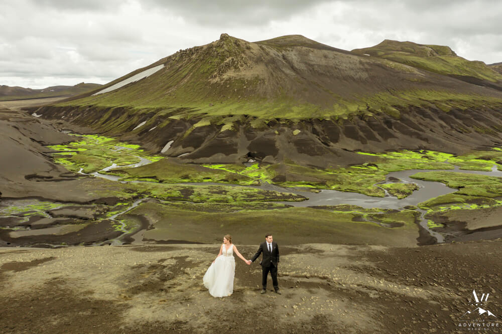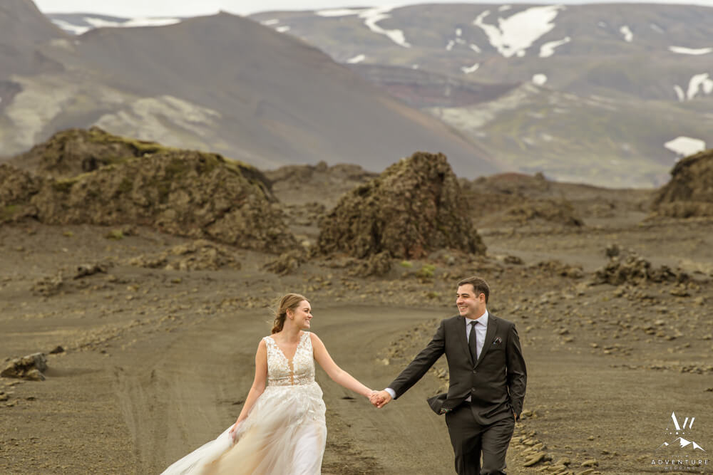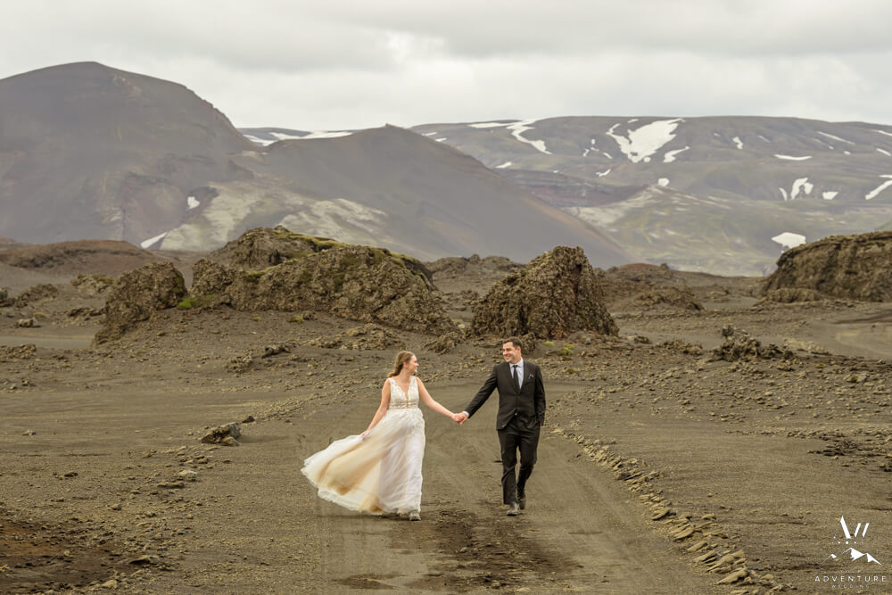 Do you know NASA has sent countless astronauts here to train? Likely because so much of the highlands offer lunar-like landscapes.  So if the saying, “love you to the moon and back” is a fave then make sure desolate areas are on your Iceland July wedding itinerary!  Ben and Cortney had a blast exploring the black sand moon-like areas!!