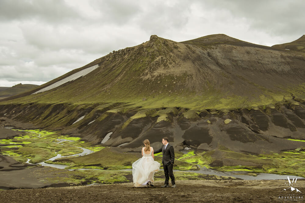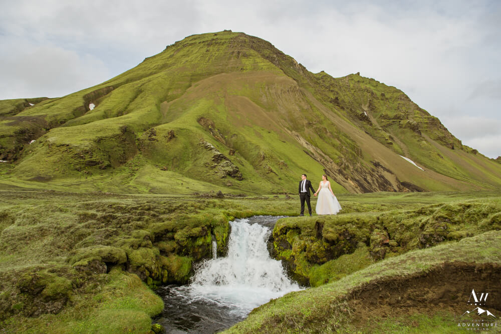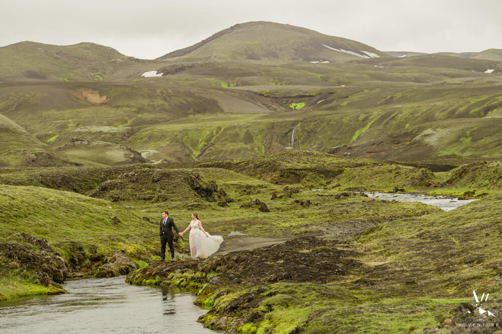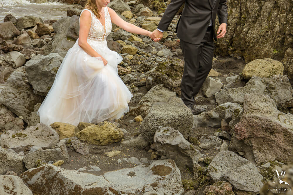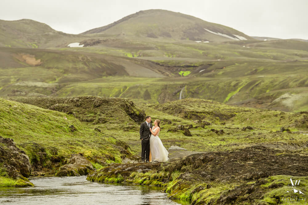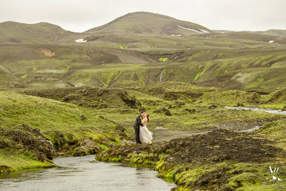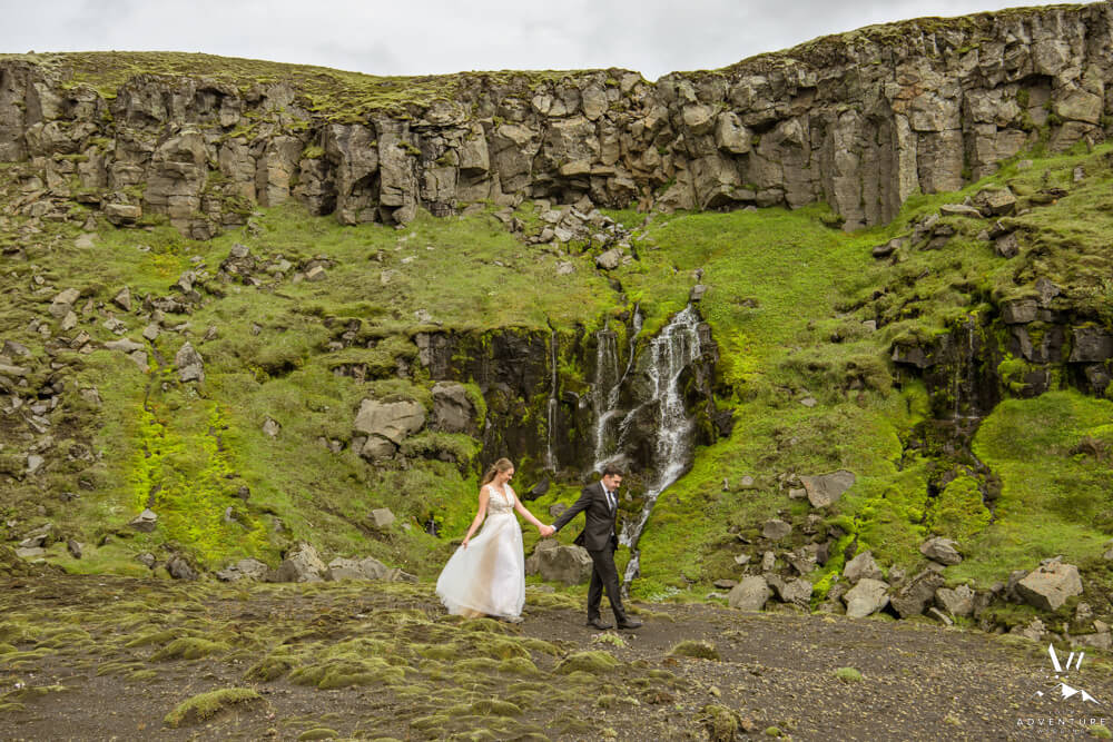 On overcast or rainy adventure wedding days everything looks so much greener and every single location becomes an option.  To illustrate, no matter how many times we have been in an area, light changes things and brings our attentions to spots we normally wouldn’t notice.  In fact, after saying goodbye (for now) to their guests, Cortney and Ben got the opportunity to discover this unique location during their Iceland July wedding!
