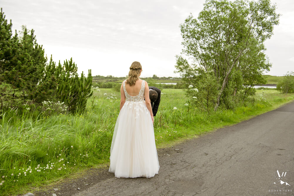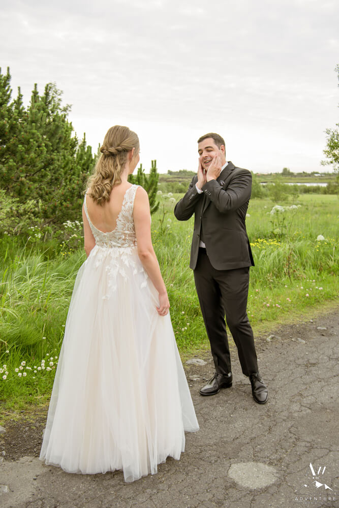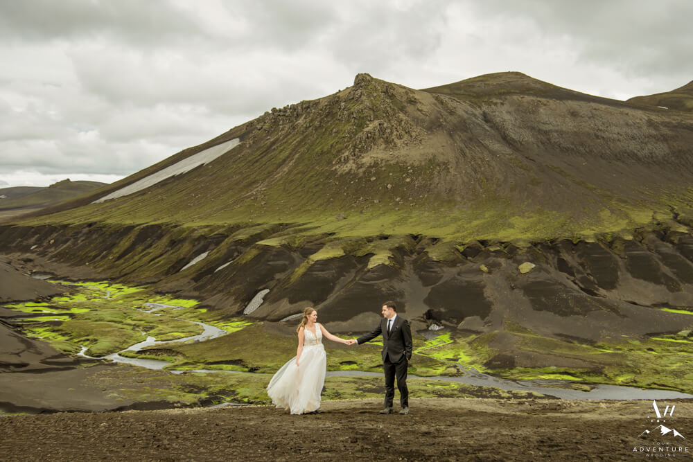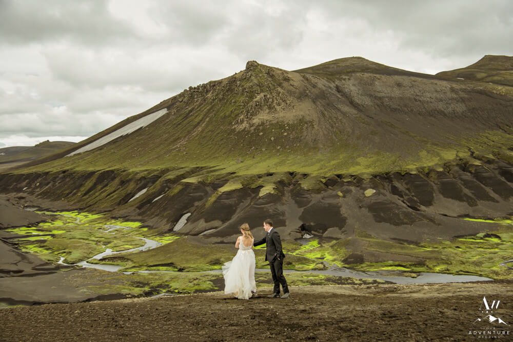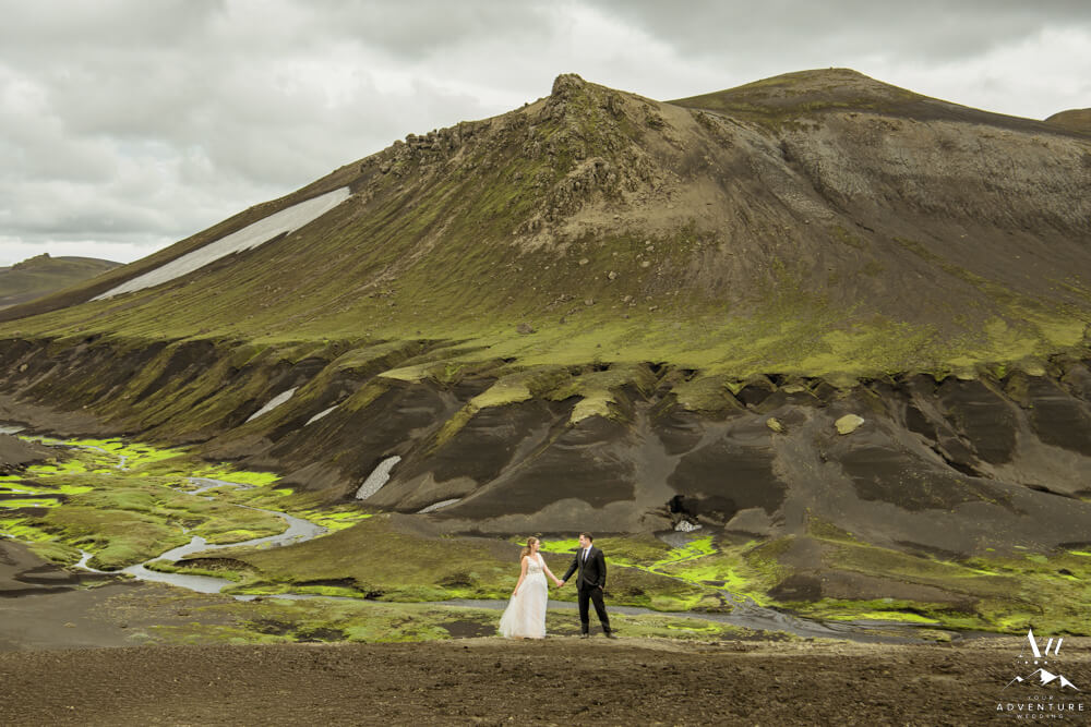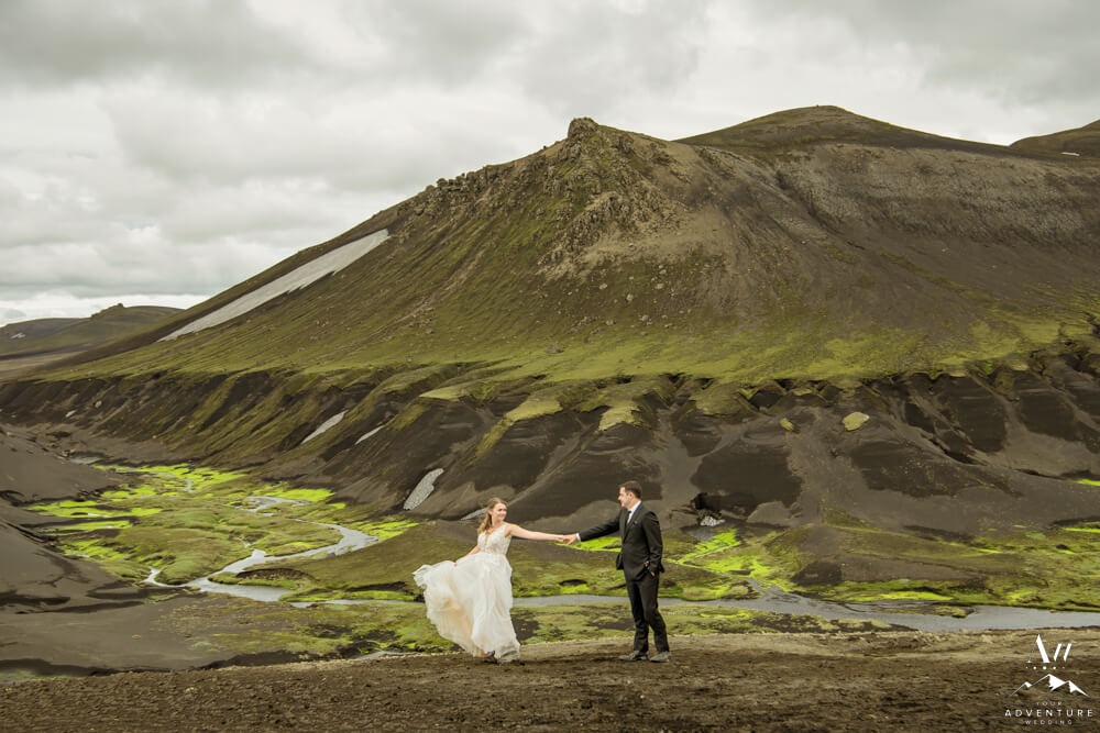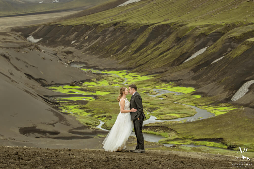 On overcast or rainy adventure wedding days everything looks so much greener and every single location becomes an option.  To illustrate, no matter how many times we have been in an area, light changes things and brings our attentions to spots we normally wouldn’t notice.  In fact, after saying goodbye (for now) to their guests, Cortney and Ben got the opportunity to discover this unique location during their Iceland July wedding!