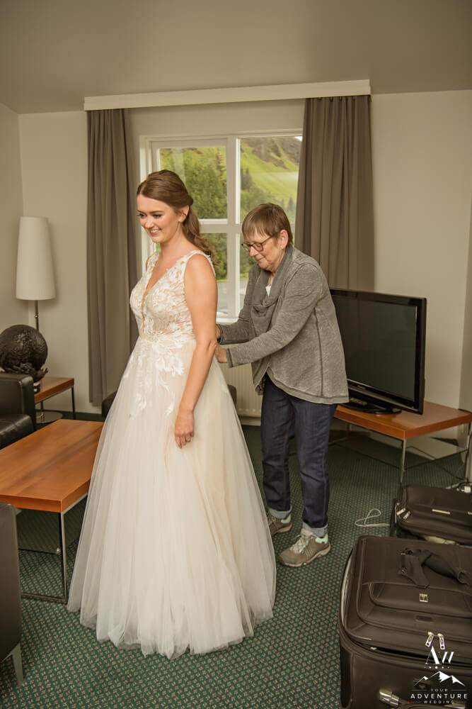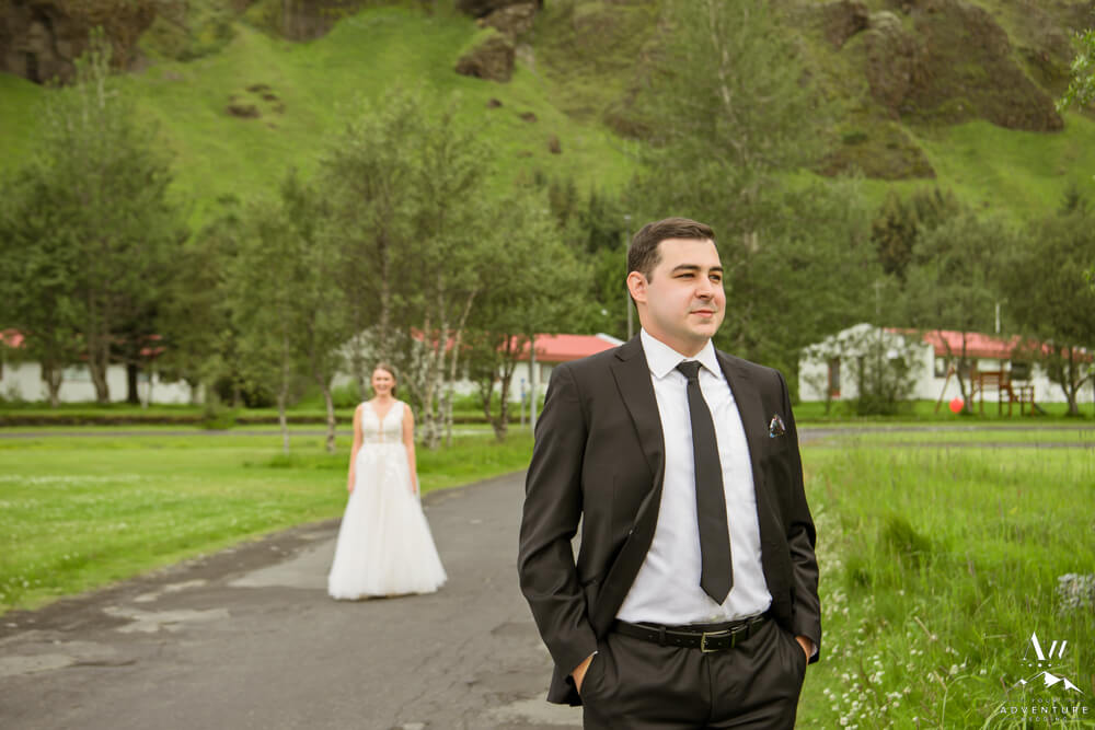 July 15th 2022 started with sunshine lighting the mountains in the tiny town of Kirkjubæjarklaustur.  Cortney and Ben decided to get ready separately and hold a quite first look before grabbing wedding “go bags” and beginning their scenic Iceland July wedding day.