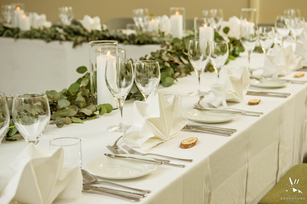 In conclusion, Cortney and Ben made it back to Hotel Klaustur shortly before their guests would rejoin them for a lovely wedding reception.  Next, when the group entered their private room, they were greeted with earthy elegant yet romantic vibes.  Further, the group tasted an extraordinary 4 course meal.