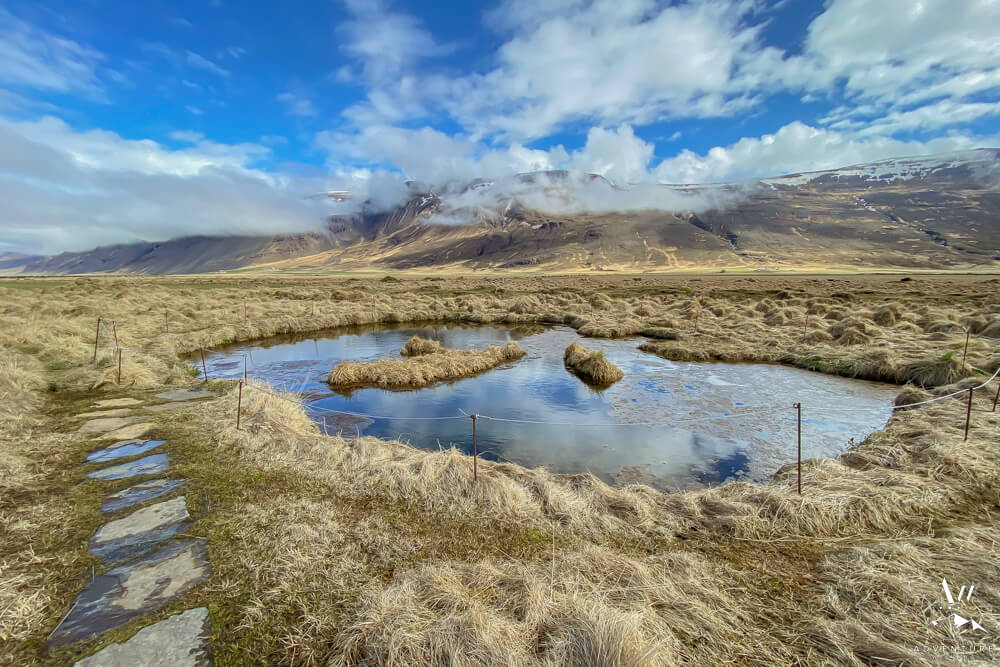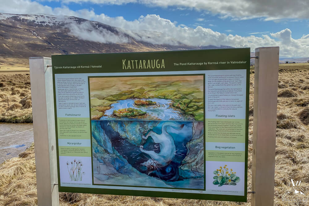 Kattarauga directly translates to “Cat’s Eye.” But what is it? Well it is a tiny little pond that was deemed an Icelandic Natural Monument in 1975. Why? Because it is extremely deep, has floating islands within, and sparkles from above when still and clear weather in Iceland. Also, spring water constantly flows through from below creating a marshy wetland area.