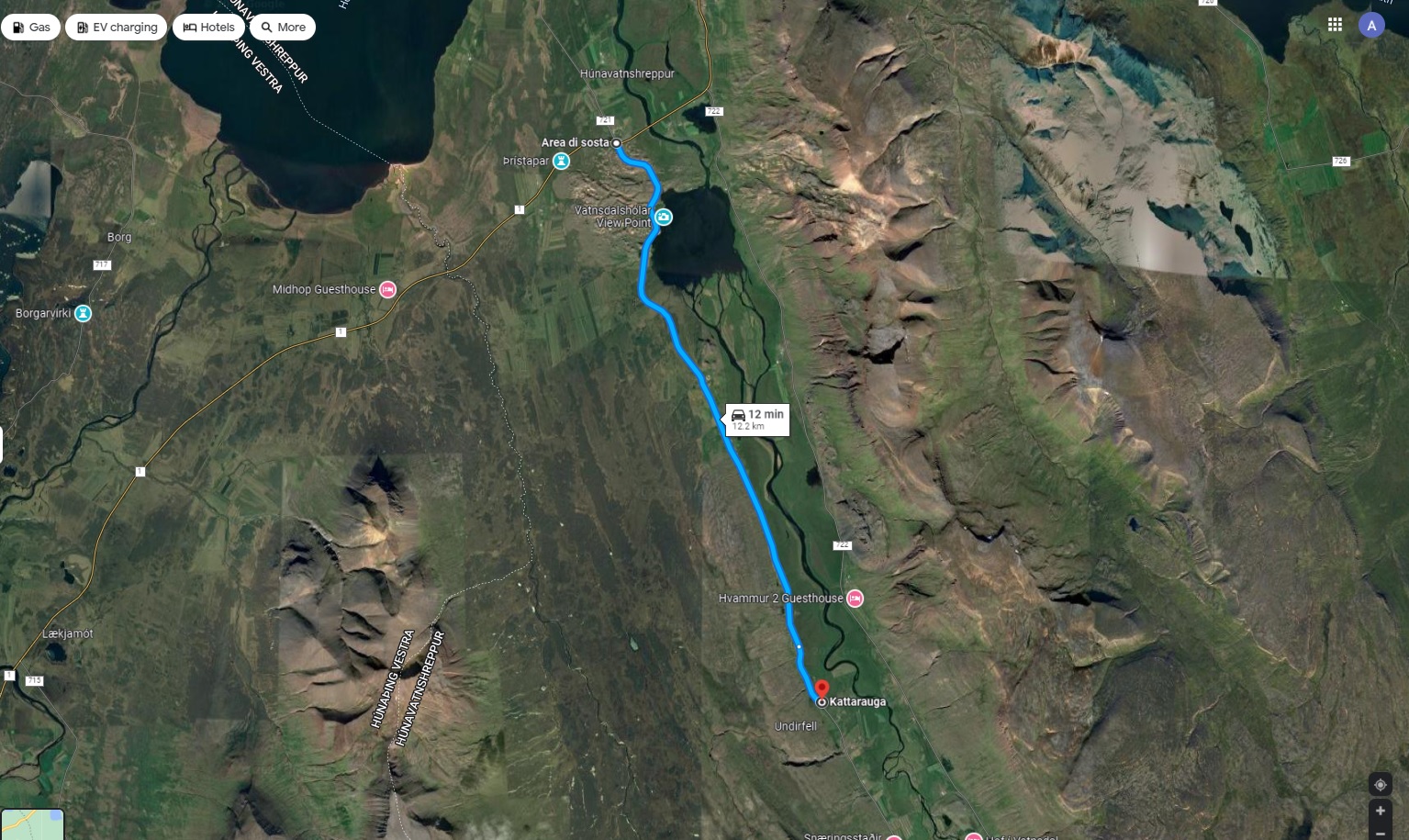 Next, from the main road (Route 1) it is a 12.2km (7.5 miles) detour. Therefore, from either direction (North or South) you’ll want to take Road #722 which is called, Vatsndalsvegur. Please be aware that if coming from the South, it is the FIRST one titled this. And if you’re coming from the North heading South, it is the SECOND one titled this. If you do not heed this warning, likely end up on the wrong side of the valley. Further, feel free to use this Google Map Link to get yourself there.