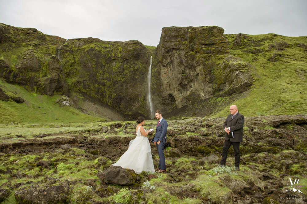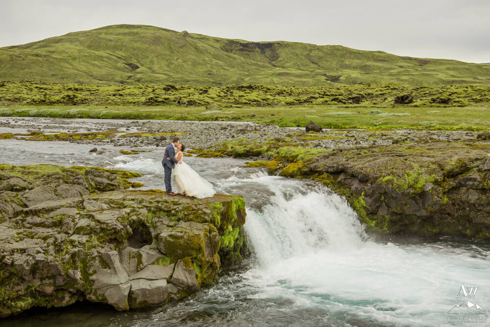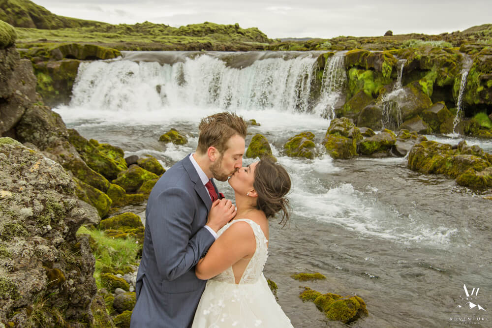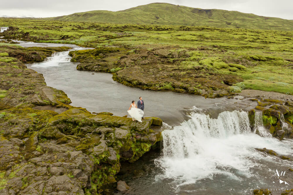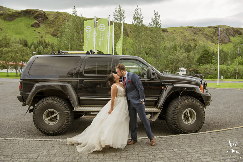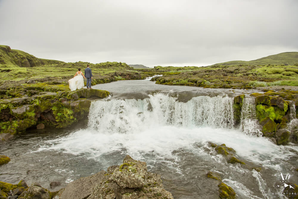 Next, the journey from the hotel to the Iceland wedding ceremony location on July 12th 2022, is unforgettable. For instance, imagine cruising through ancient moss and lava, crossing rivers, and taking an inspiring hike to the spot! Truly the definition of adventure & vows. Then you hold a private ceremony in front of a waterfall where you recite your personal thoughts from vow books, exchange tokens, and end the incredible moment with a kiss!
