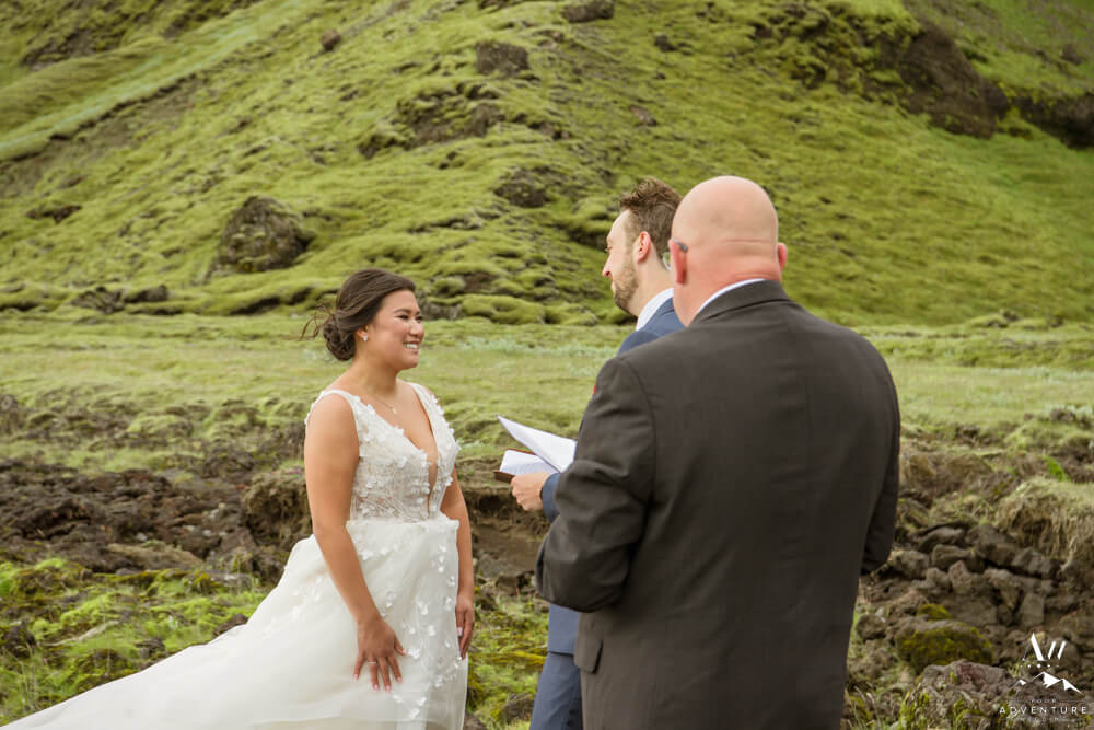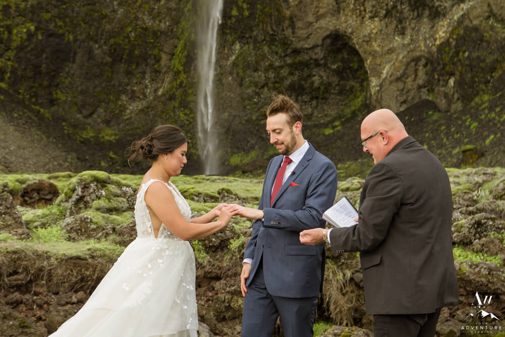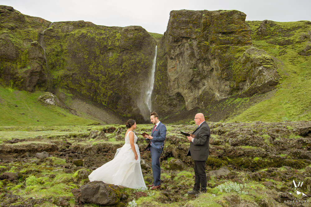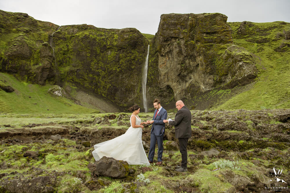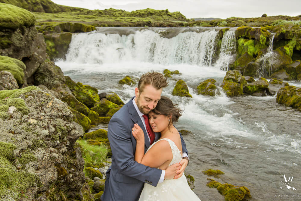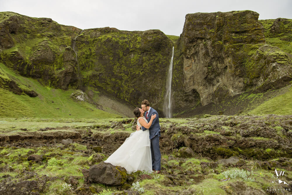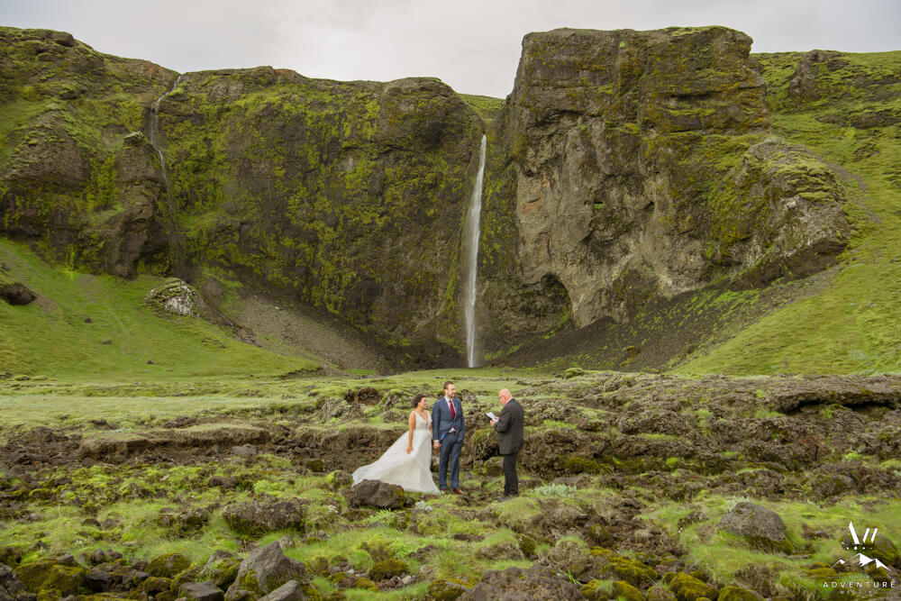Next, the journey from the hotel to the Iceland wedding ceremony location on July 12th 2022, is unforgettable. For instance, imagine cruising through ancient moss and lava, crossing rivers, and taking an inspiring hike to the spot! Truly the definition of adventure & vows. Then you hold a private ceremony in front of a waterfall where you recite your personal thoughts from vow books, exchange tokens, and end the incredible moment with a kiss!