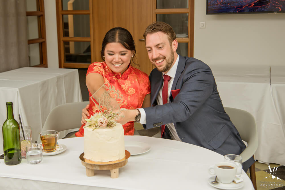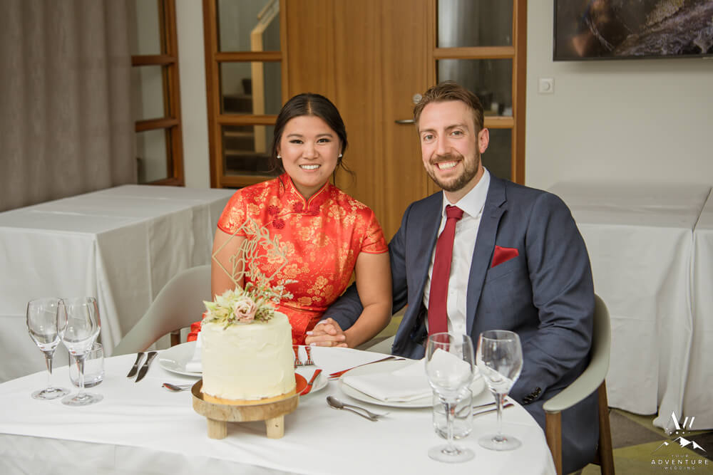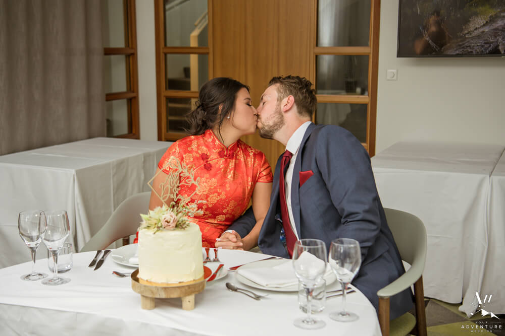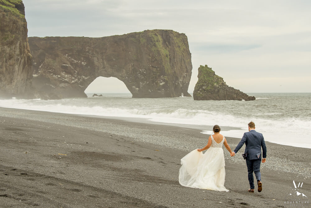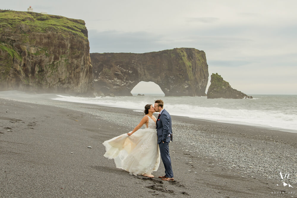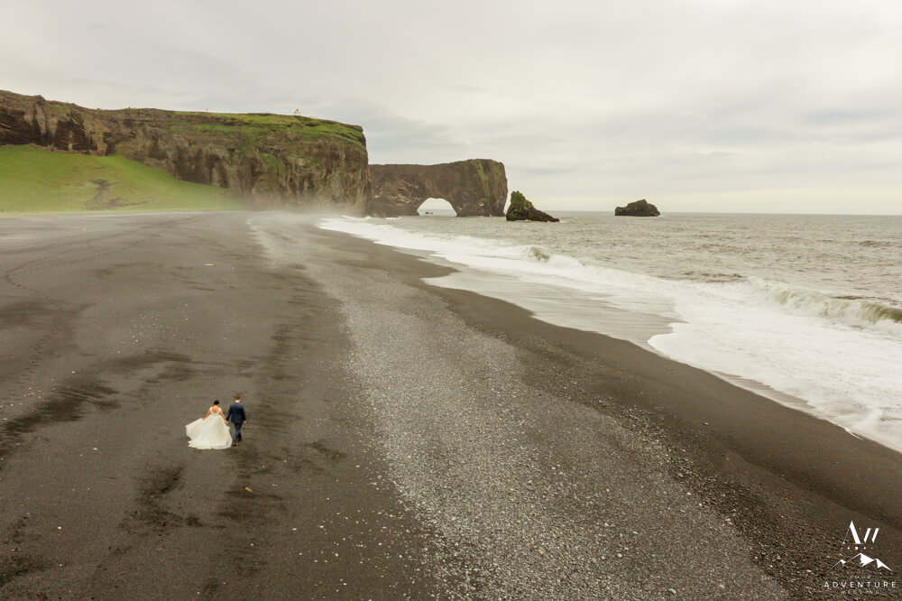 Next on their adventure & vows agenda, is a beachside lunch! On the menu was a yummy traditional Icelandic hot dog BBQ with all the fixings. Meanwhile as the hot dogs were cooking Darcy and Allison spent some time discovering the private property beach with the best view of the famed Dyrhólaey sea arch! Also following lunch Allison changed into a traditional Chinese wedding dress to honor her family heritage.