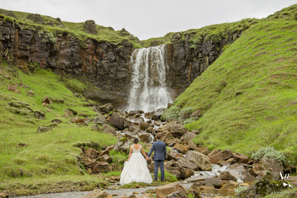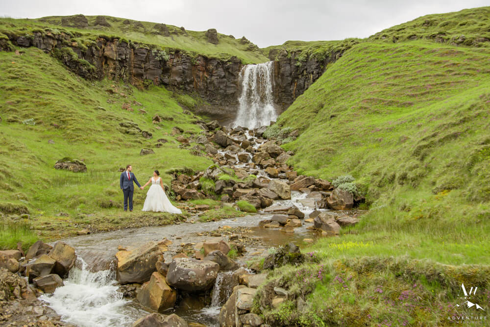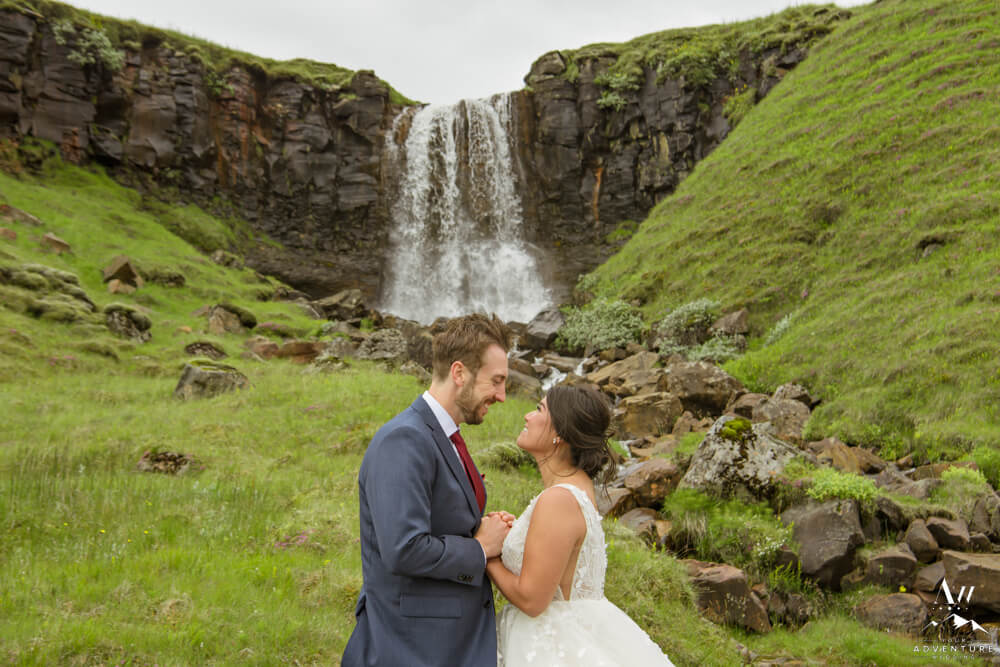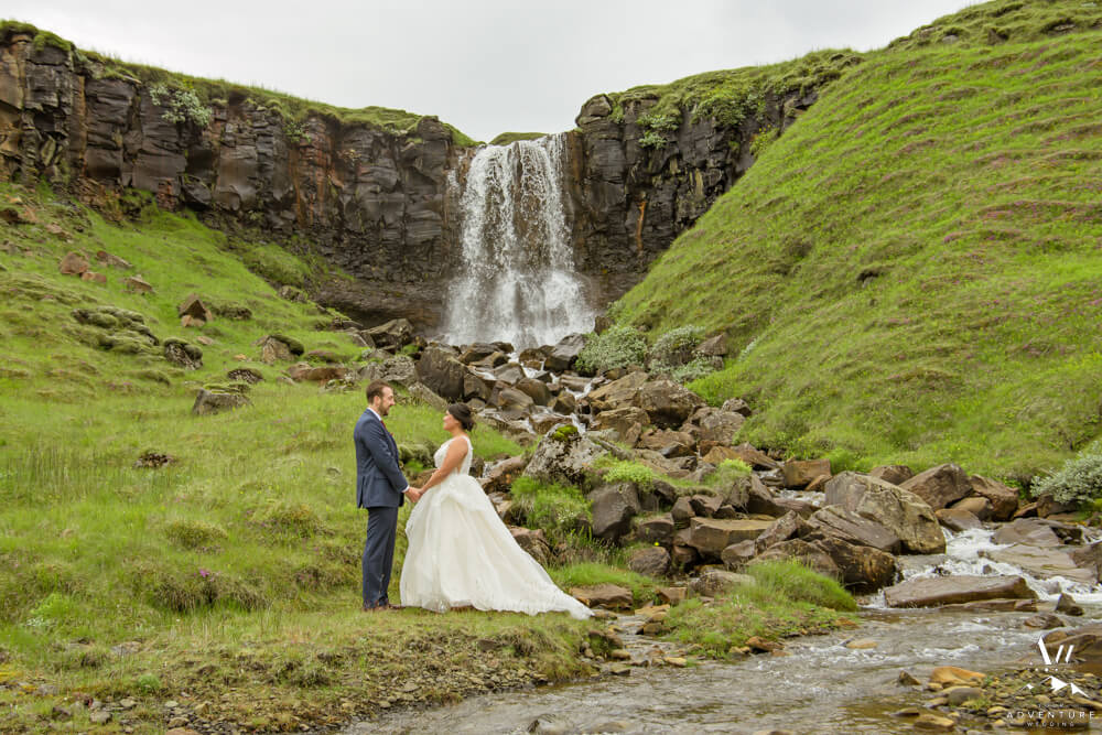 Lovers of all types of waterfalls, Darcy and Allison were open to checking out another private property waterfall we had recently scouted! Such a private and peaceful place for Iceland elopement photos!!