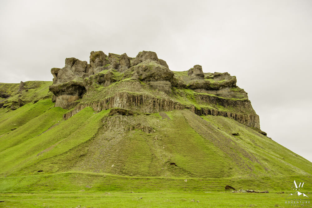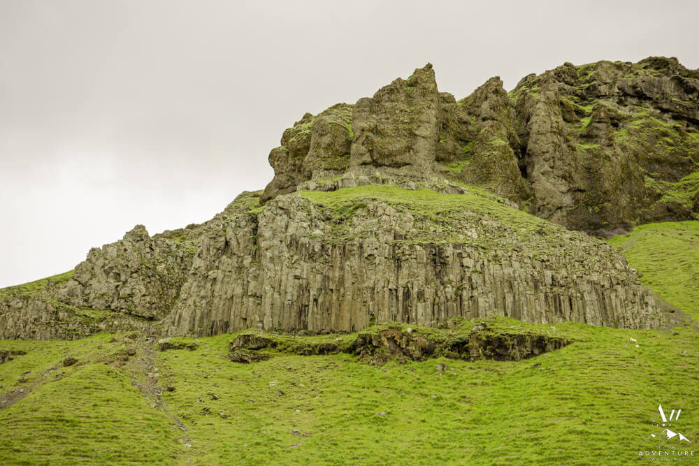 Continuing, overcast skies brought them to the top of Reynisfjall mountain to view Reynisdrangar basalt stacks and to hear the folklore that comes along with it! Furthermore, during the summer months, puffins can often be seen here coming and going from their nests in the cliffs.