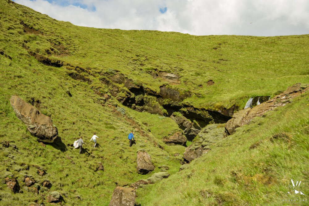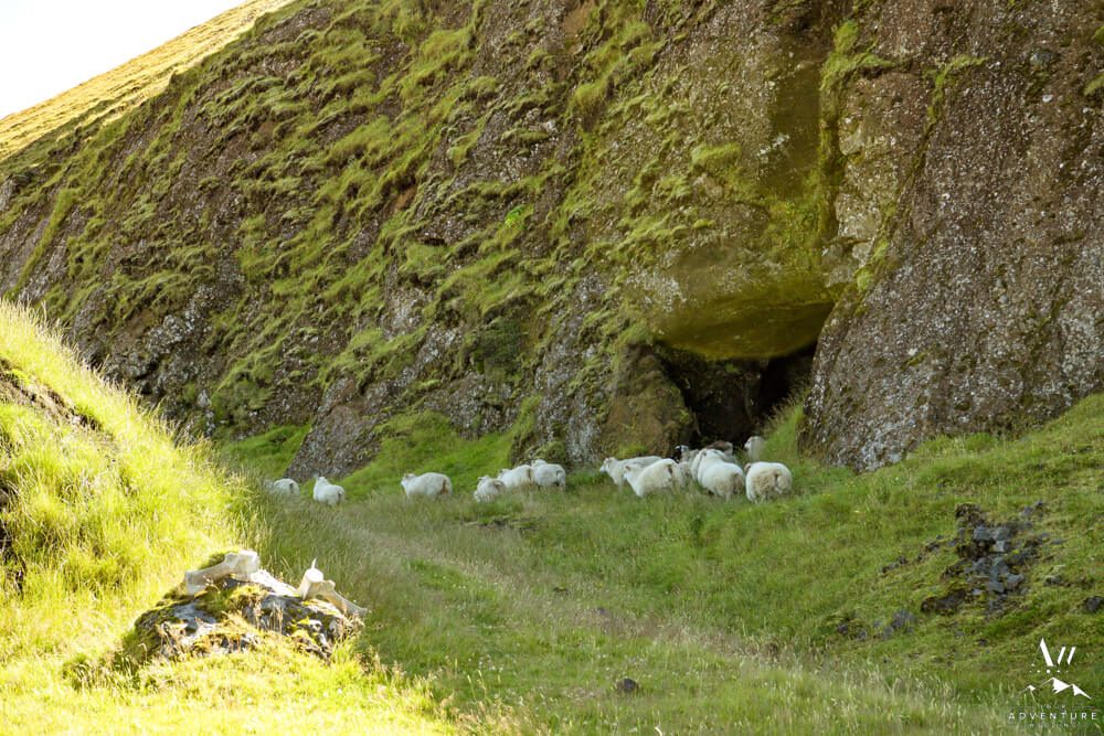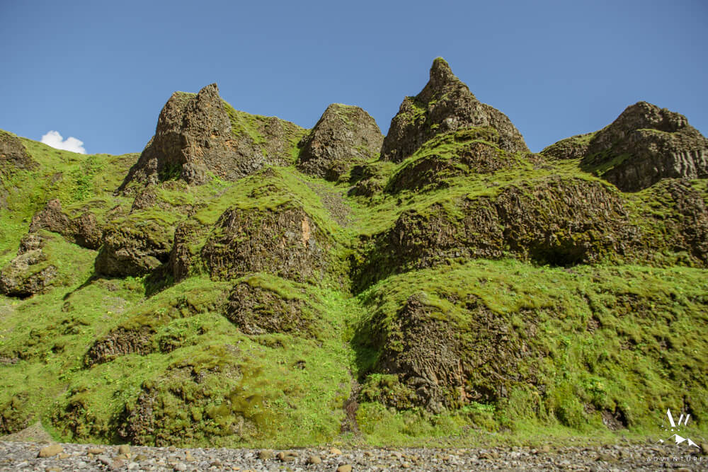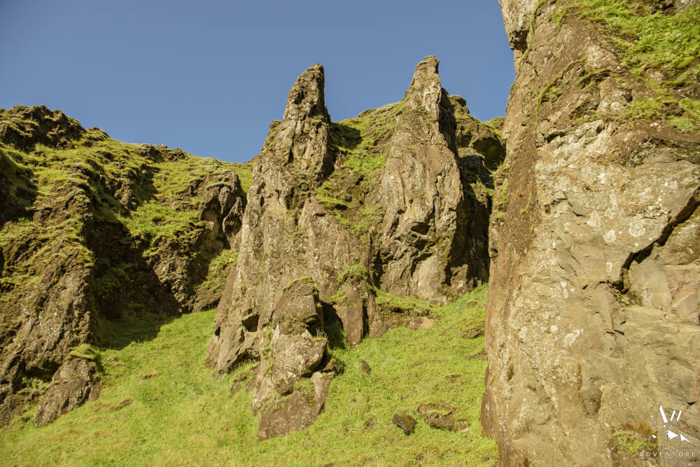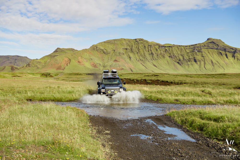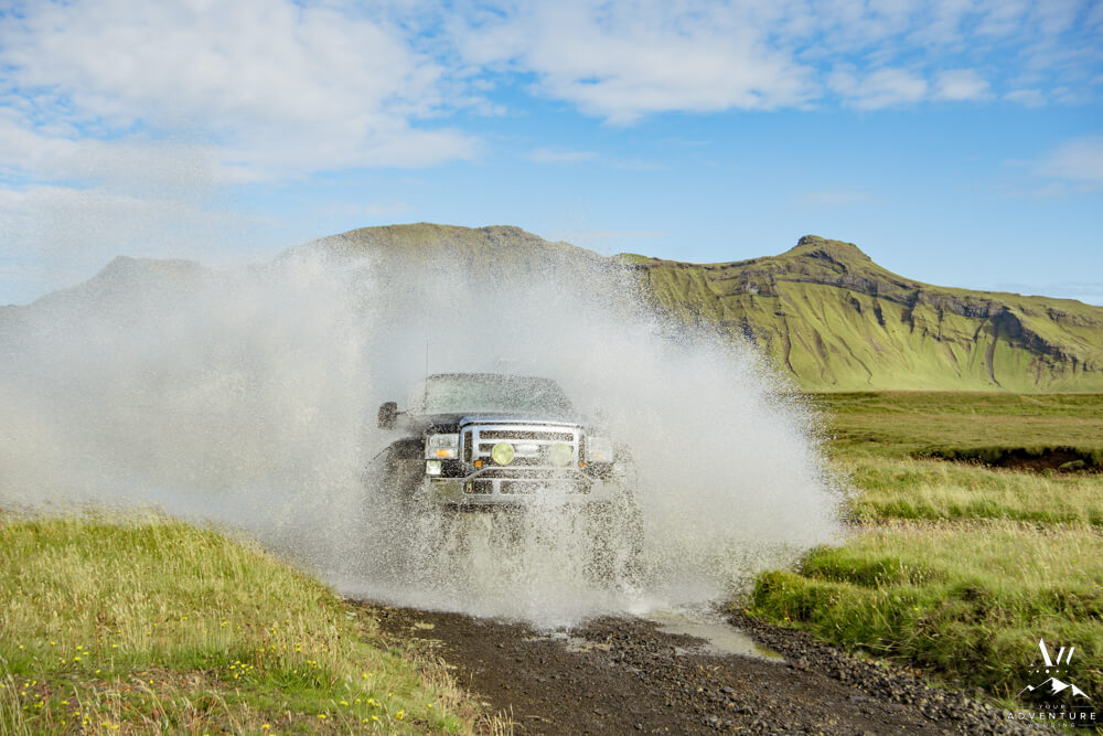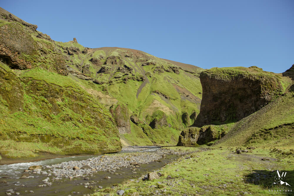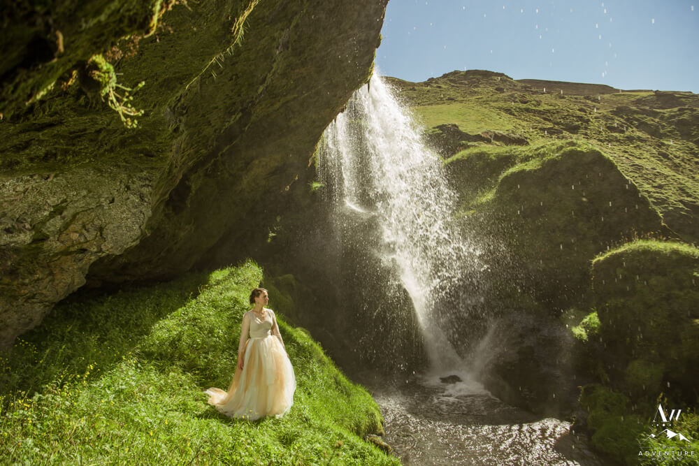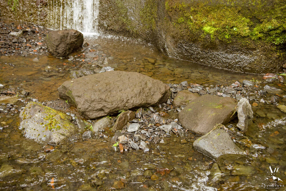 After dropping off the kids with our Iceland Wedding Planner babysitter, Sarah and Will begin a more intense hiking wedding adventure. The kind of hiking that is sketchy but oh-so worth it! First, example, they travelled to a remote canyon area that is home to a waterfall you can walk behind. Second, after several river crossings via super jeep and by foot they were hiking on a “sheep road.” Third, they powered through the steep and crazy parts to be greeted with a stunning season. Fourth, they explored this fragile waterfall and savored every single second!