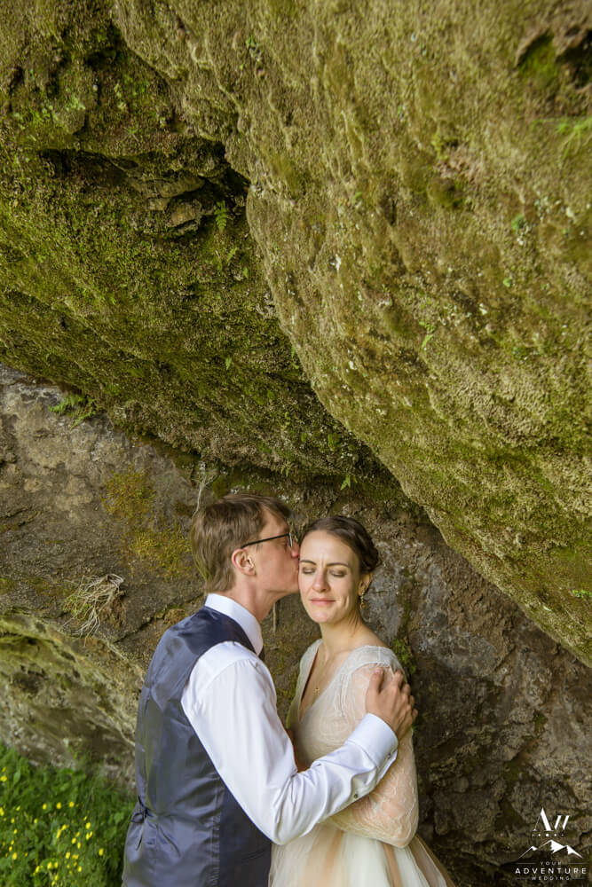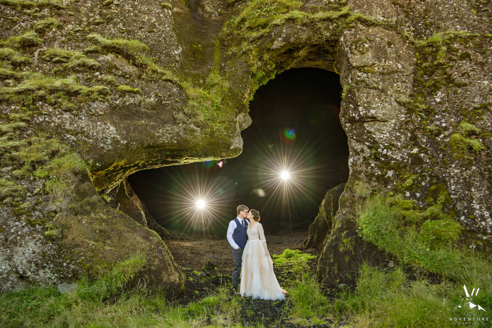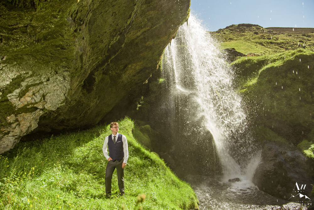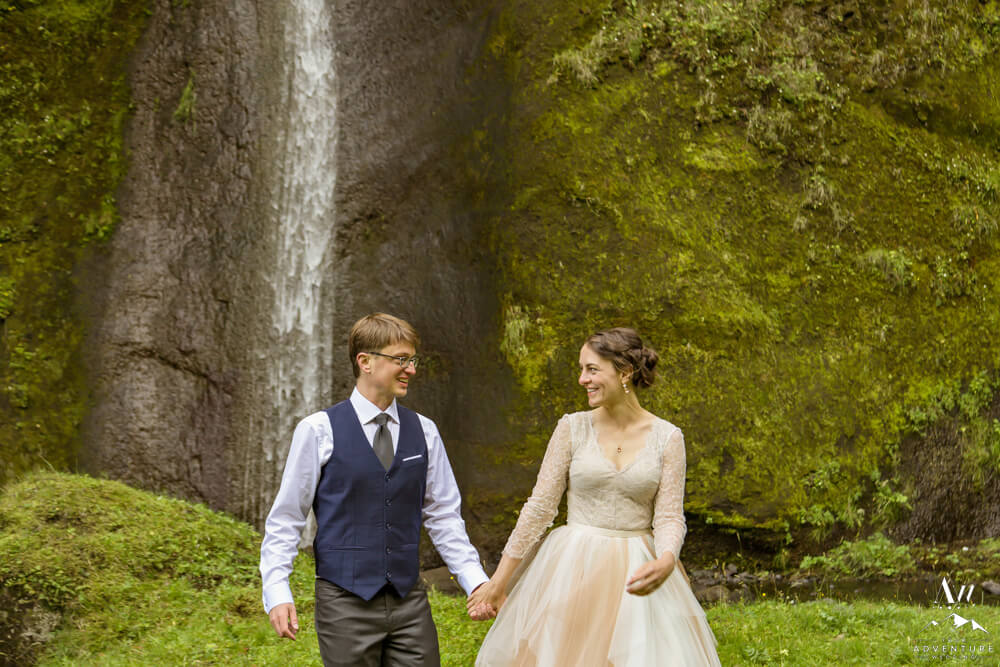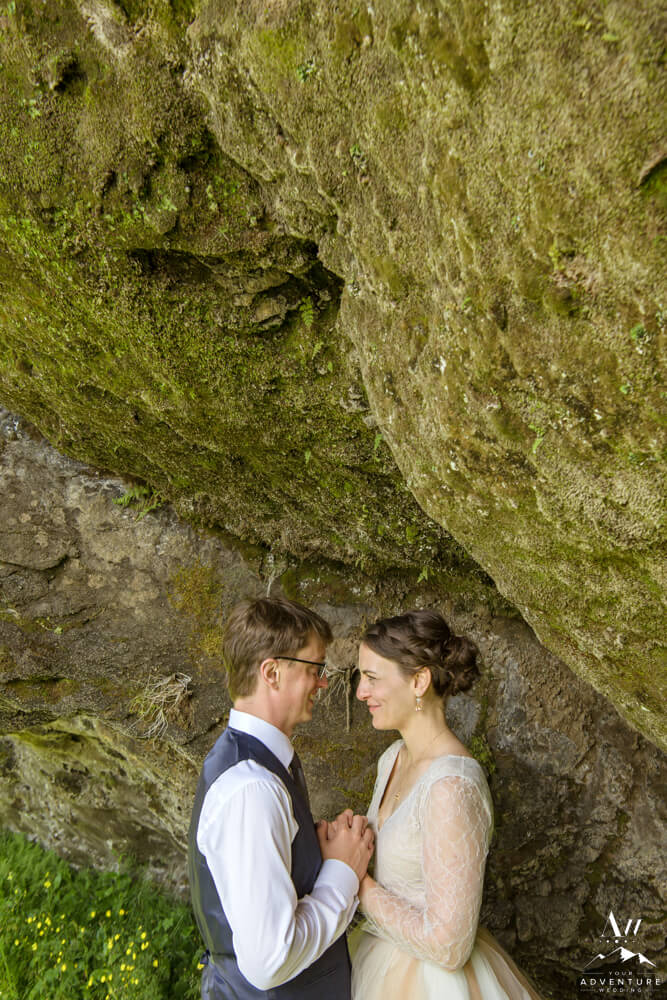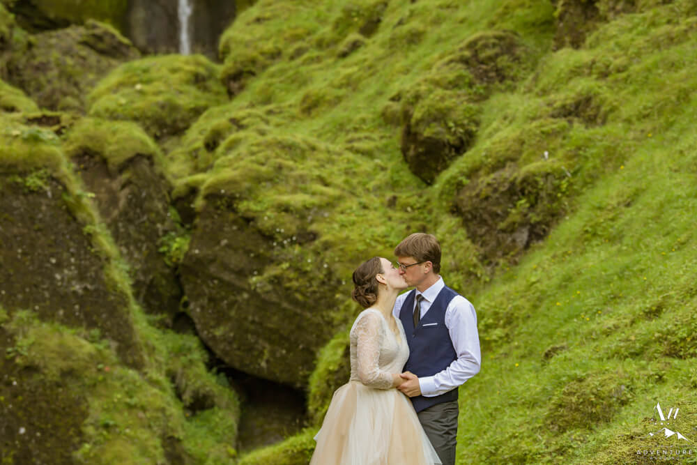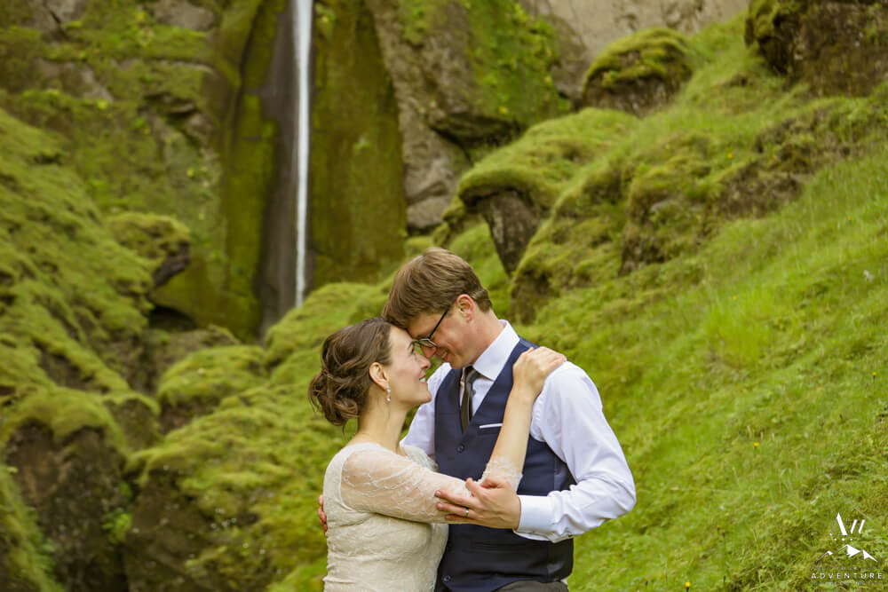 Will and Sarah continued their hiking wedding experience by venturing to one of our newest waterfalls in our portfolio. However, this specific Iceland wedding location is not for inexperienced hikers. Lots of steep slopes, switchbacks, elevation are encountered. But one of the most unique features about this private property waterfall is that it has a lava rock bridge. How picturesque for our elopement photographer to capture them with too?!