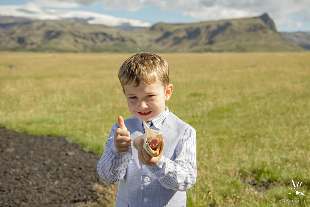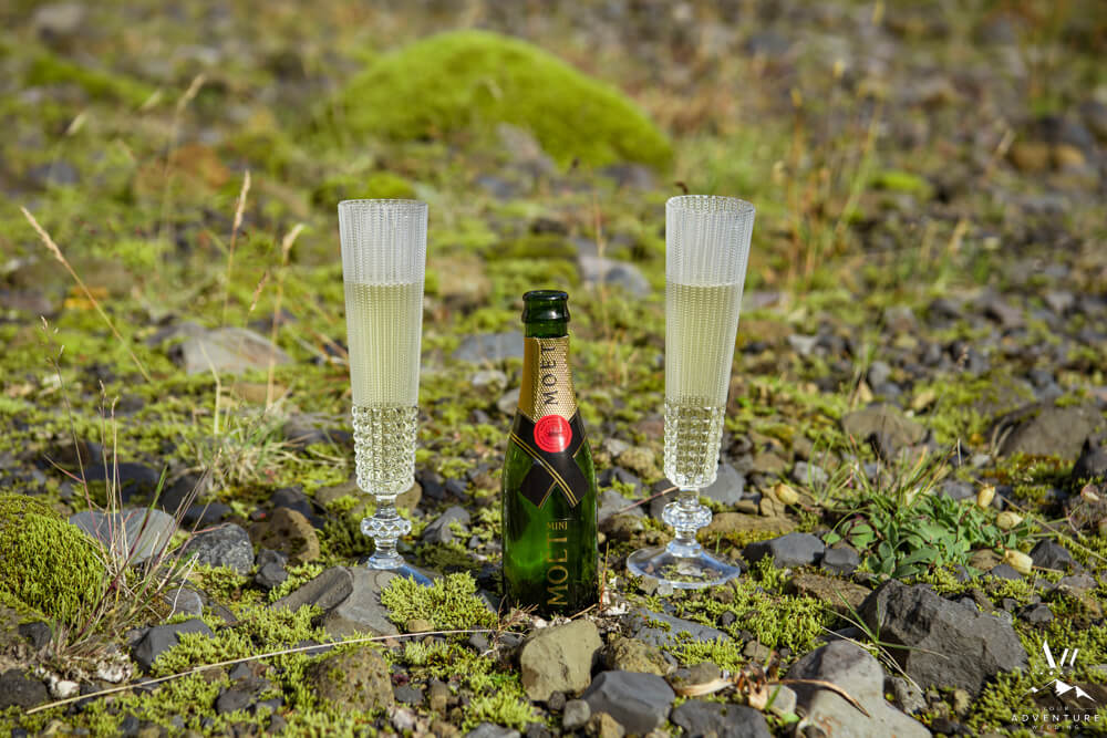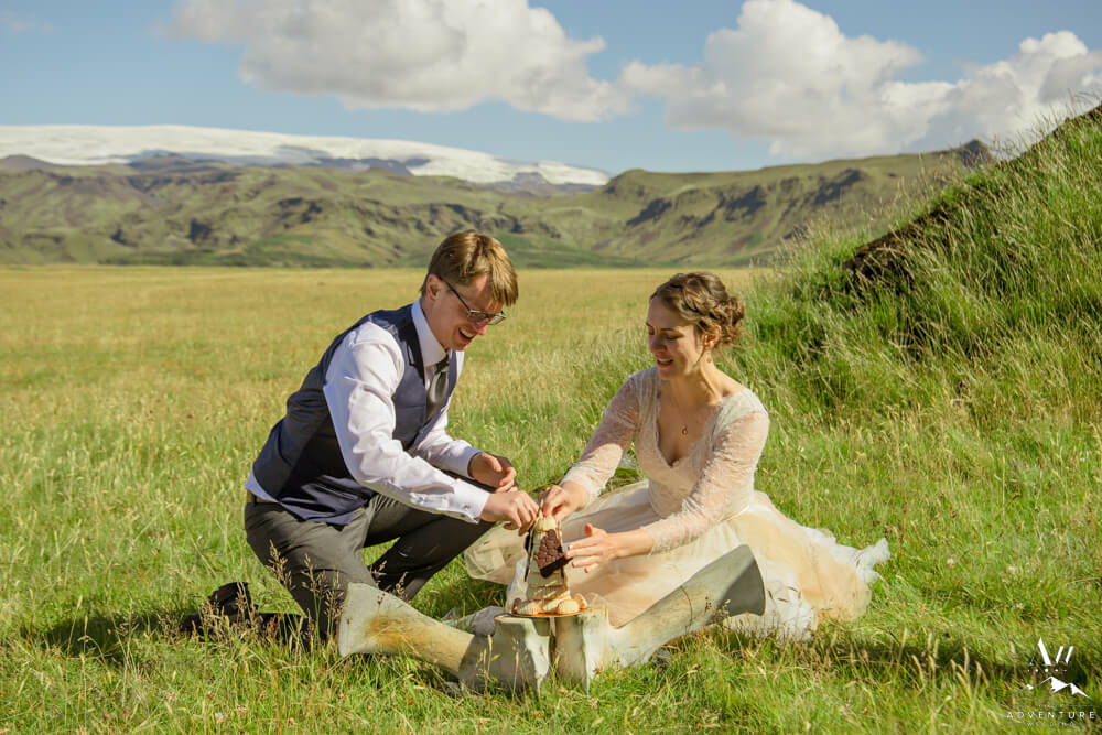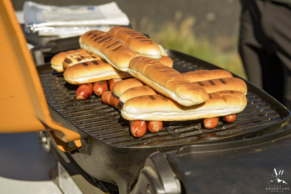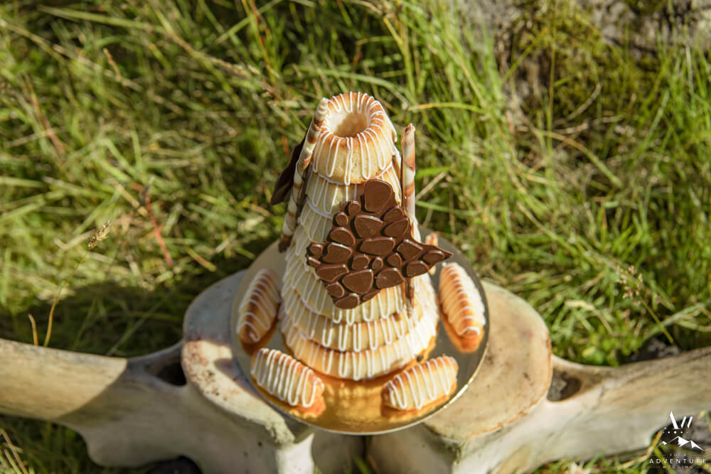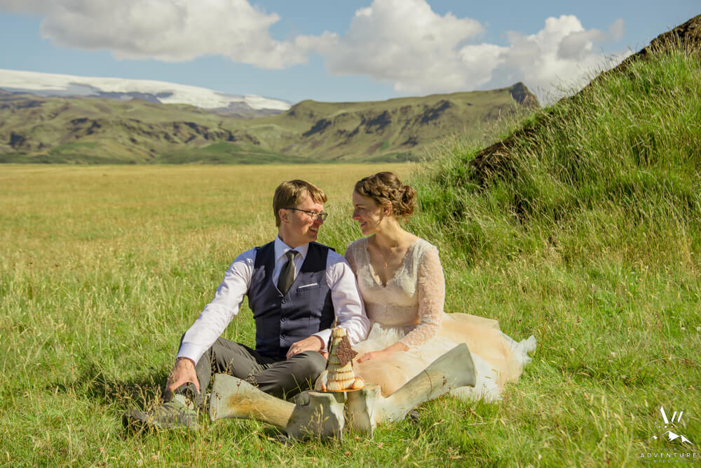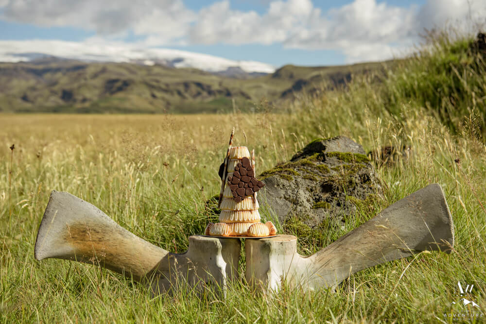 Next on the hiking wedding schedule, was a fun journey to a natural cave which comes with a glacier view! Furthermore, this was also the spot where the group delighted in a traditional hot dog BBQ and Icelandic wedding cake. Additionally, have you laid your eyes on a more earthy cake stand?! #whalebones