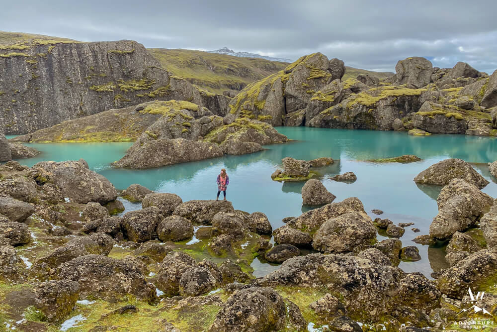 If you have time while hiking in Iceland to devote to 4-8 hours and are visiting East Iceland in July or August you must find your way to, Stórurð. To illustrate, it is a landscape that is plucked right out of a fairytale. You hike alongside super steep scenic mountains only to be greeted with views of your own secret world… It is a pond that has massive boulders just chilling in and around it. When you visit this magical place, you’ll have a moment of feeling like such a vivid place shouldn’t exist. However it does and we are so lucky to get the chance to experience!