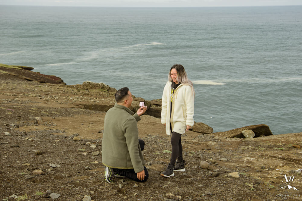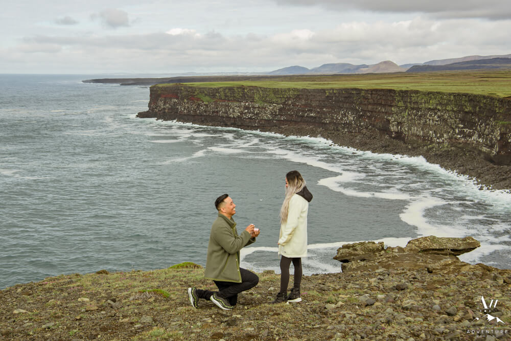 For California native, Christopher heading to Iceland to propose on a stop over to Belgium to experience Tomorrowland was ideal. After contacting our Iceland Wedding Planner team and going through all of the mesmerizing options he chose! To illustrate, it was his wish to propose to his partner Leslie, at the sea cliffs of Krýsuvíkurbjarg in the Reykjanes Peninsula. Therefore, he did! And Leslie was caught totally off guard! She said yes and he slid the ring on to her finger.