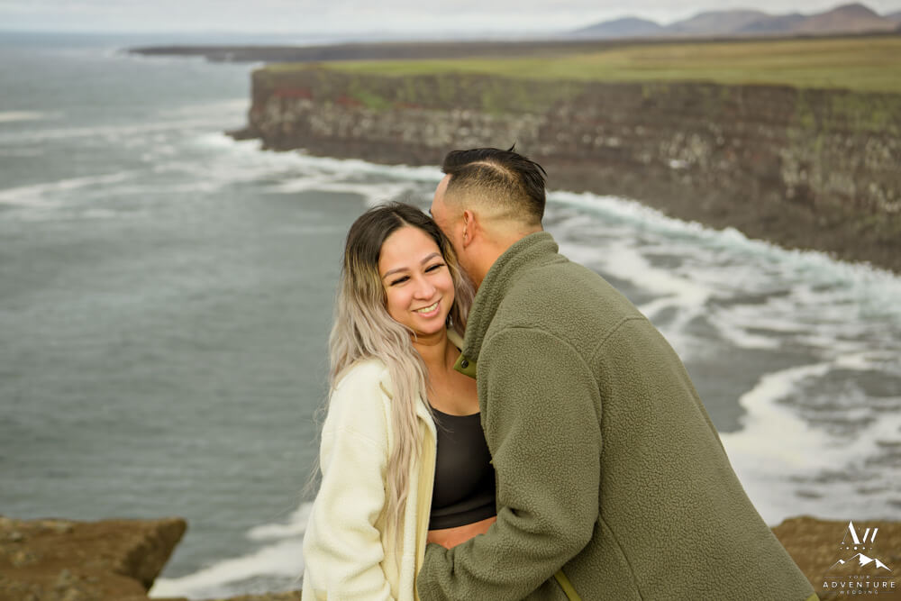 Next, a fabulous Iceland engagement session ensued! As if the moment wasn’t already romantic enough, the texture and formations of the cliffs really added to the majesty.
