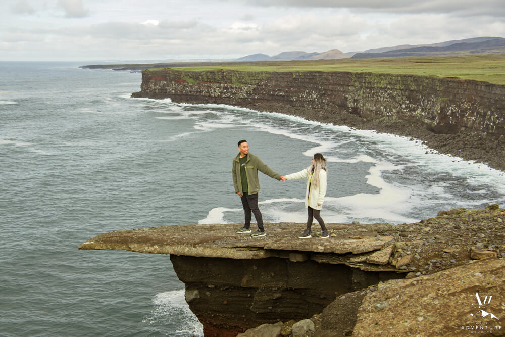 Coastlines in Iceland are often sandy, rocky, lined with dramatic sea cliffs or rock formations. This makes exploring them a dynamic adventure! Likewise one of most sought after proposal locations too. After all who doesn’t want to be in utter awe over the landscape and then pop a life changing question?! Krýsuvíkurbjarg sea cliffs is just the place for such a monumental occasion!