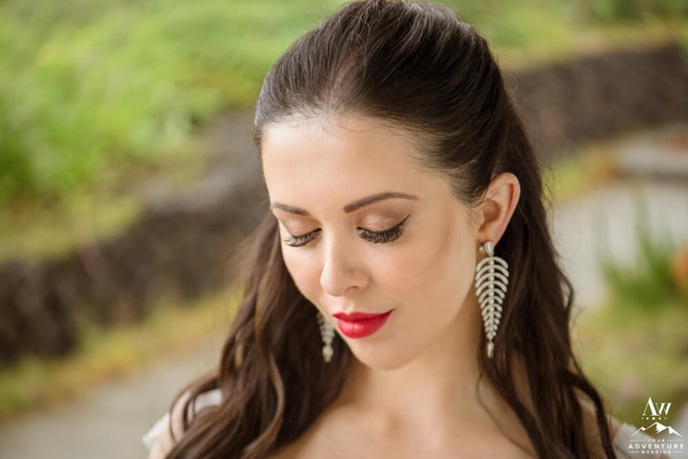 Next, the other majority choose natural but with popping eyes. Maybe that means winged eyeliner, individual eyelashes, or eye shadow that commands attention! If you’re not use to having much eye makeup on, it may take a little bit of getting use to but don’t stress! Our Iceland makeup artist does this professionally and in fact, they have been with our Iceland Wedding Planner team for almost a decade! Is natural with poppy eyes your Iceland wedding hair & makeup style?!