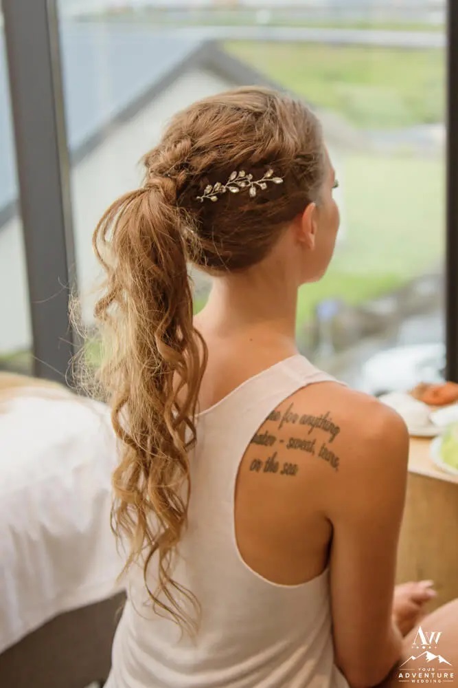 Looking for an Iceland wedding hair & makeup style that is a bit different or in-between the above? Well then you should consider the ponytail or a braid in all forms. Maybe even consider having a greenery crown! Dare you to be different!!