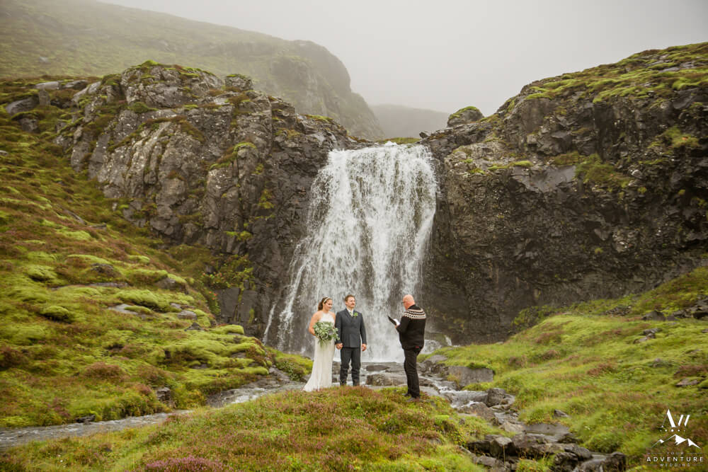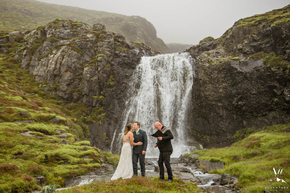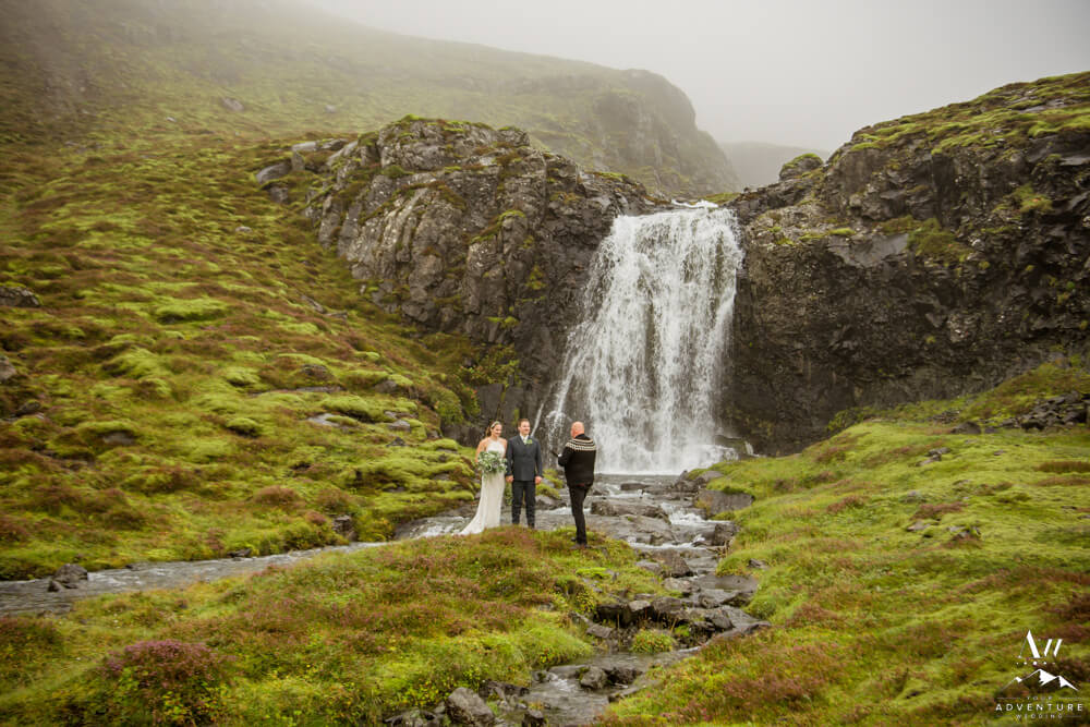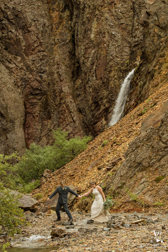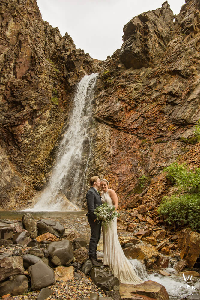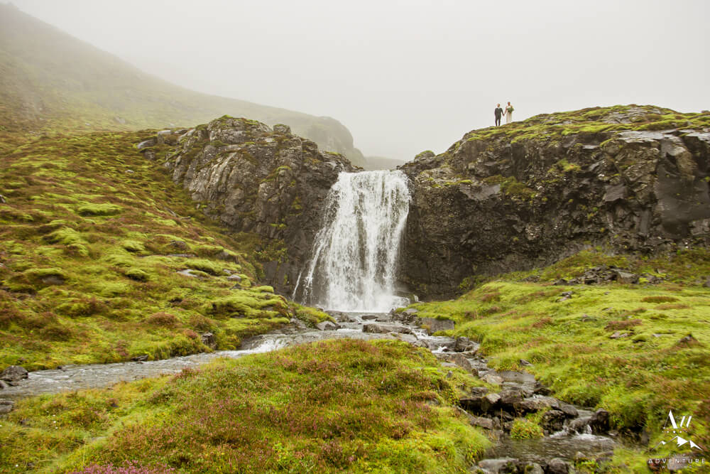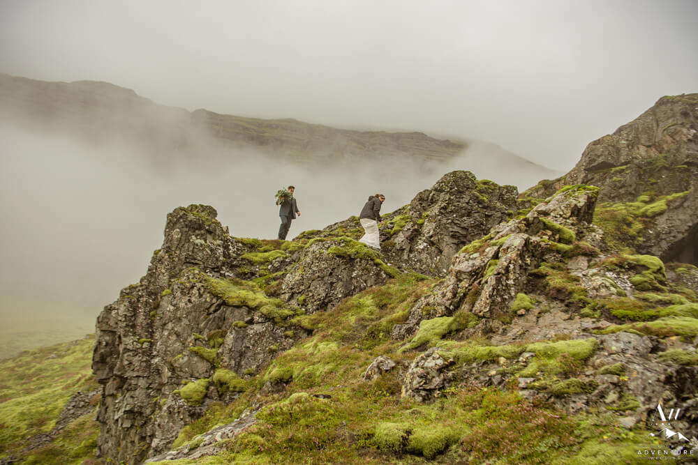 Furthermore, the clouds seemed to get lower the closer they hiked to their private property waterfall valley. Truly a very dramatic elopement ceremony was on the way!