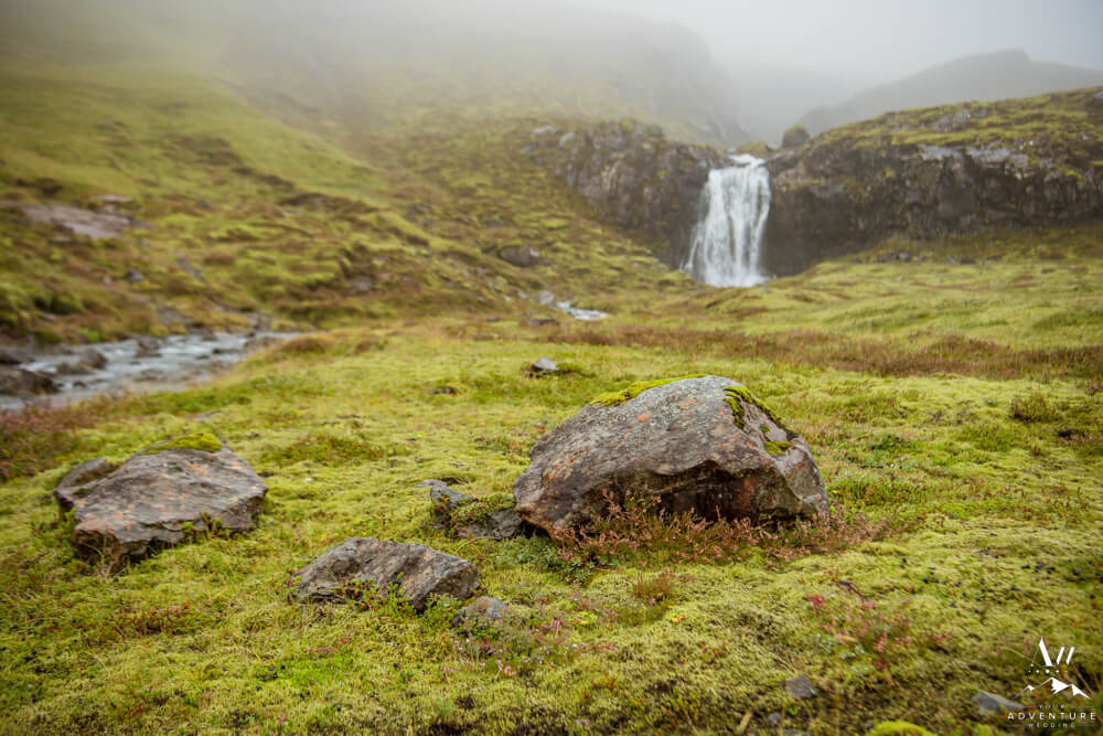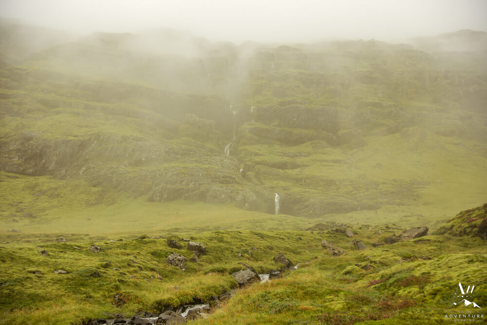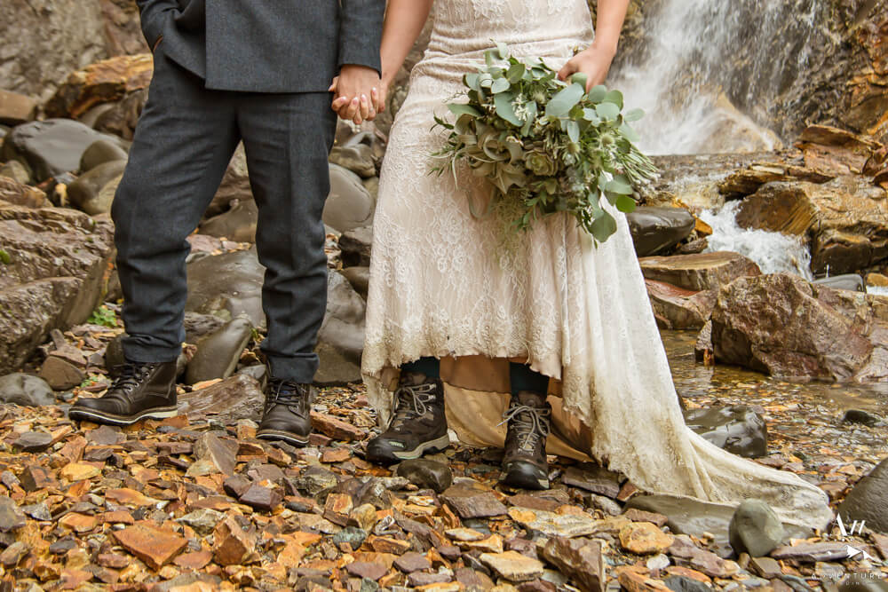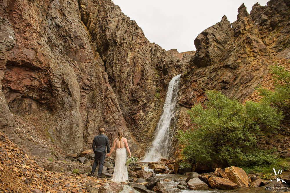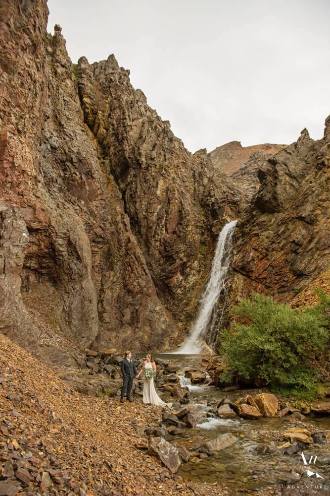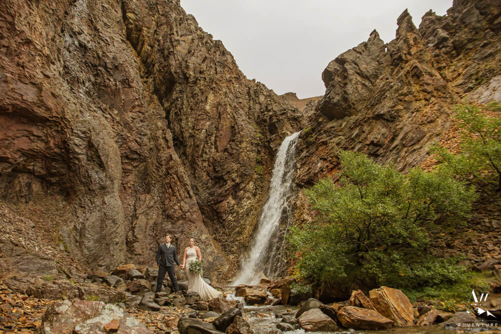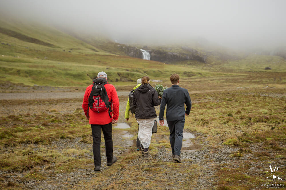 Furthermore, the clouds seemed to get lower the closer they hiked to their private property waterfall valley. Truly a very dramatic elopement ceremony was on the way!
