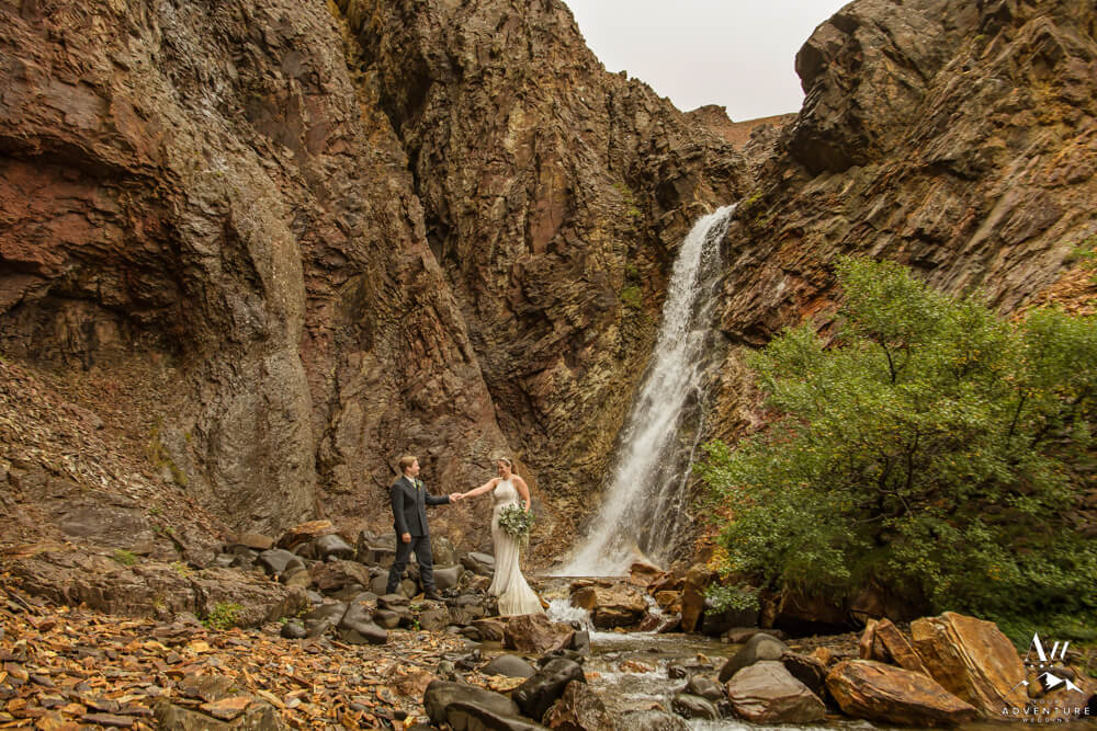 Wrapping up their 10 hour dramatic elopement adventure is an iconic highland area that is nicknamed the Golden Valley. First, when you travel through this area you plunge through deep switchback valleys. Second, the textures and tones of this place is truly mind blowing! For example, in some areas it looks like it smashed up colorful clay pots and others lush tropical greens. As the newlyweds explored the valley mother nature reminded us she is in charge!