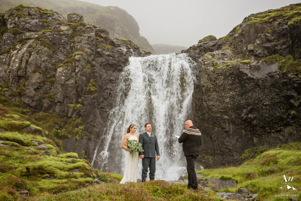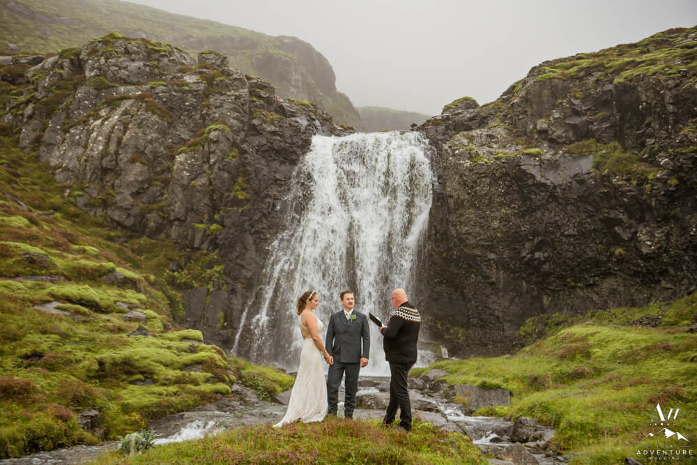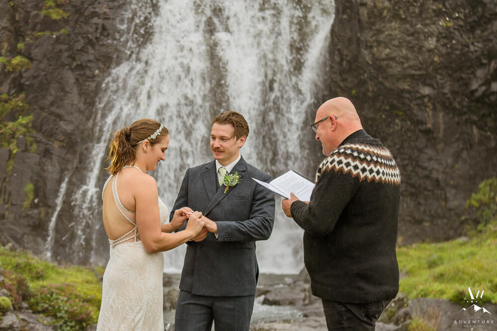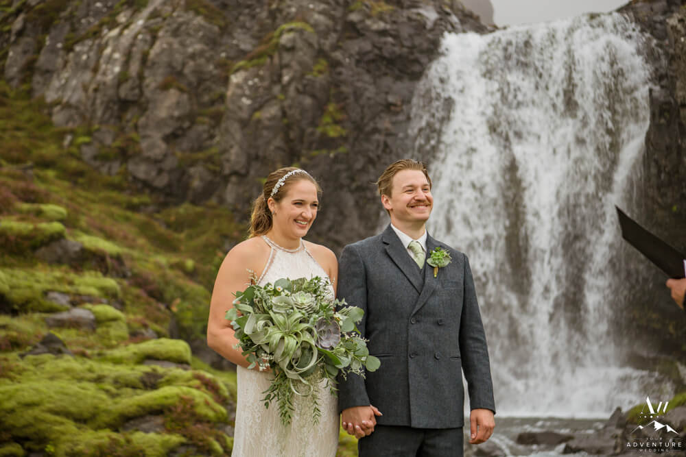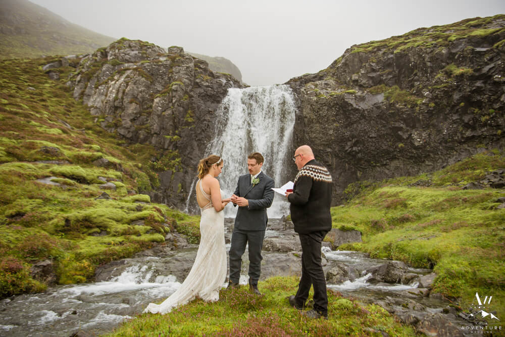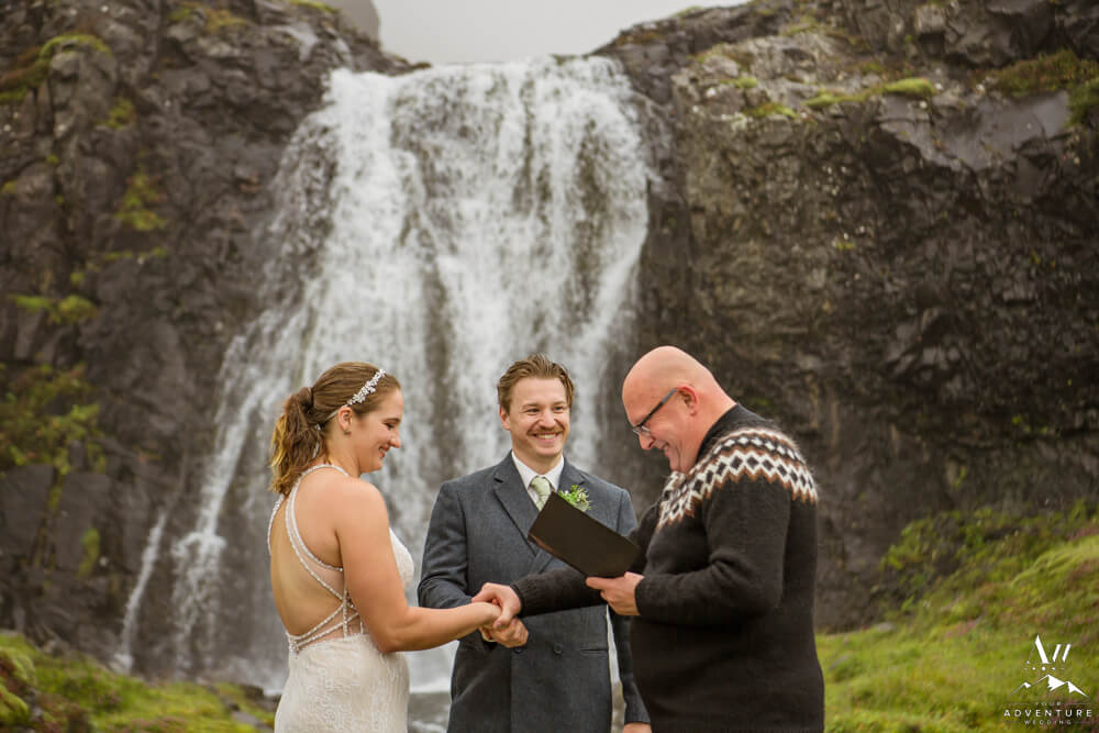 Our favorite Pastor, Haraldur kept it casual by wearing an traditional Icelandic sweater. But his eloquent words paid homage to their love of travel and each other. Additionally, Austin and Kate exchanged rings and started their newlywed status with a sweet kiss!