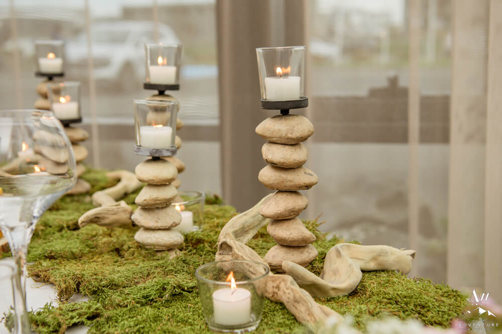 Firstly, you need to decide if having an elopement reception table is important to you or not. Second, will you style it yourself by bringing your own items or will you hire someone to do for you? Third, if hiring someone will they surprise you or will you ask them to create a specific theme? Fourth, let’s say you’re having an adventurous elopement in Iceland, what types of table décor would make you feel special…