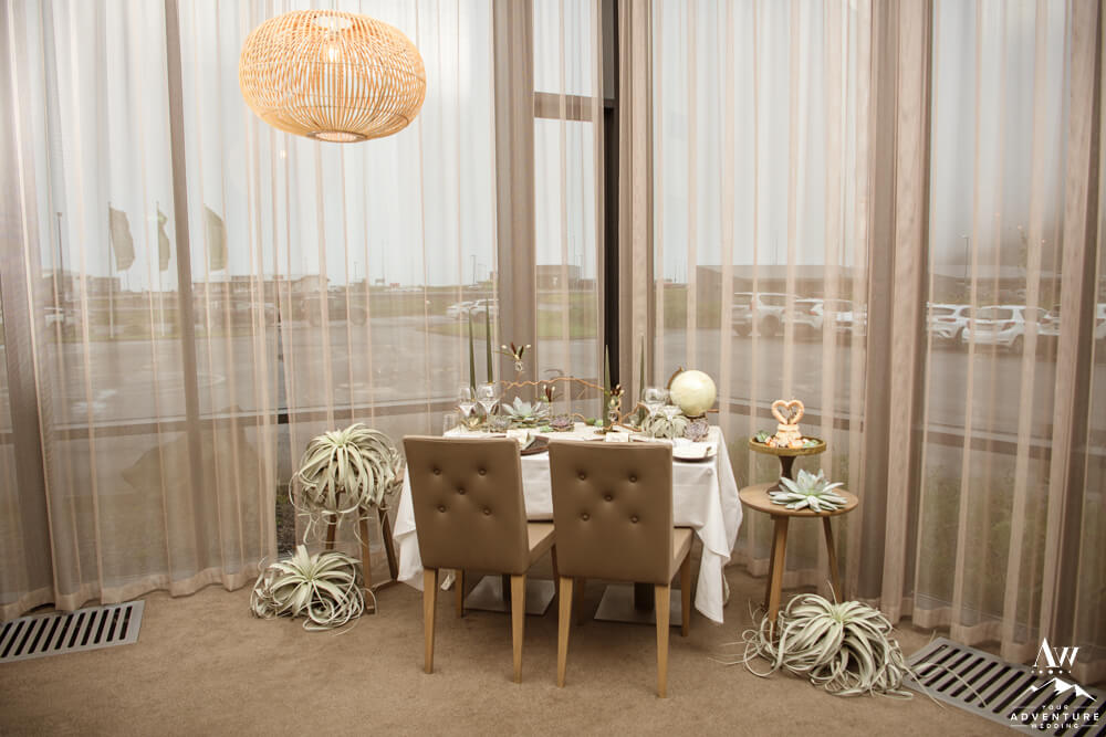 Whereas, if you want a more elaborate option it would range between $250 – 2,000 USD+. Also keep in mind that only a few Iceland wedding hotels offer private rooms or semi-private spaces if you desire that. Otherwise you can anticipate the décor being on a table within the main restaurants areas.