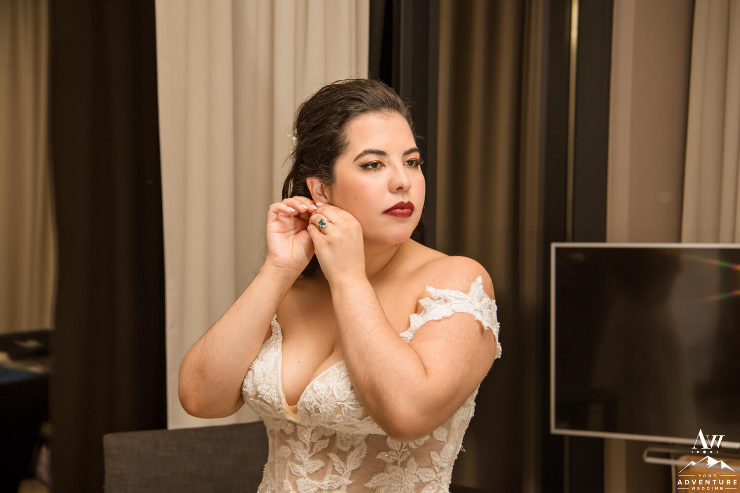 October 12th 2022 began quietly. The soon to be newlyweds got ready together at Hotel Vik. Our Iceland Wedding Planner hair, makeup, elopement photographer, and video team got to work before sunrise. How fabulous is Sophy’s wedding dress and flowers?! High five to Sophy for her fab choice and our stylist Tinna! Next, just before they loaded into the super jeep for the day, they grabbed their “go bags” and they began their journey…