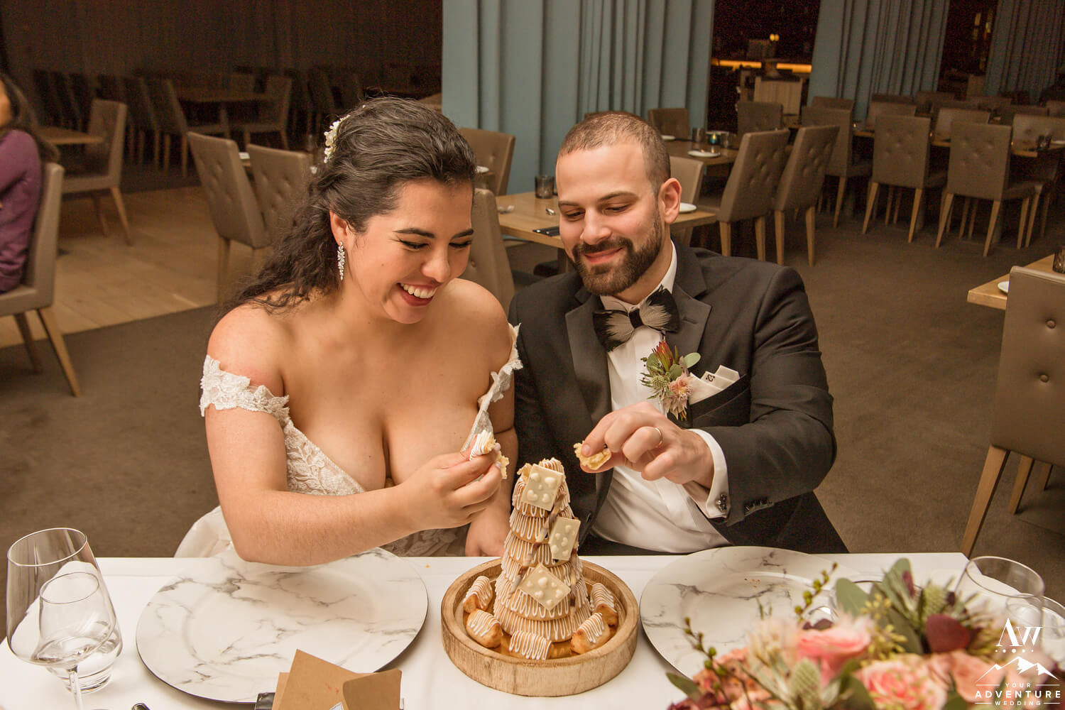 After an incredible October highland elopement adventure, the newlyweds had a bit of time to rest and fresh. Then they headed down to The Berg for a special dinner. For instance, they even gave the Icelandic kransakaka tradition a go! But wait… the day didn’t end yet, keep scrolling!