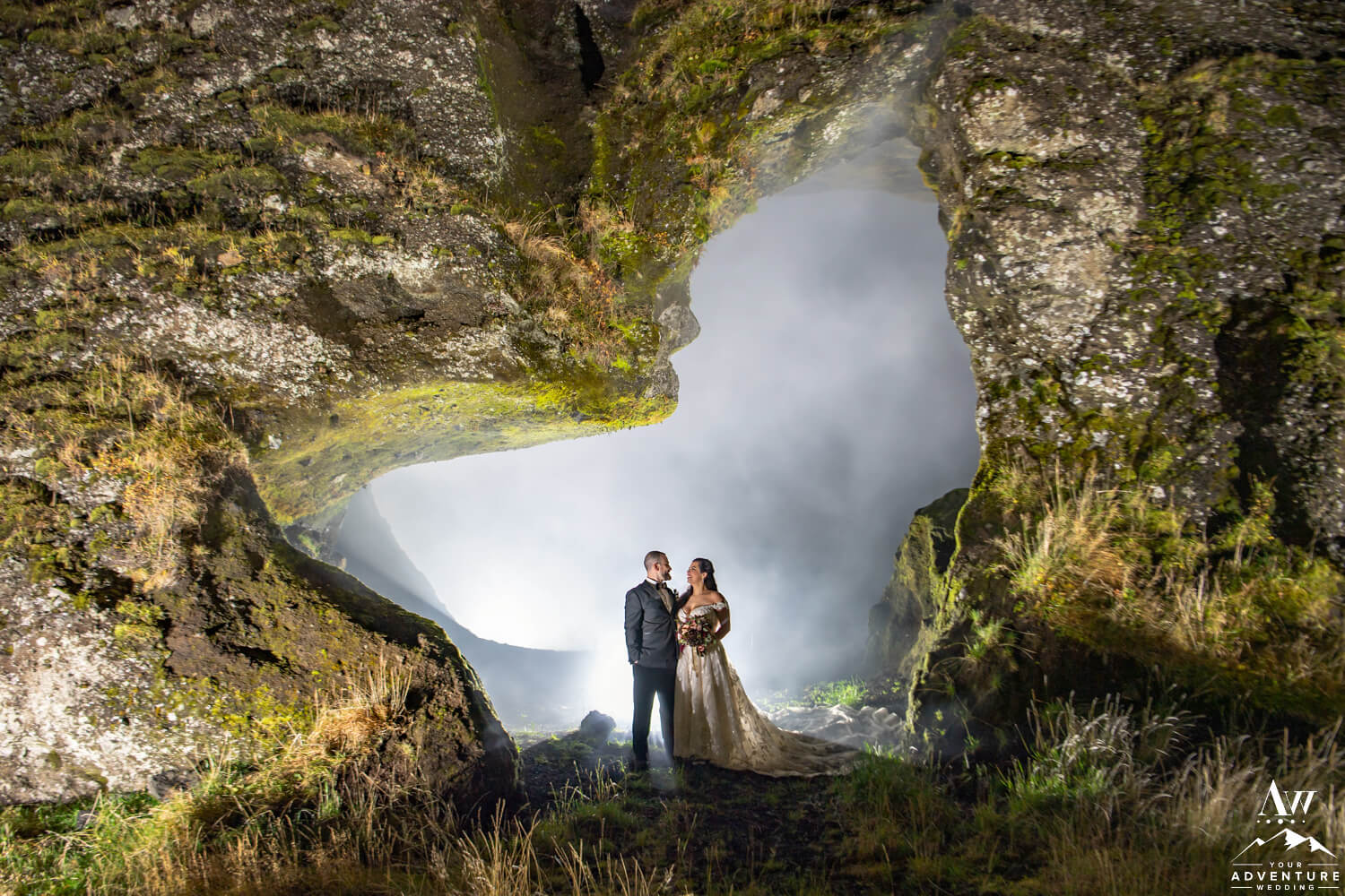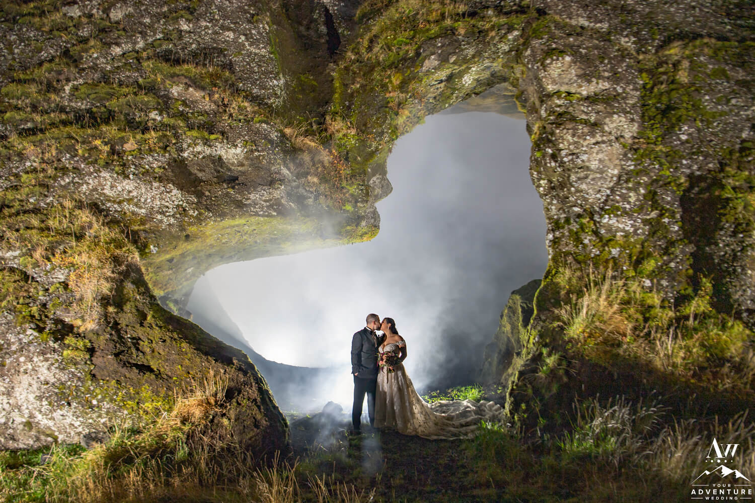 Rounding out their thrilling October highland elopement adventure was a visit to a natural cave. Although the original intention was to hopefully experience the Aurora Borealis, our Iceland Wedding Planner team always has a plan “b” in mind. Hello ground sparklers and flares! A monumental way to end their unforgettable day, truly! Also, we include their Iceland wedding video by the talented Beit Productions! Don’t you dare miss it!!