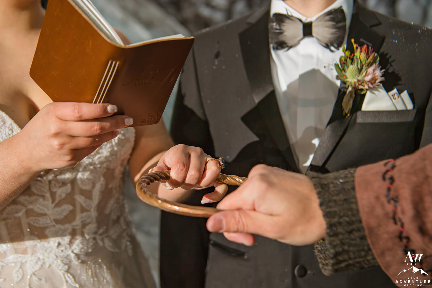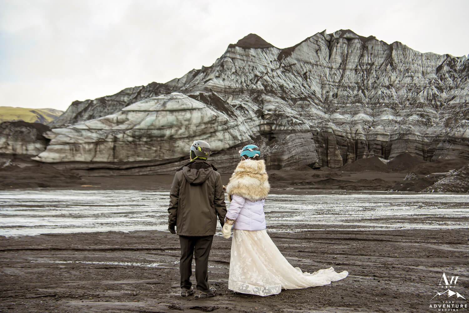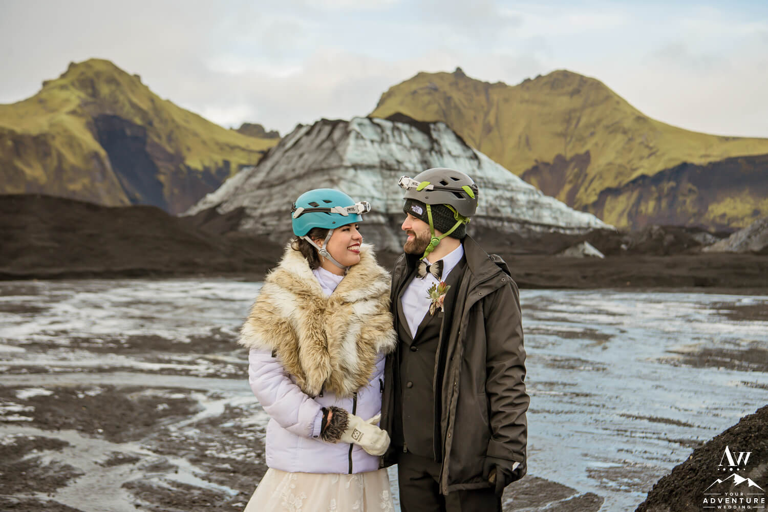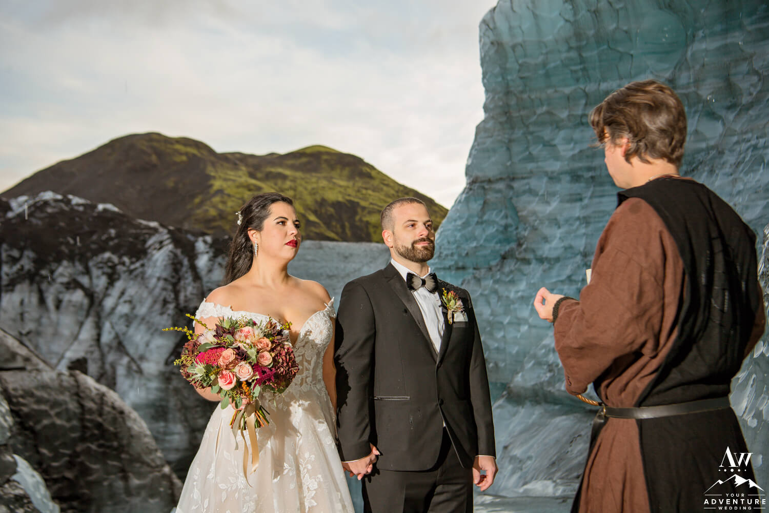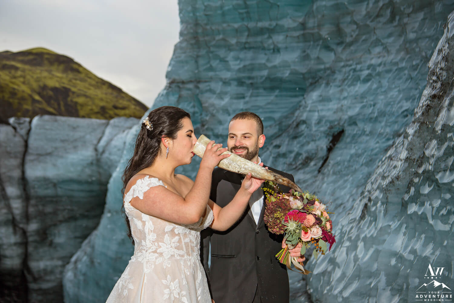 Heading into the wild of Iceland as sunrise approached is an eerie but exciting feeling! Perfect vibe for their October highland elopement, truly! Bundled up for the hike to the Katla Ice Cave area Sophy and Vinnie were ready for their first private experience. For example, they chose to hold an Ásatrú wedding ceremony with an Icelandic Goði. This is the type of ceremony where you are connected to Norse mythology, write oaths to each other, hold an oath ring, and drink from a Viking horn.