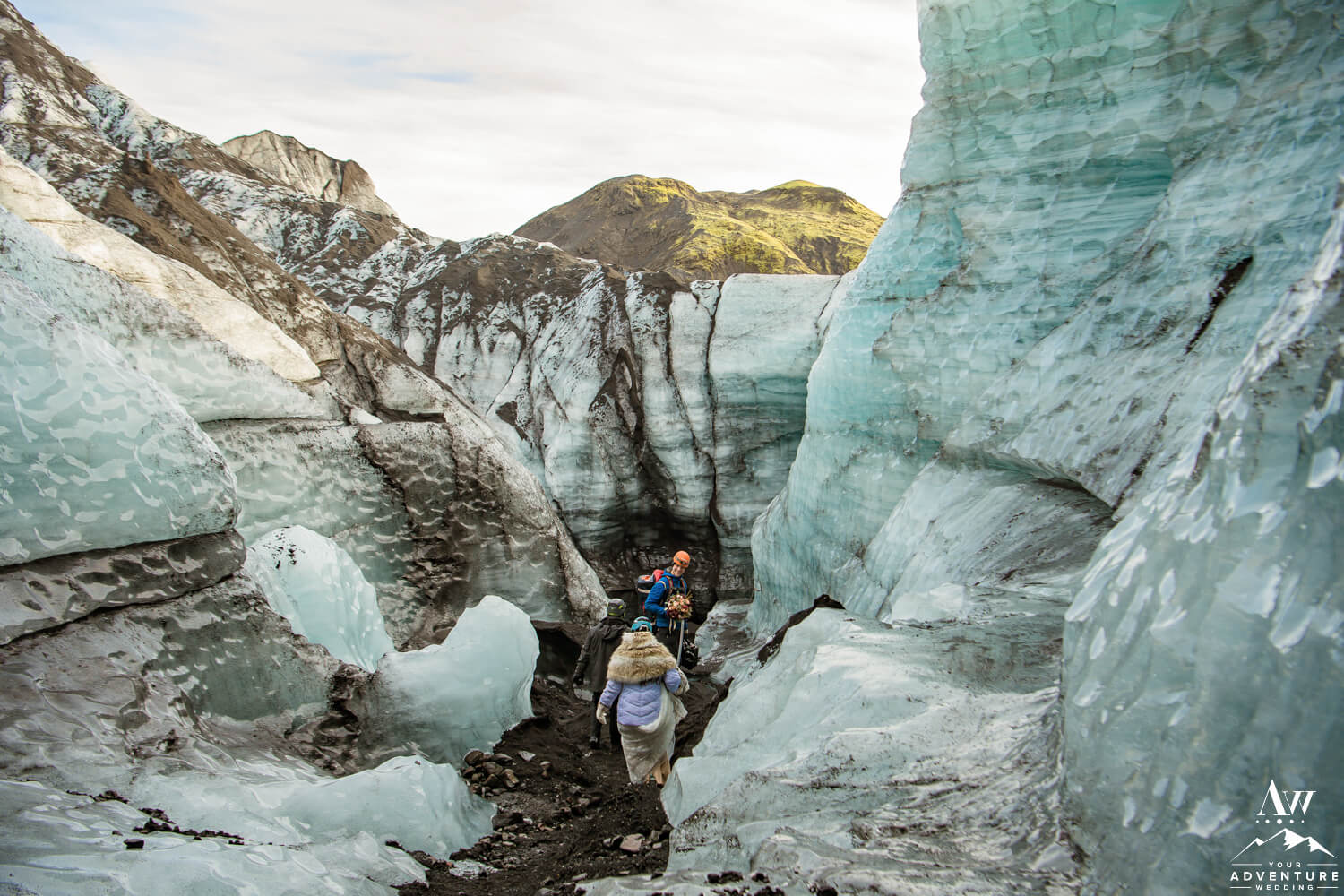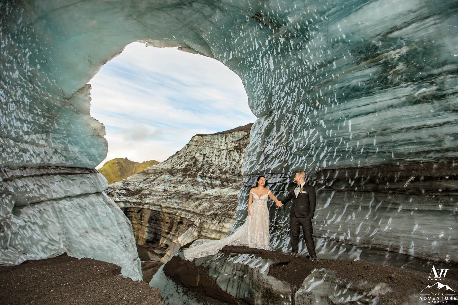 Following their private ice cave elopement ceremony, the two adventured together through every inch and all sides of the cave. Being able to experience such a place can really be awe-inspiring and once in lifetime for many. After all, the area changes daily. For instance, the spot they held their ceremony 8 months ago has since melted and collapsed. That fun fact kinda makes the area even more special, right?!