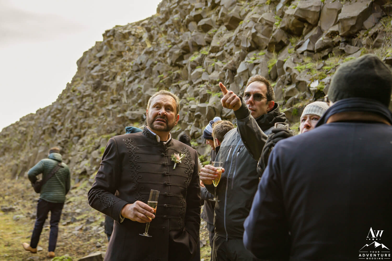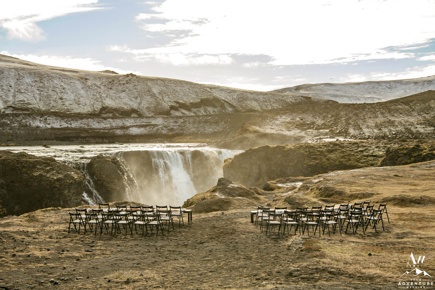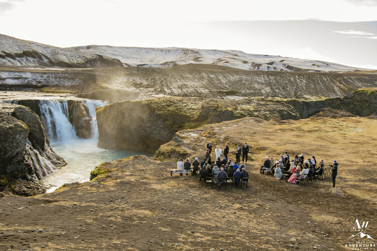 When you plan a waterfall wedding for a large group one of the many things you need to consider is your guests comfort. Likewise, hearing the ceremony is extraordinarily important so make sure you have a sound system so it can be heard over the waterfall sounds and weather in Iceland. Further, if the ceremony will be longer than 5 minutes, consider having a seated ceremony. Also, if it’s a rural location, how will they use bathroom? But don’t fret, if you have hired our Iceland Wedding Planner team, none of these items will worry you!