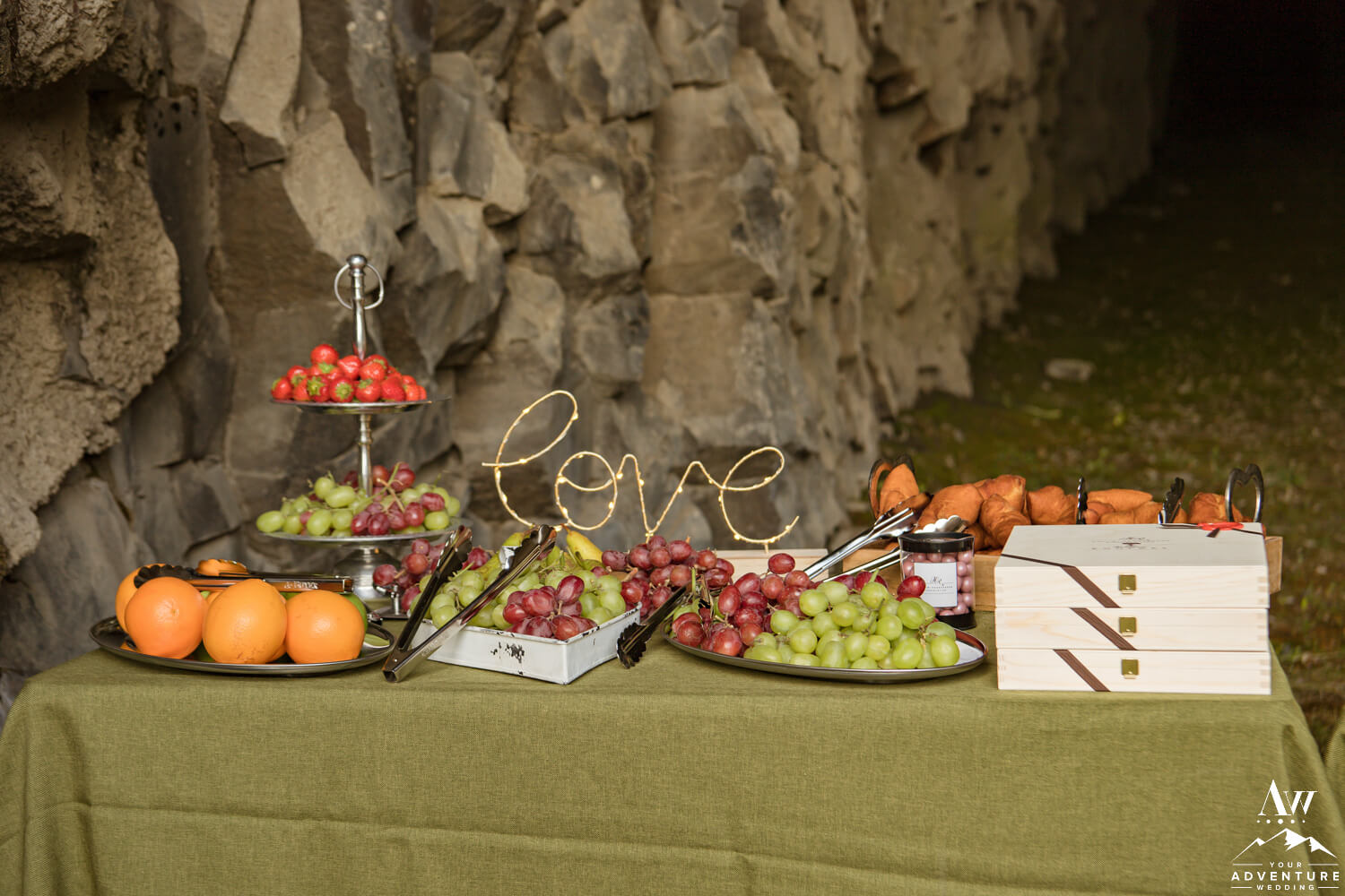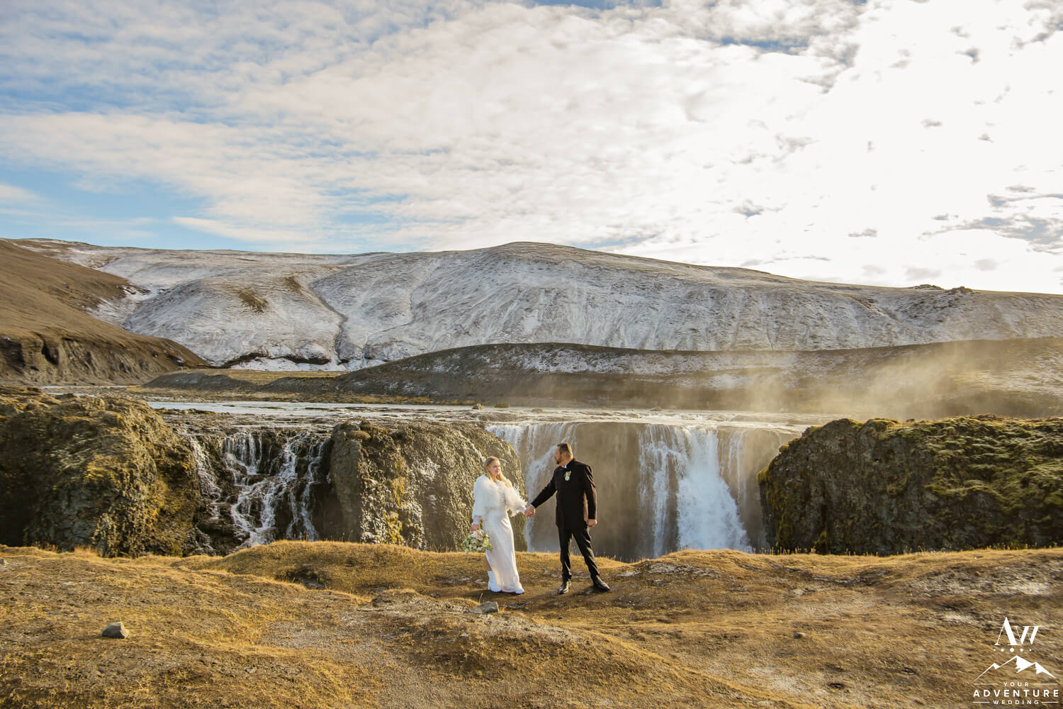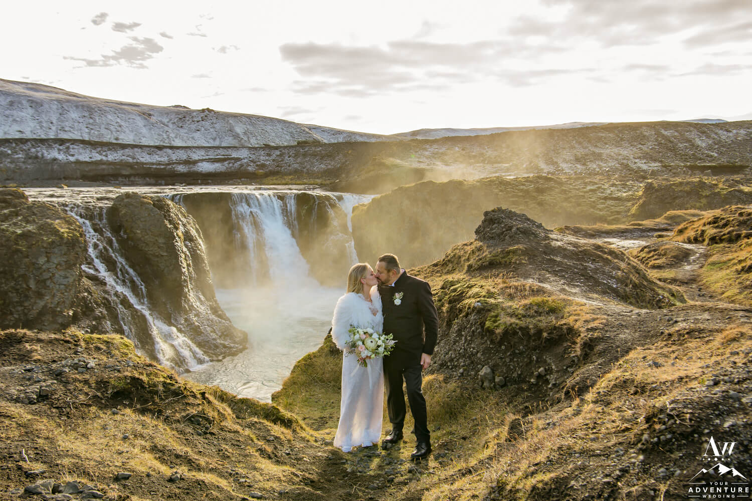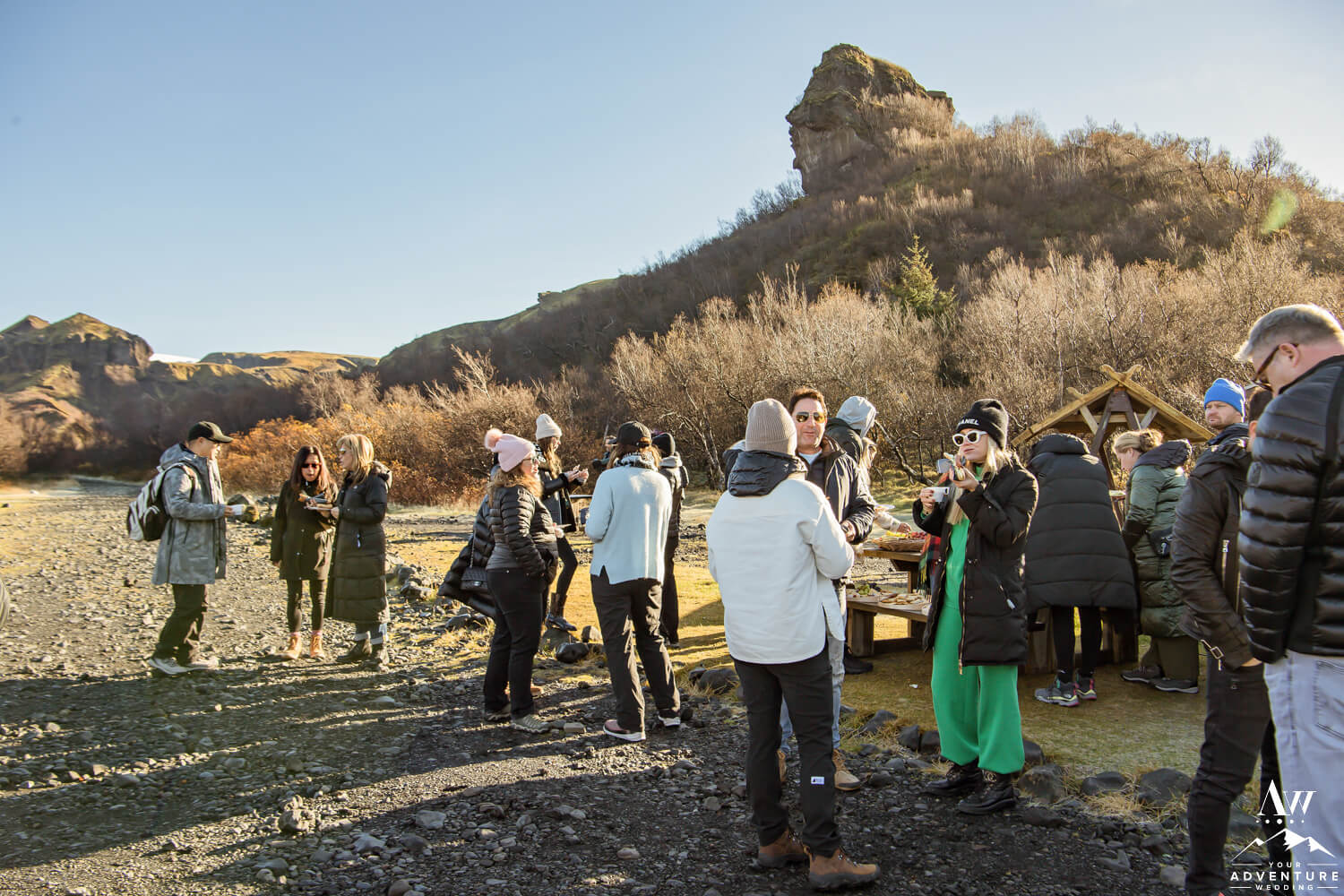 When you plan a waterfall wedding for a large group one of the many things you need to consider is your guests comfort. Likewise, hearing the ceremony is extraordinarily important so make sure you have a sound system so it can be heard over the waterfall sounds and weather in Iceland. Further, if the ceremony will be longer than 5 minutes, consider having a seated ceremony. Also, if it’s a rural location, how will they use bathroom? But don’t fret, if you have hired our Iceland Wedding Planner team, none of these items will worry you!