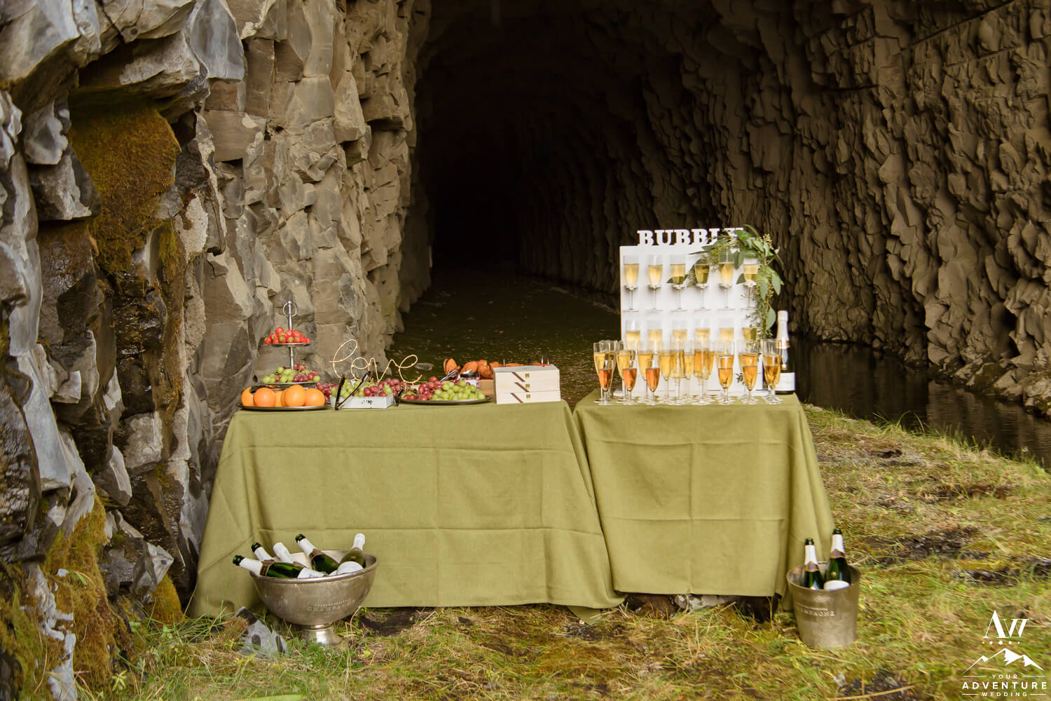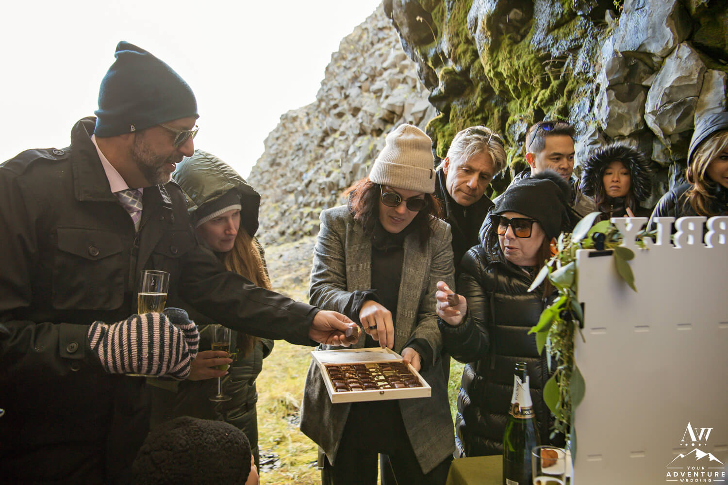 The journey continued with a champagne toast at a private property cave. Pol Roger champagne (and non-alcoholic for the kids and those who wished) was served alongside a fabulous display of fruit and Icelandic artisan chocolates.