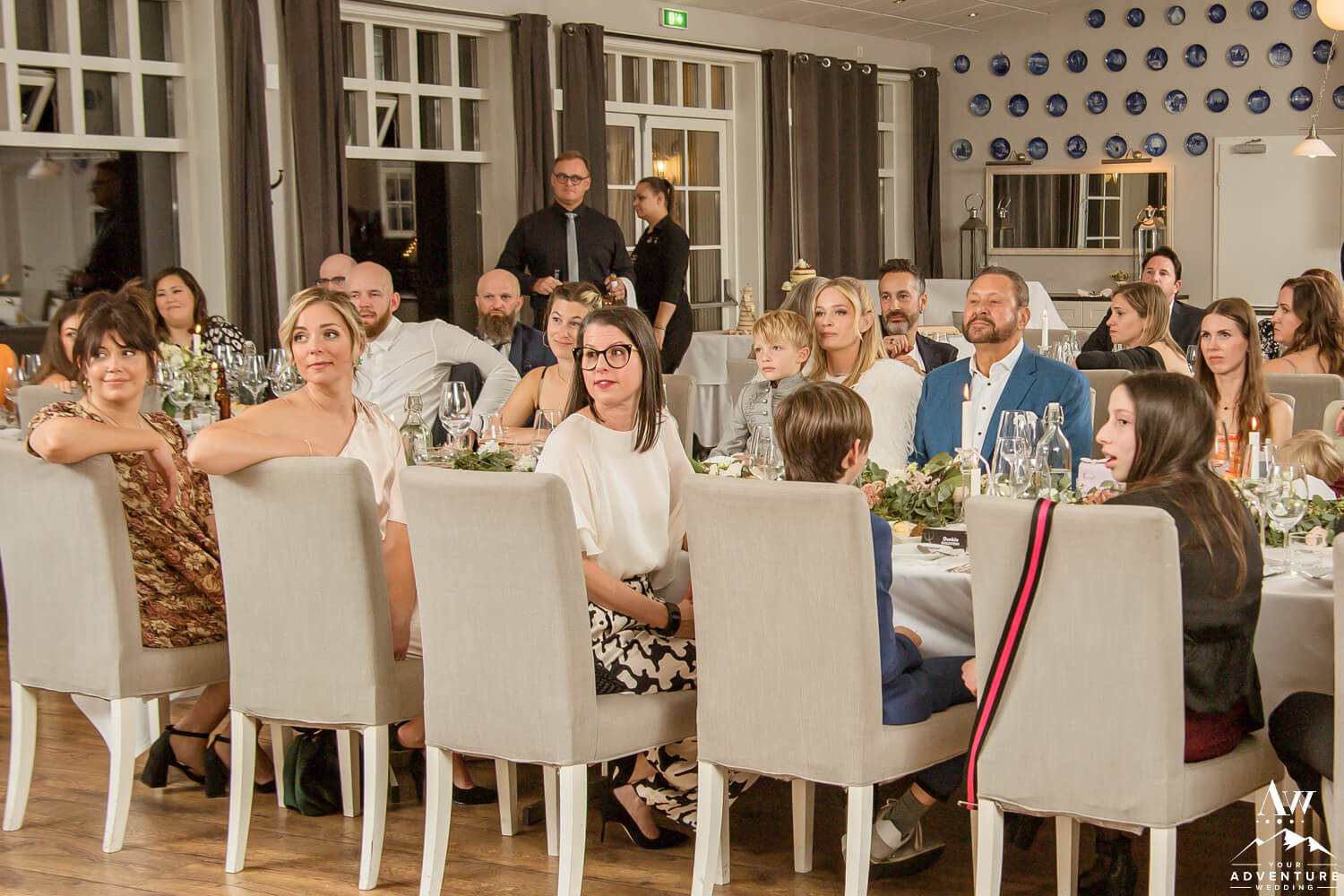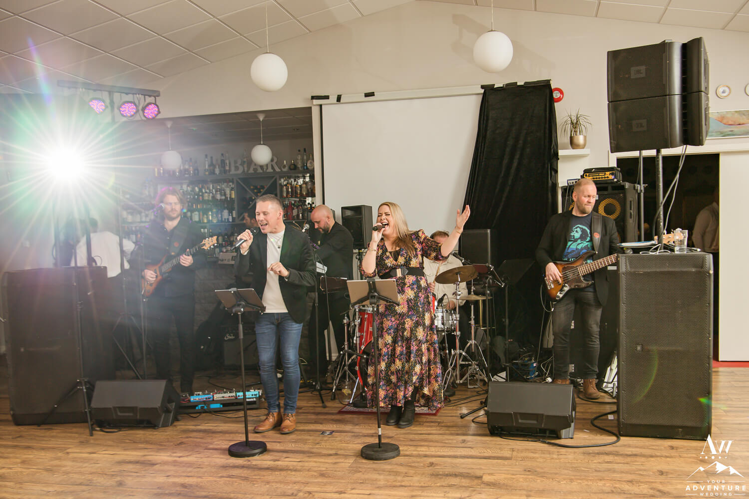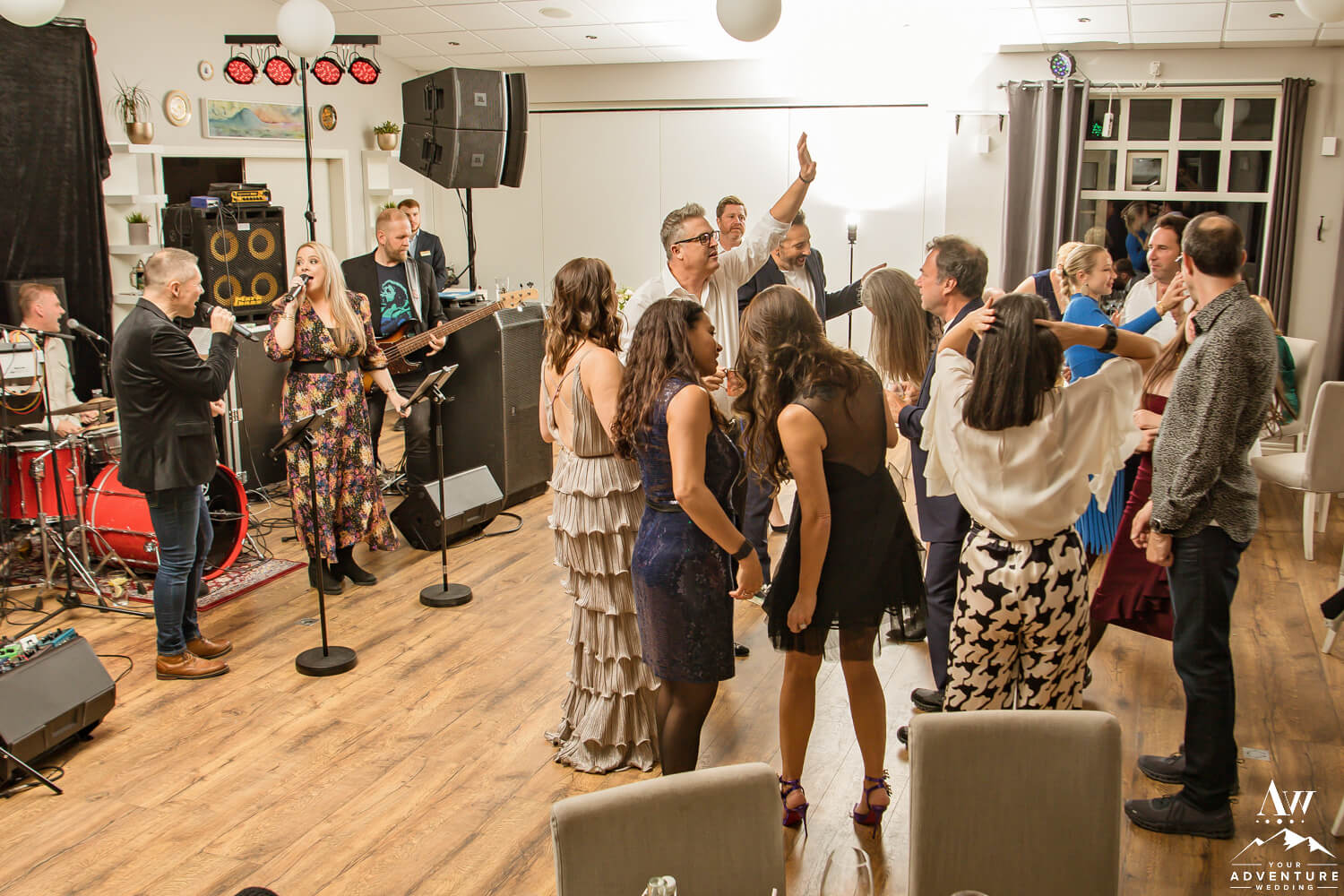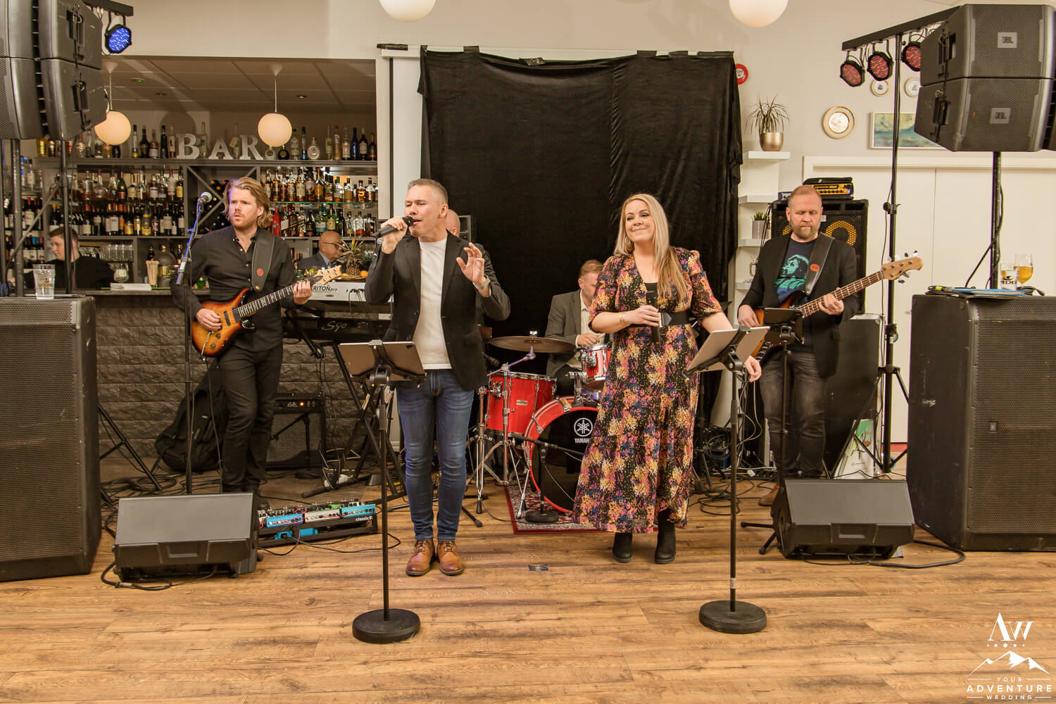 Once the newlyweds and their group returned to their accommodation, they had ample time to rest and refresh. Meanwhile, as the hour approached 8pm the guests found their way to the Iceland wedding reception. There they delighted in a 3 course meal, speeches, cake (both North American style and an Icelandic kransakaka), and dancing to the tunes of the local Icelandic band, Spútnik!