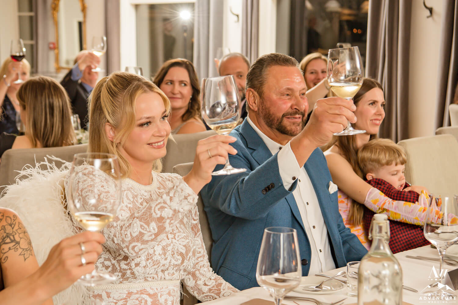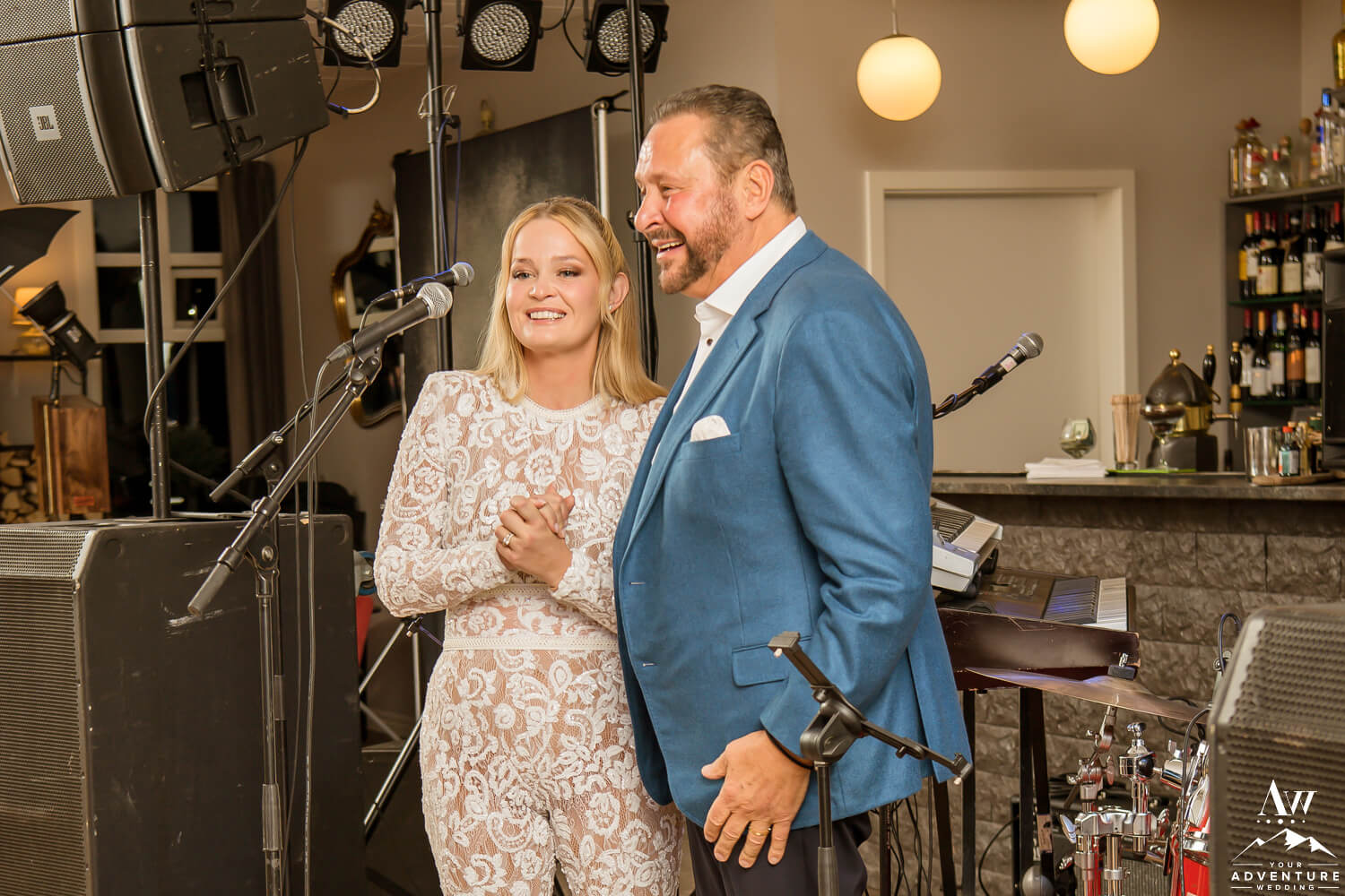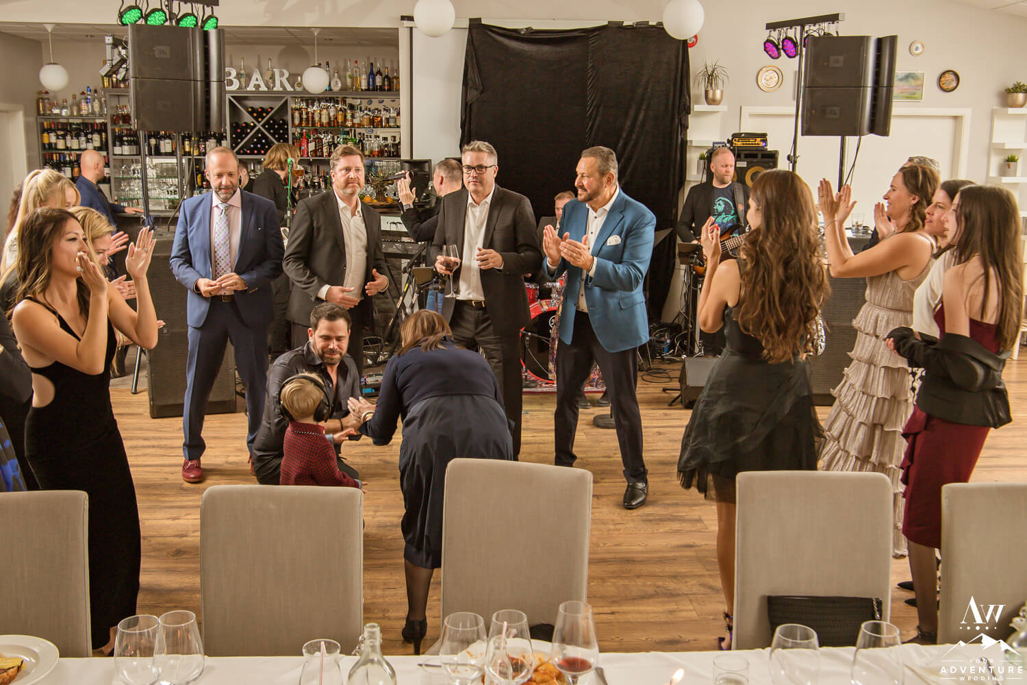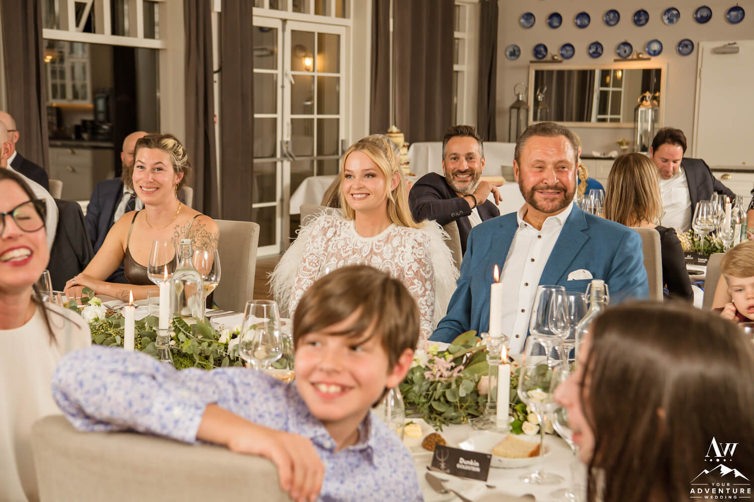 Once the newlyweds and their group returned to their accommodation, they had ample time to rest and refresh. Meanwhile, as the hour approached 8pm the guests found their way to the Iceland wedding reception. There they delighted in a 3 course meal, speeches, cake (both North American style and an Icelandic kransakaka), and dancing to the tunes of the local Icelandic band, Spútnik!