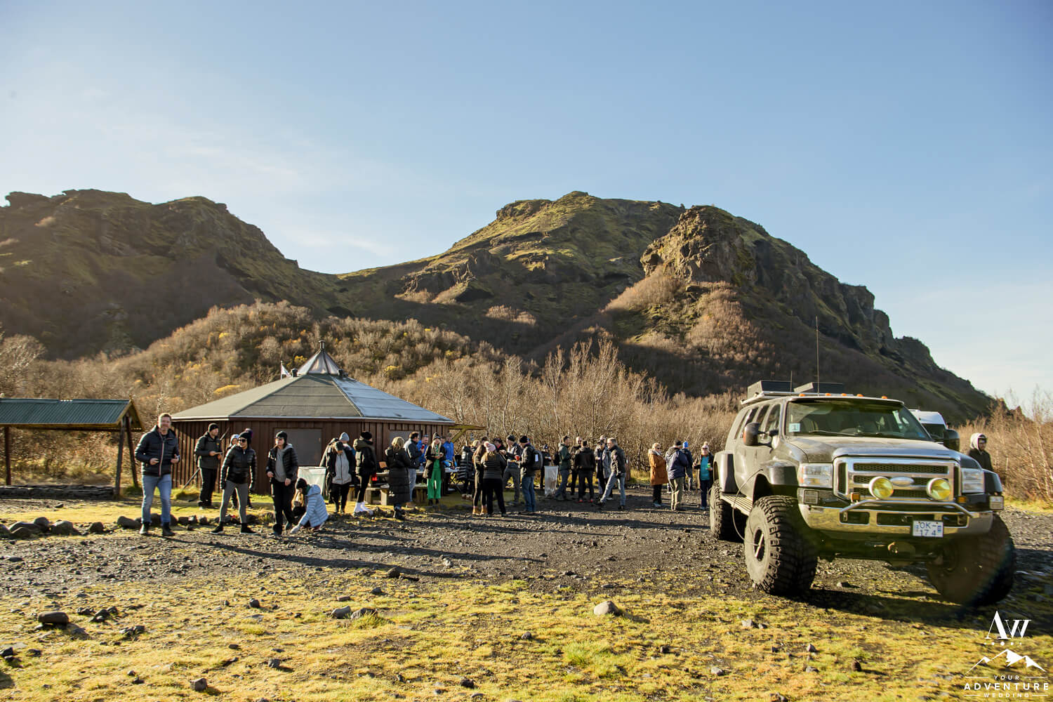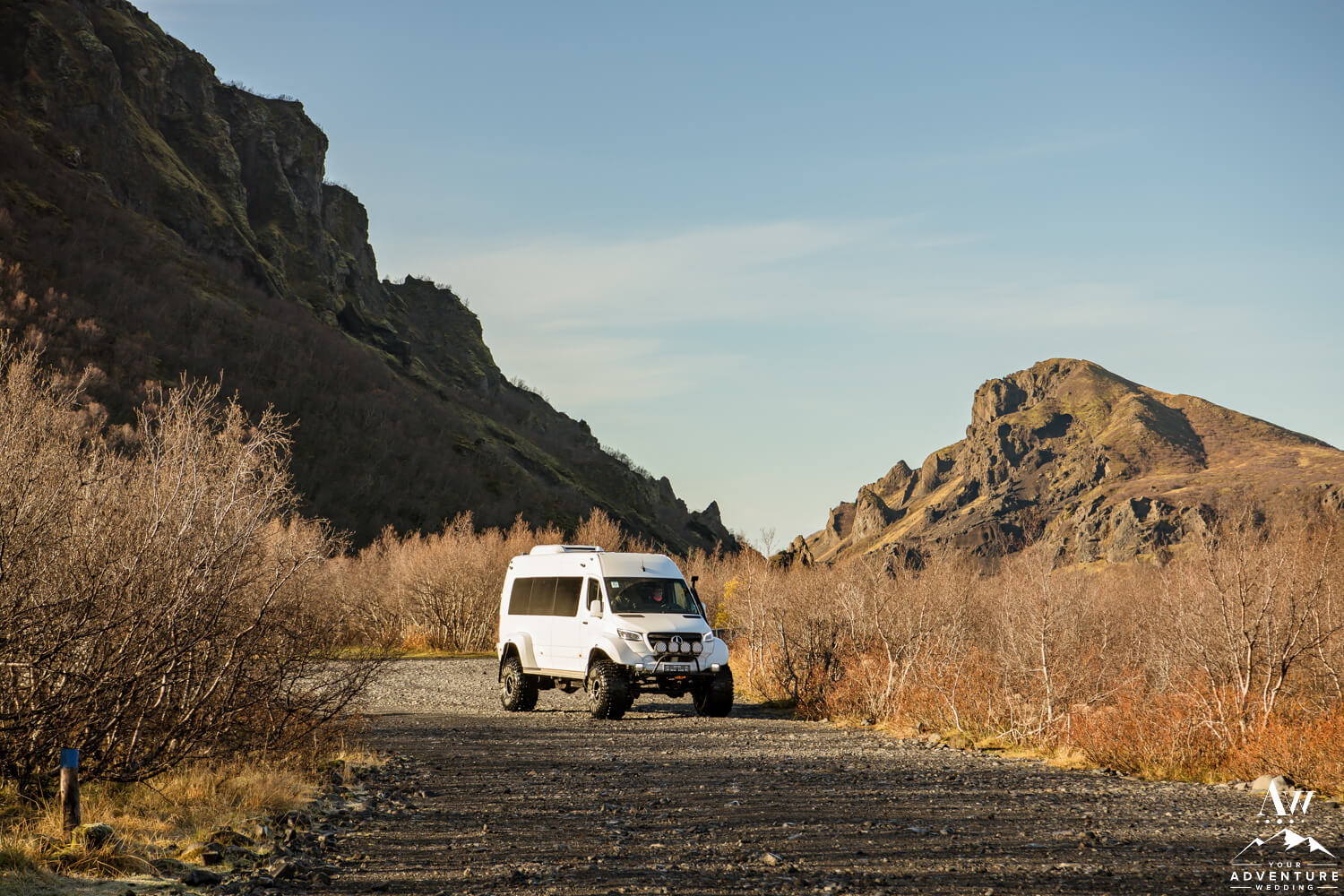 Next, on the morning of October 13th 2022, Peter and Eva’s two-day Iceland wedding adventure begins… The group gathered in the lobby and loaded into super jeeps. To illustrate, they were venturing into the iconic area of Þórsmörk (Thórsmörk).