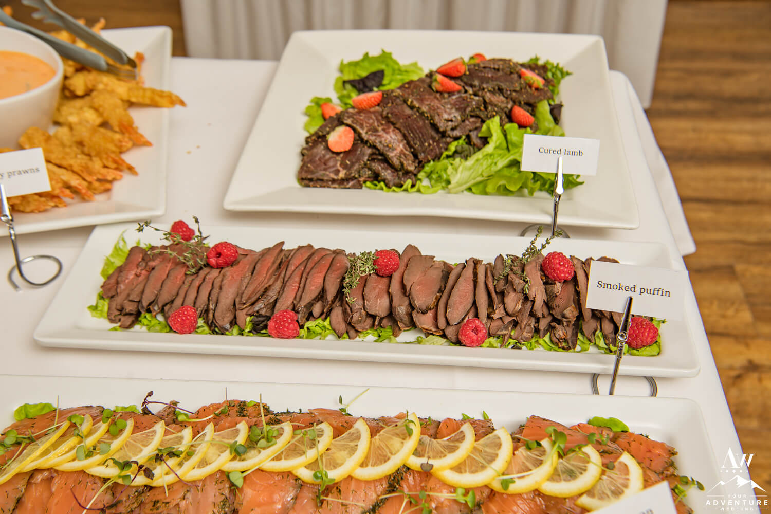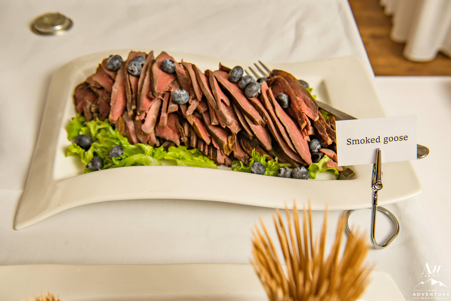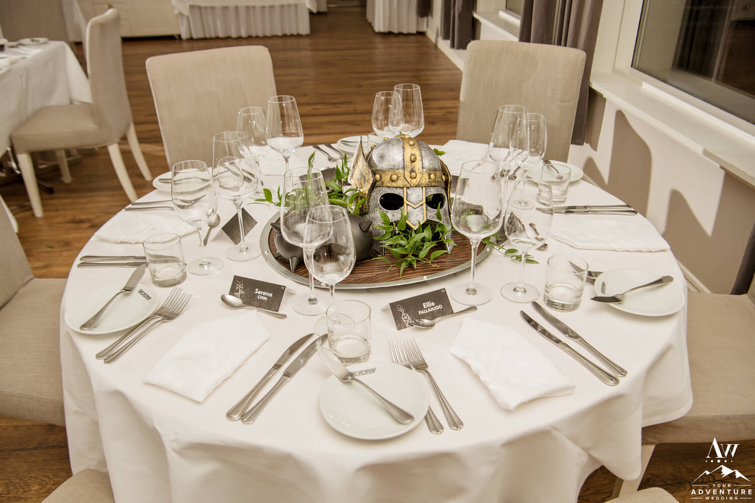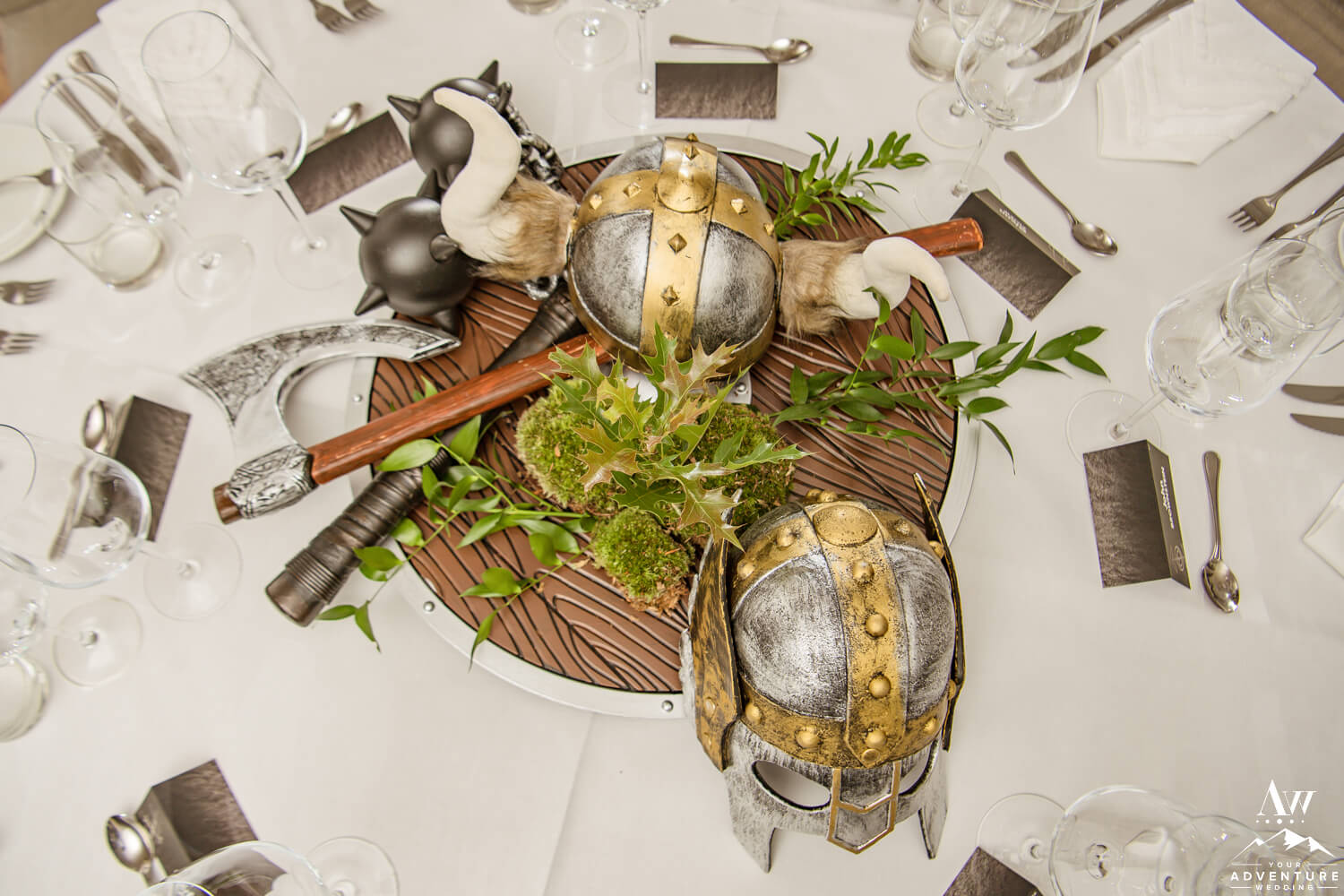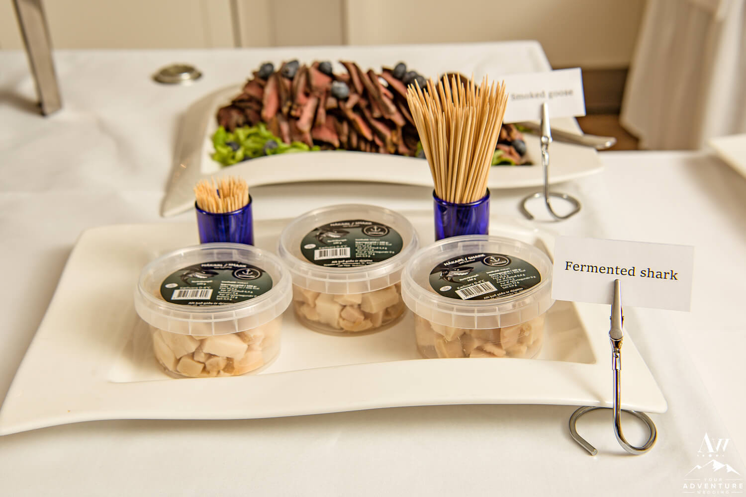 We all know our Nordic island has Viking roots. So Eva and Peter thought it would be fun to add in that fabulous element to their formal welcome dinner that night. But also still sprinkle in more Icelandic culture too! For example, the tables were decorated with Viking flare among greenery and moss. Furthermore, the group had the opportunity to try local Icelandic delicacies like fermented shark, puffin, smoked / cured meats, etc!