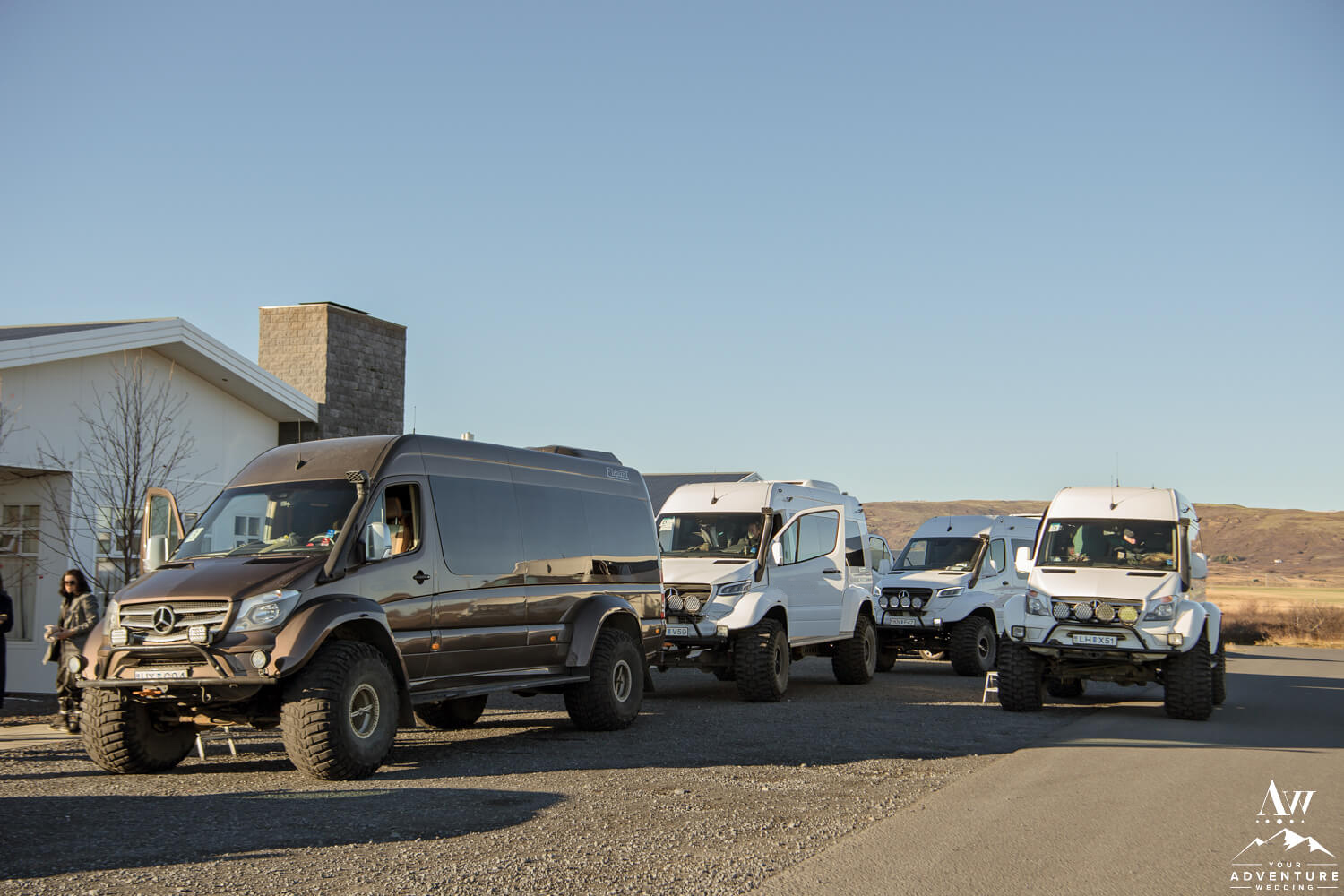 Bring on day 2 of Peter and Eva’s two-day Iceland wedding adventure! October 14th 2022, begins with full on sunshine. Eva gets ready with her girl friends and Peter with his best friends. You could feel the excitement all of the guests had for the soon to be newlyweds especially when the loaded into the super jeeps!
