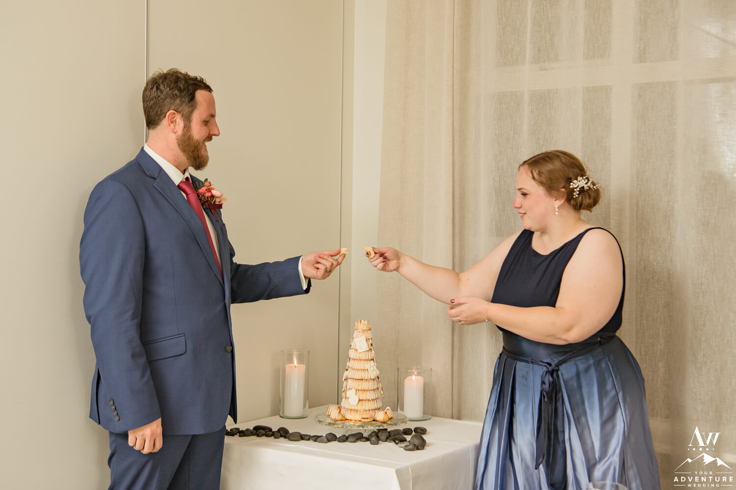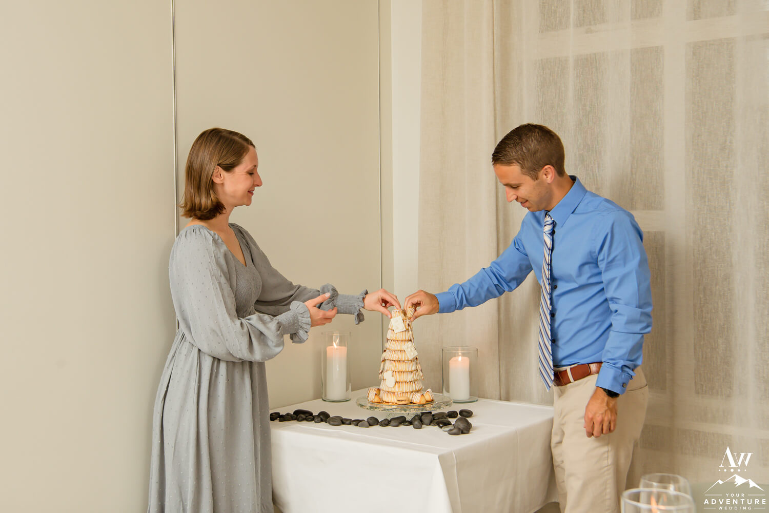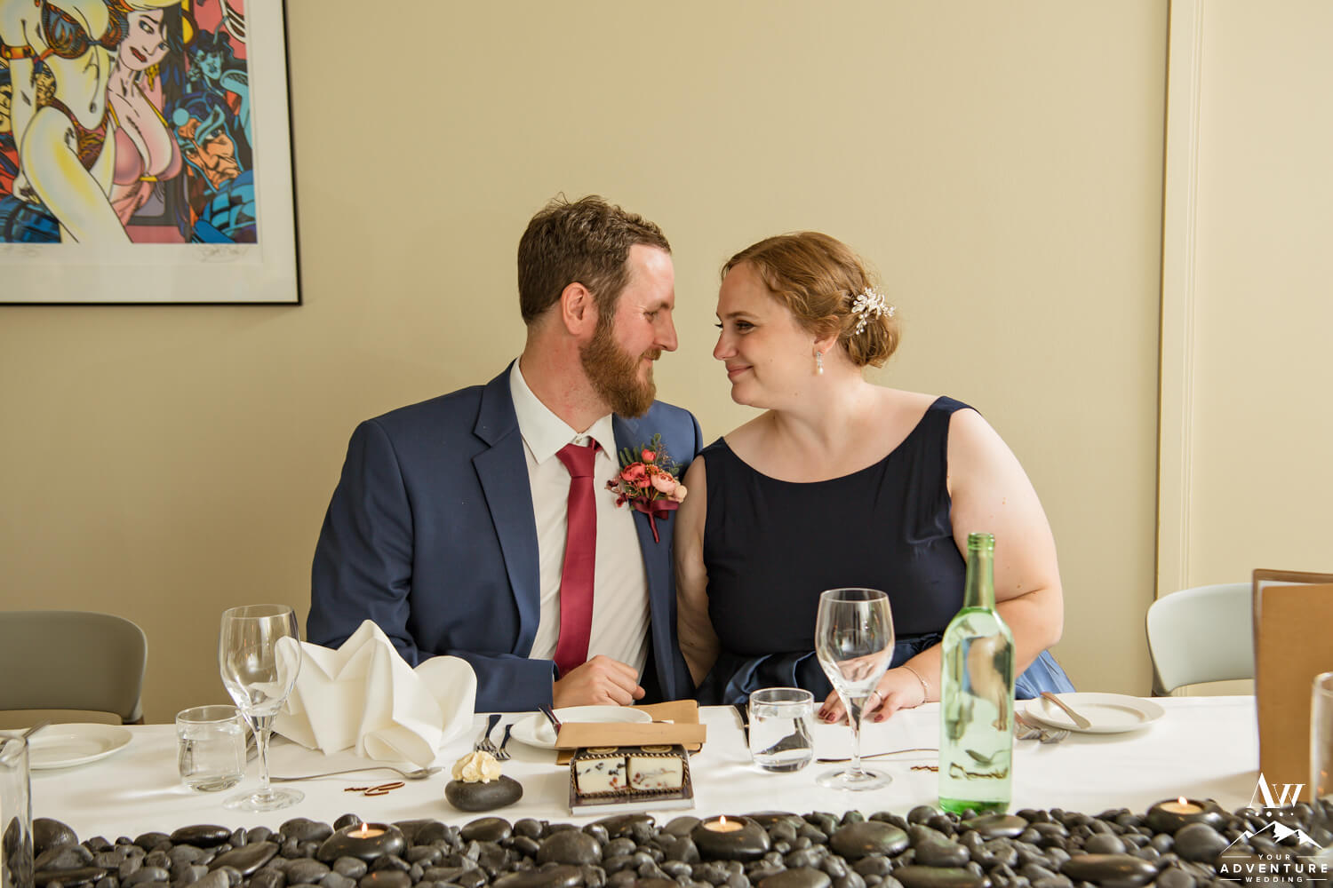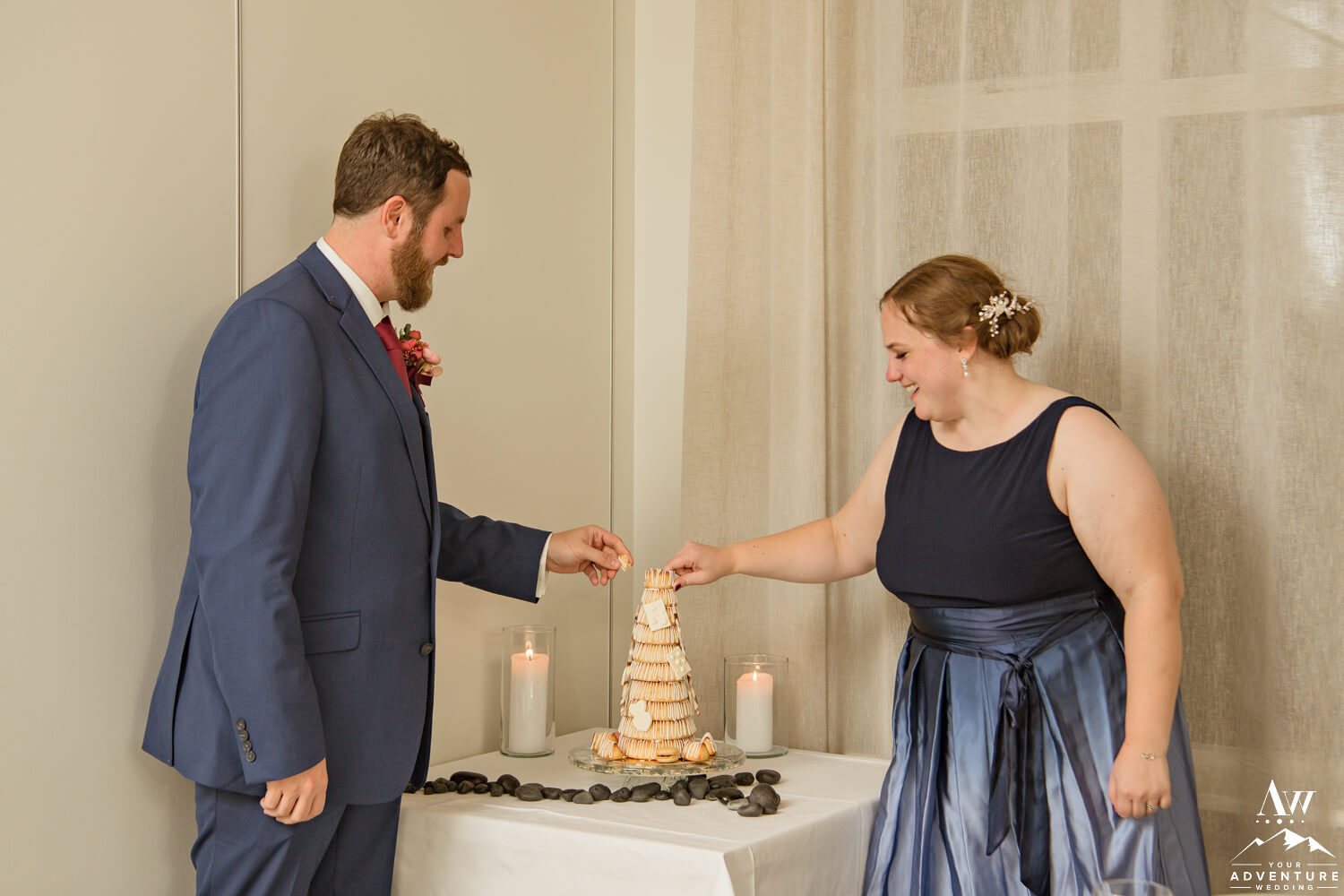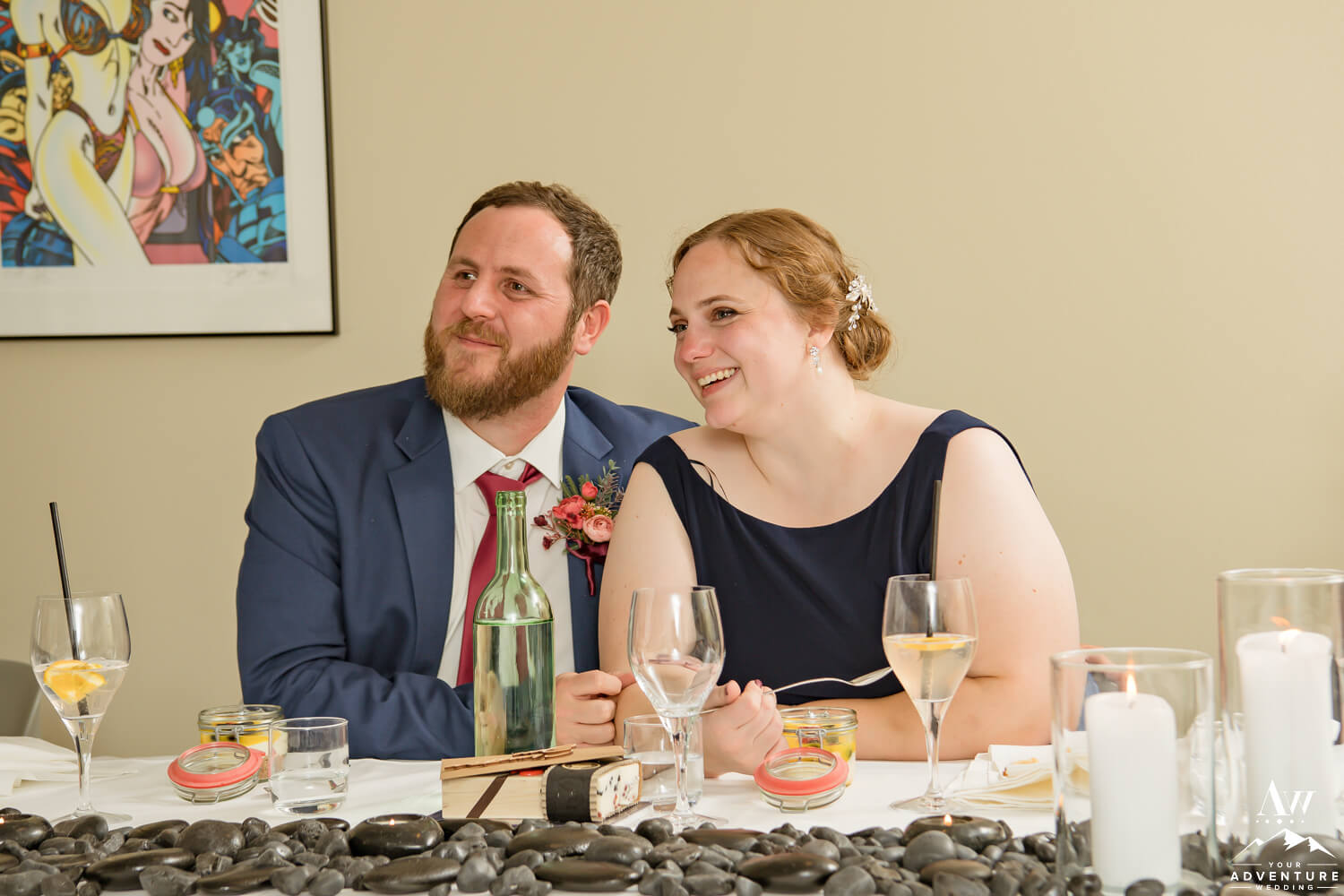 Moreover, when the October wedding adventure group returned to Hotel Klaustur, they had time to rest and refresh. When 7:30pm came, they were asked to find their seats in the private dining room at Klaustur Restaurant. First, they were greeted by our Iceland Wedding Planner team. Second, they delighted in the beautiful earthy basalt rock décor that was on the table. Third, seeing a traditional Iceland wedding cake (kransakaka) is always a fun cultural tidbit to share. Fourth, the group dined on a local menu created by the talented local Chef Einar B. Halldórsson. However, that’s not how the night ended… Please continue!