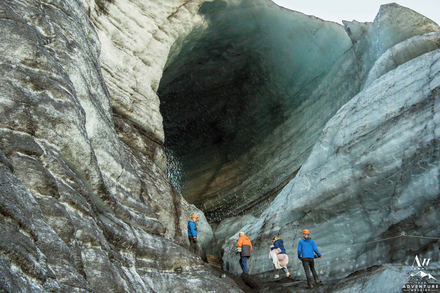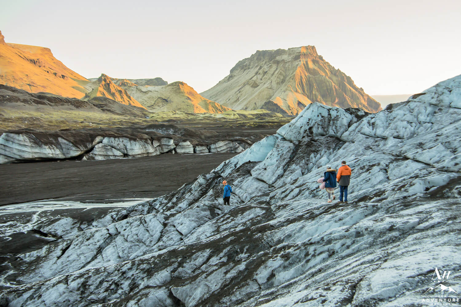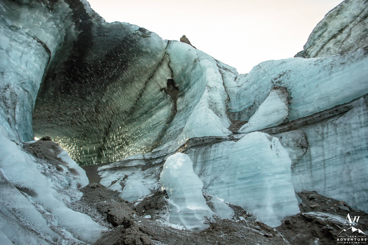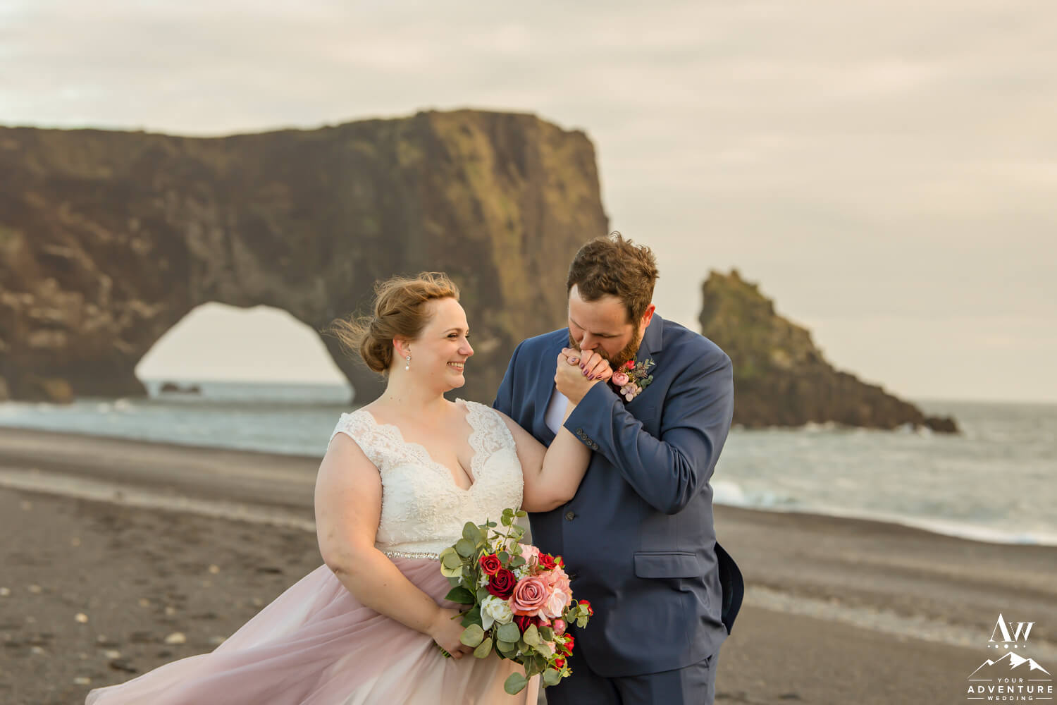 The light and temperatures began dropping very quickly on the way up to Katla Glacier, which is an outlet to Mýrdalsjökull. But the groups excitement to experience the glacier kept everyone warm. The newlyweds and their October adventure wedding group geared up and hiked to the Katla ice cave that is usually very touristy during normal business hours, but today it was reserved for us! Meanwhile, the group marveled over the scenes, explored the ice cave thoroughly before hiking back out. On the way out, the newlyweds stole some kisses in front of the iconic sci-fi hit Star Wars Rogue One.