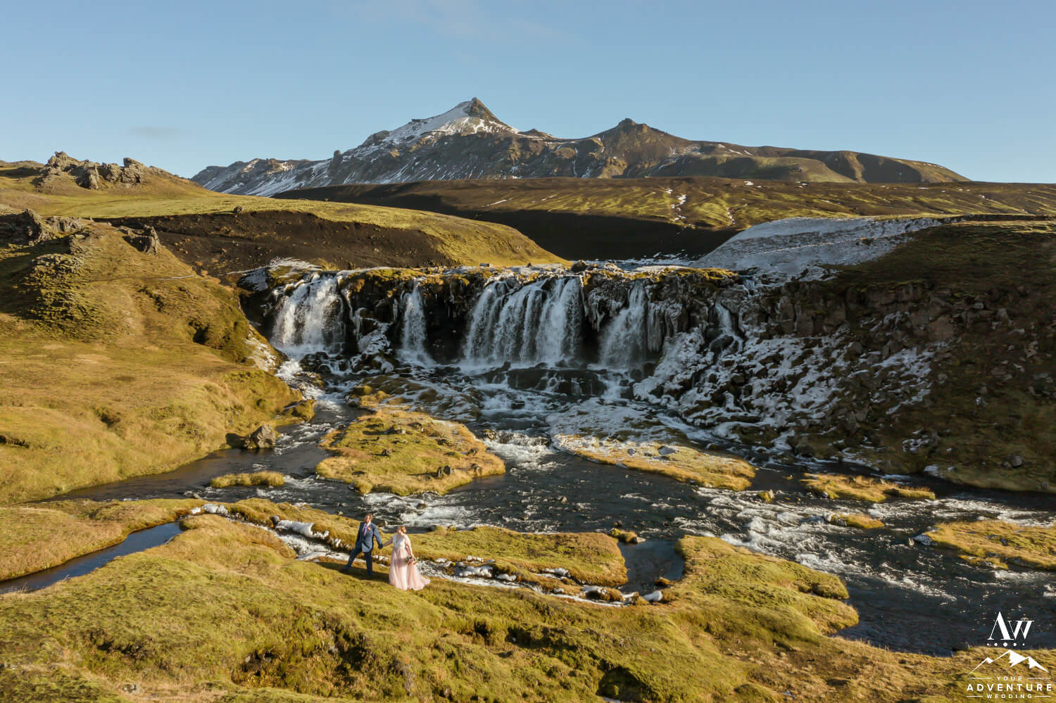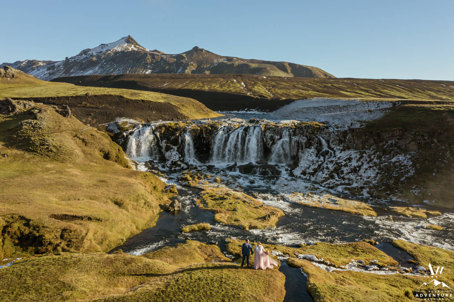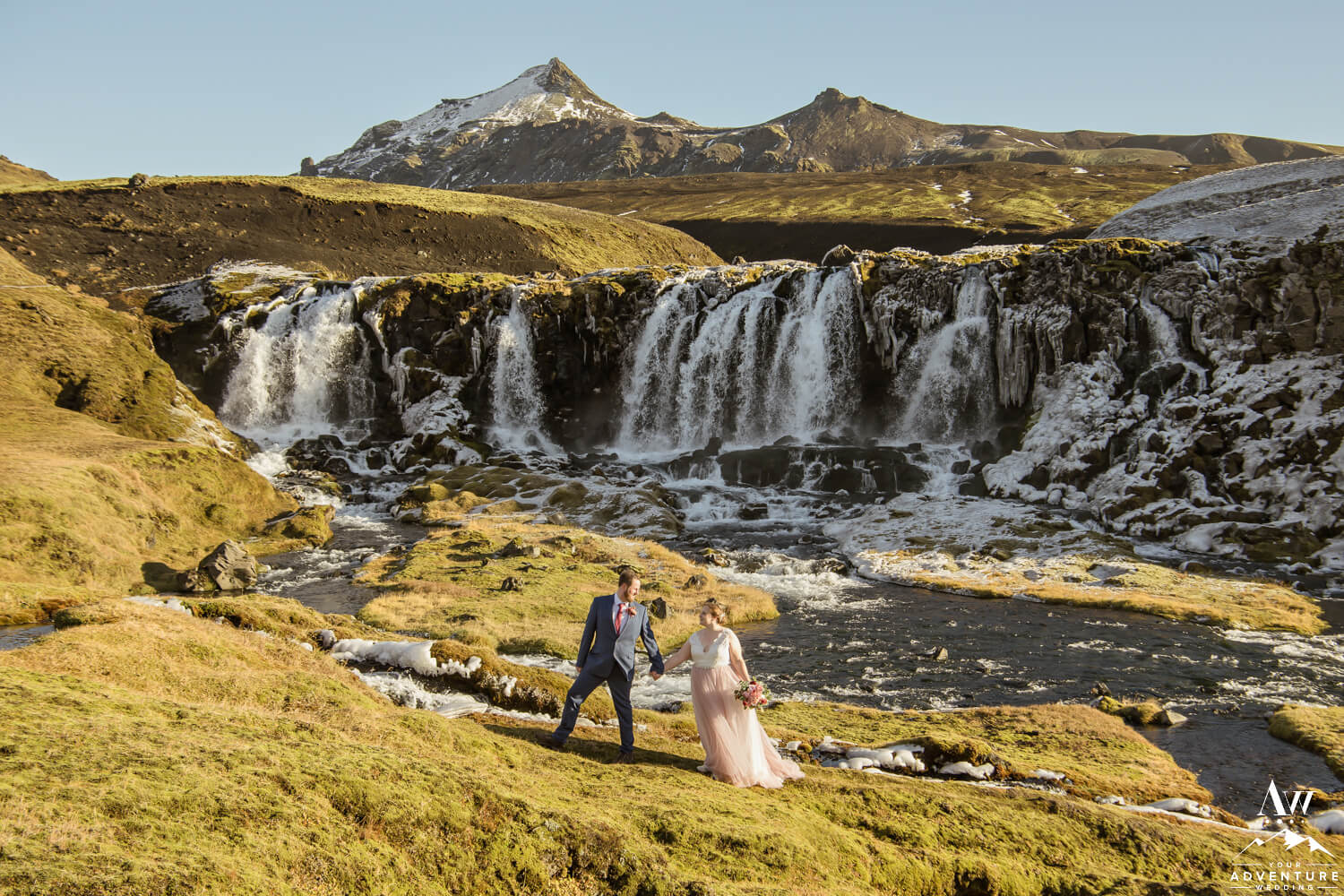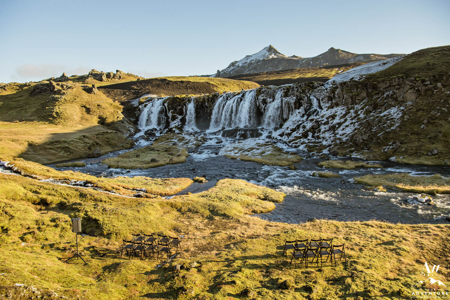It was important to Christine and Jonathan that they not only gift themselves but also their loved ones of a once in a lifetime experience. That translated, to them choosing one of our favorite highland waterfalls to hold their October adventure wedding ceremony. An exciting drive chockful of river crossings, fall landscapes, and good vibes led them to the magical Iceland wedding location.