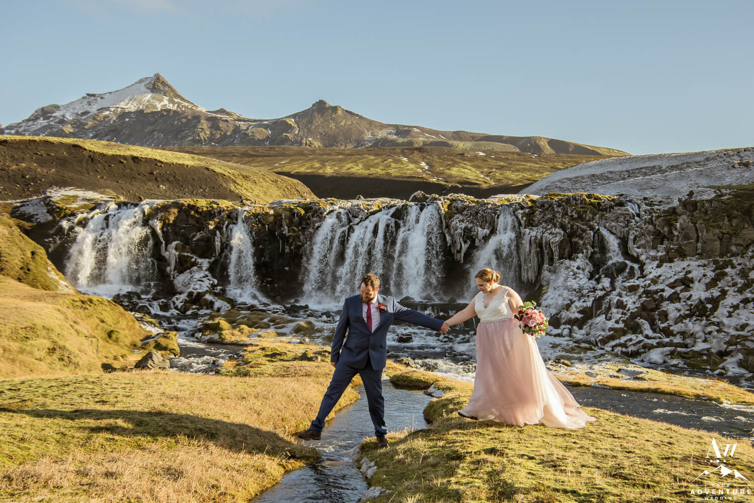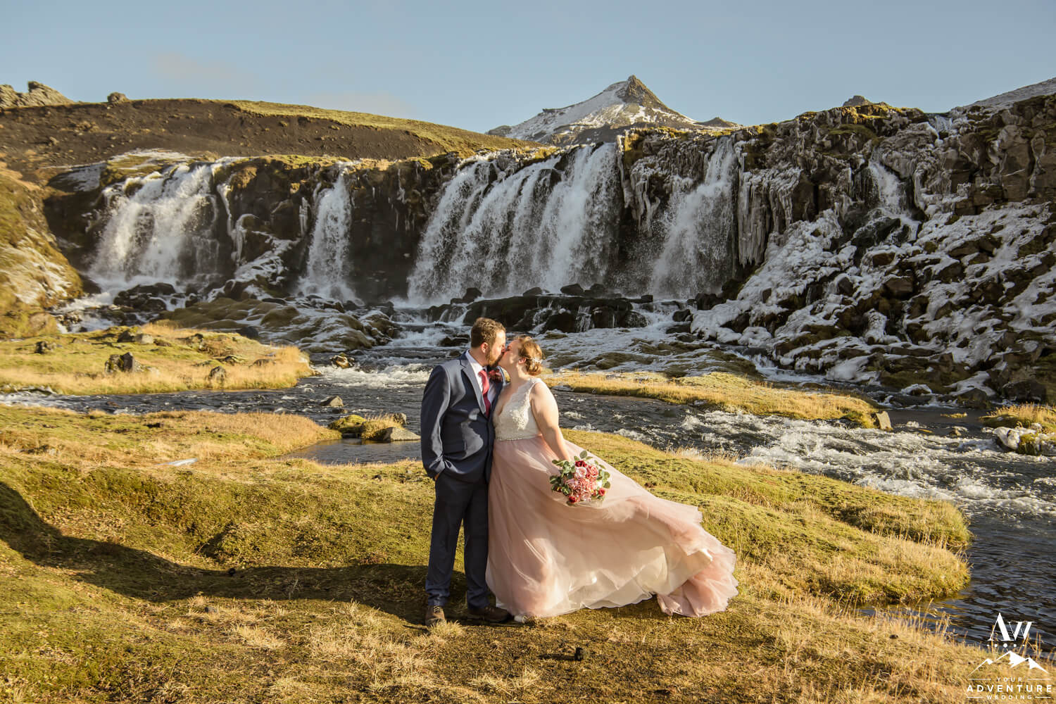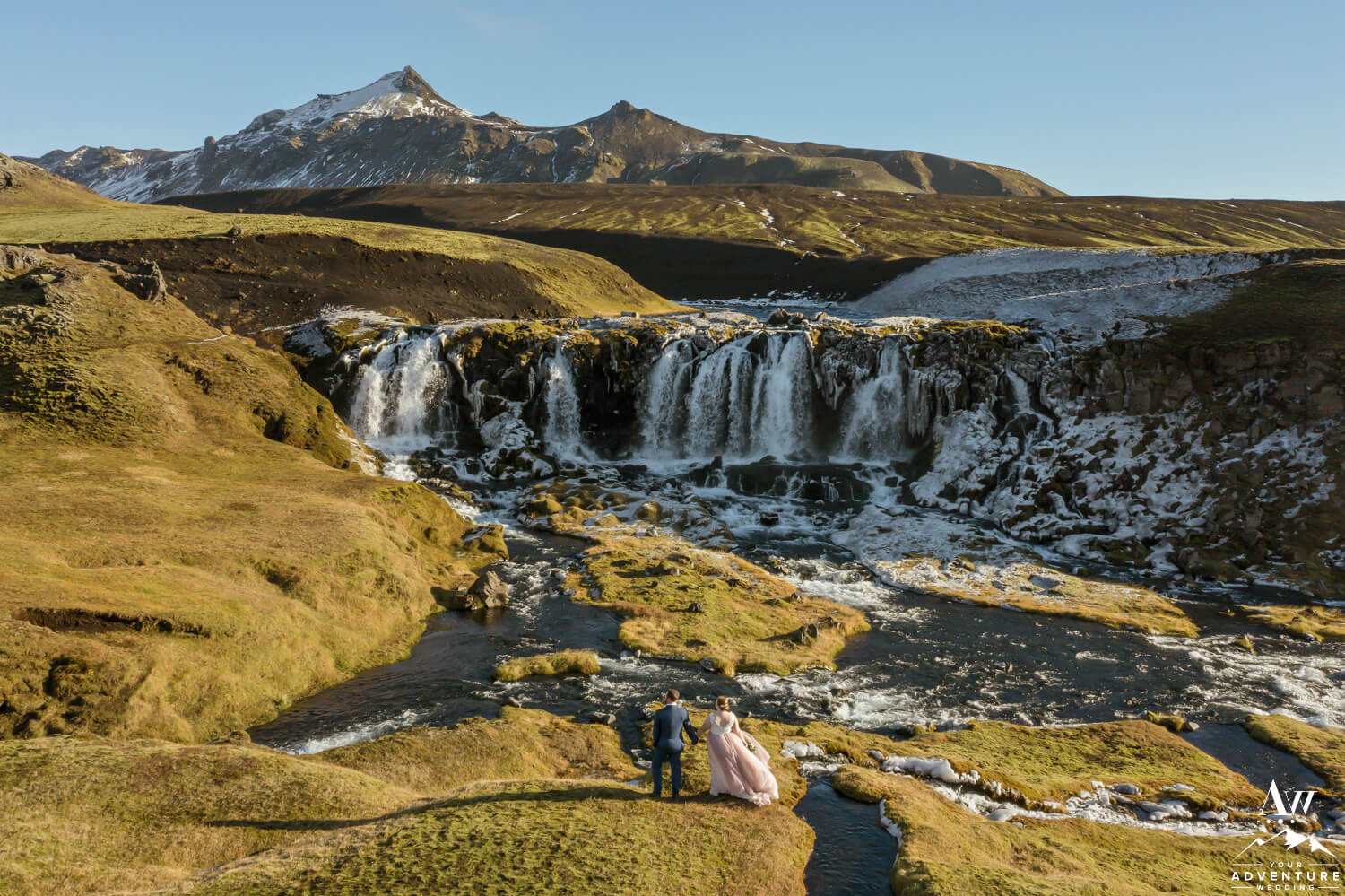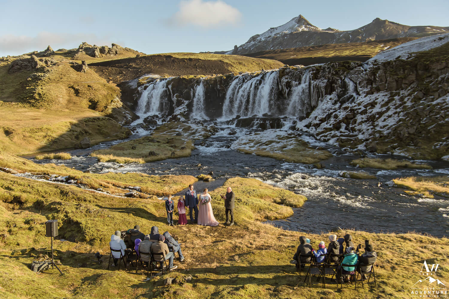 It was important to Christine and Jonathan that they not only gift themselves but also their loved ones of a once in a lifetime experience. That translated, to them choosing one of our favorite highland waterfalls to hold their October adventure wedding ceremony. An exciting drive chockful of river crossings, fall landscapes, and good vibes led them to the magical Iceland wedding location.