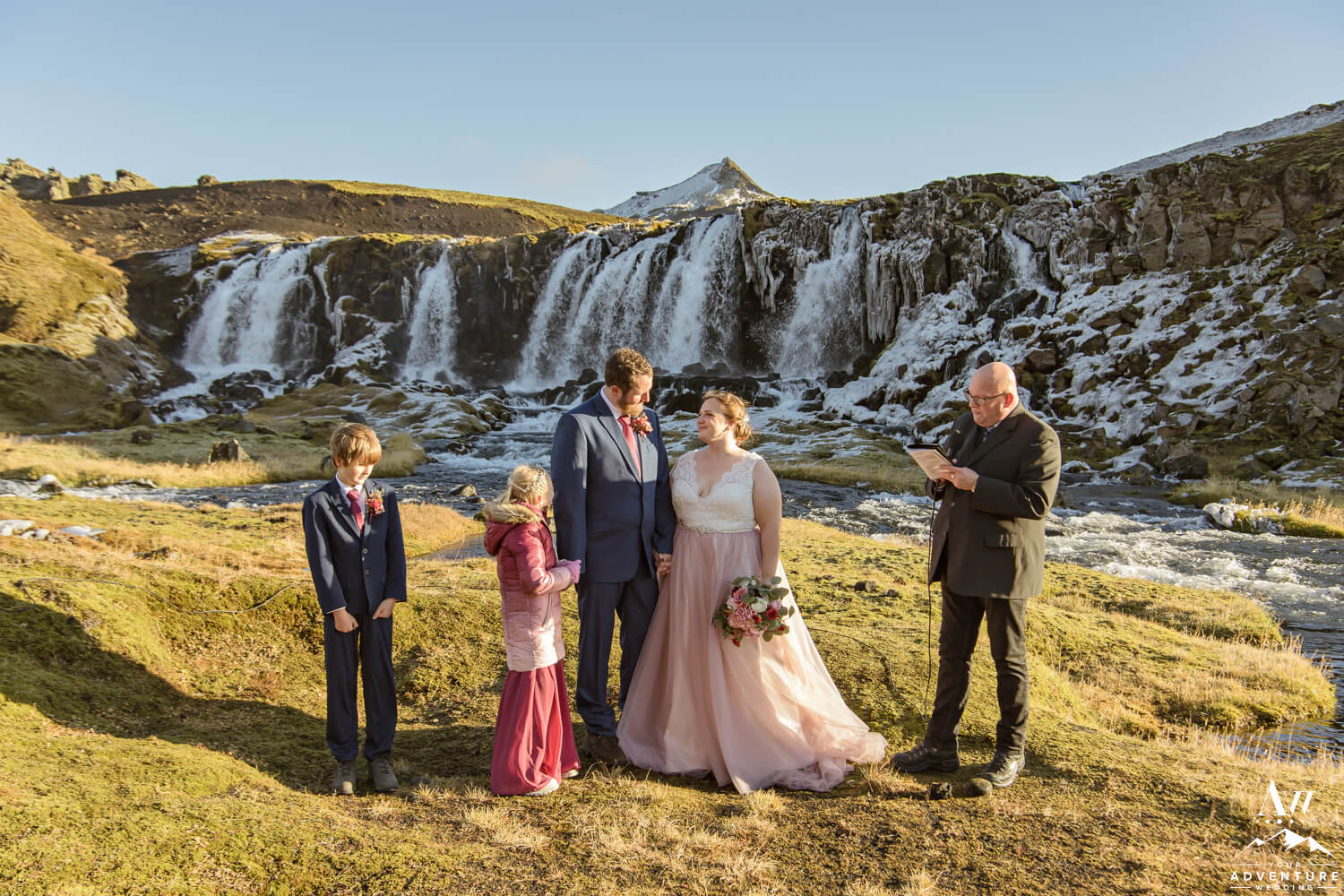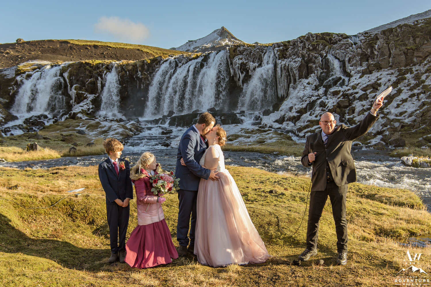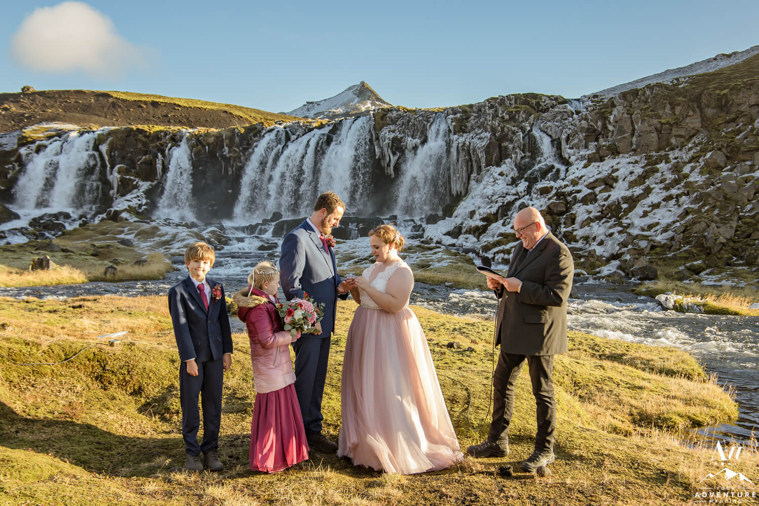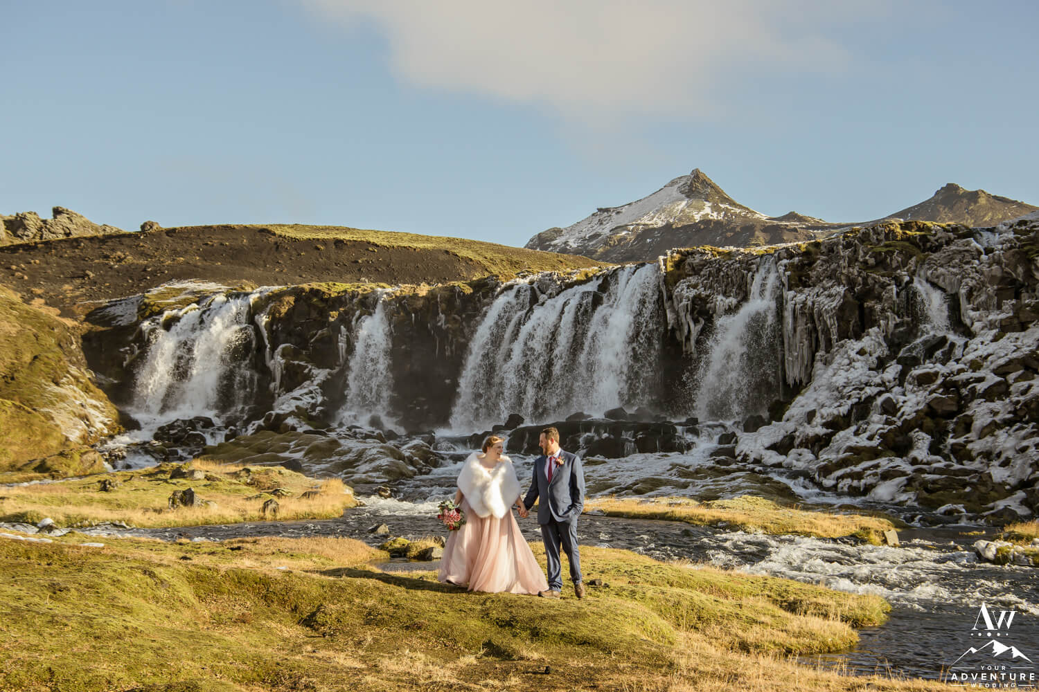 It was important to Christine and Jonathan that they not only gift themselves but also their loved ones of a once in a lifetime experience. That translated, to them choosing one of our favorite highland waterfalls to hold their October adventure wedding ceremony. An exciting drive chockful of river crossings, fall landscapes, and good vibes led them to the magical Iceland wedding location.